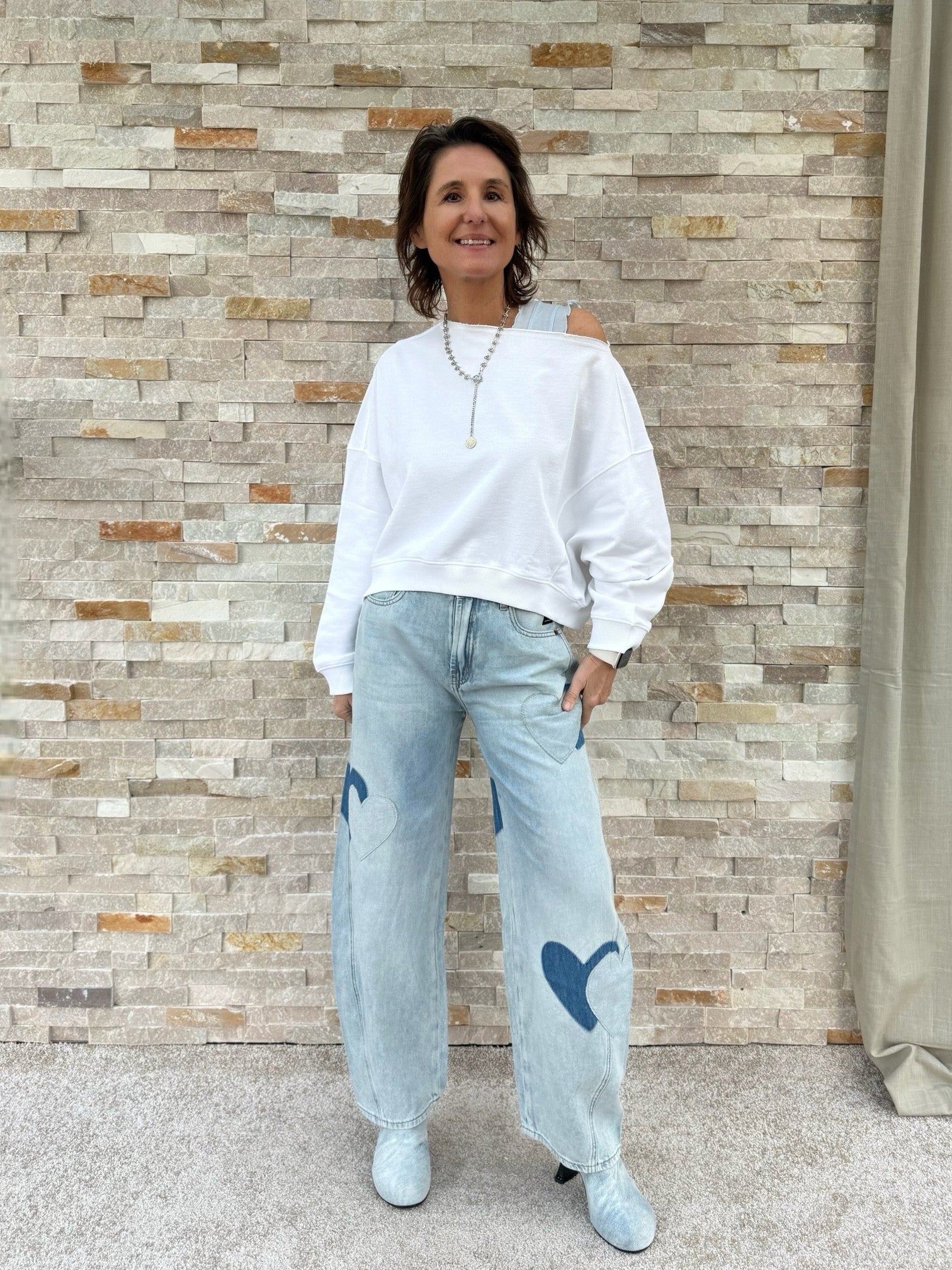 Barrel Jeans NORALIE mit Herzen in springlike blue / Hellblau