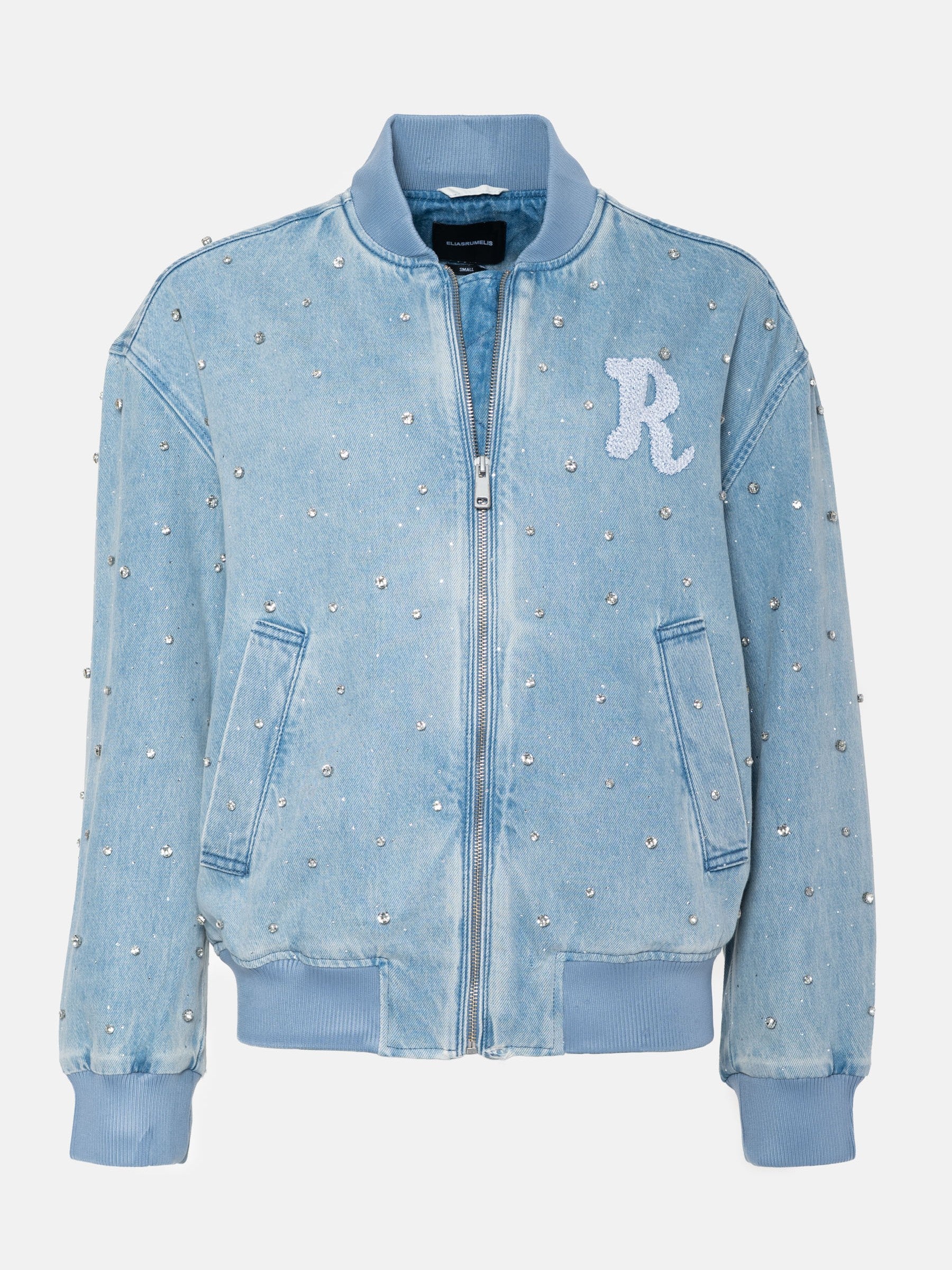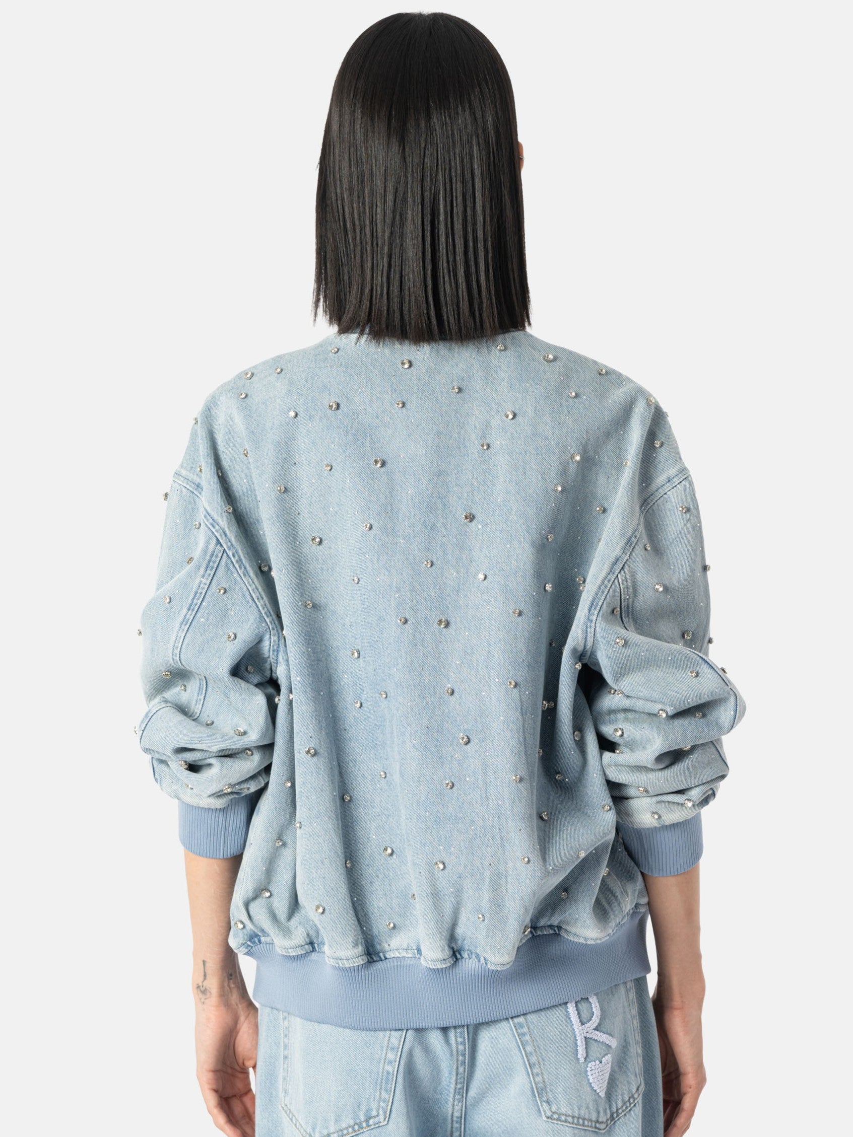 Jeans Blouson / Bomberjacke allover mit Strass-Steinen verziert. Aus der neuen F/S 2026 Pre-Spring Kollektion.