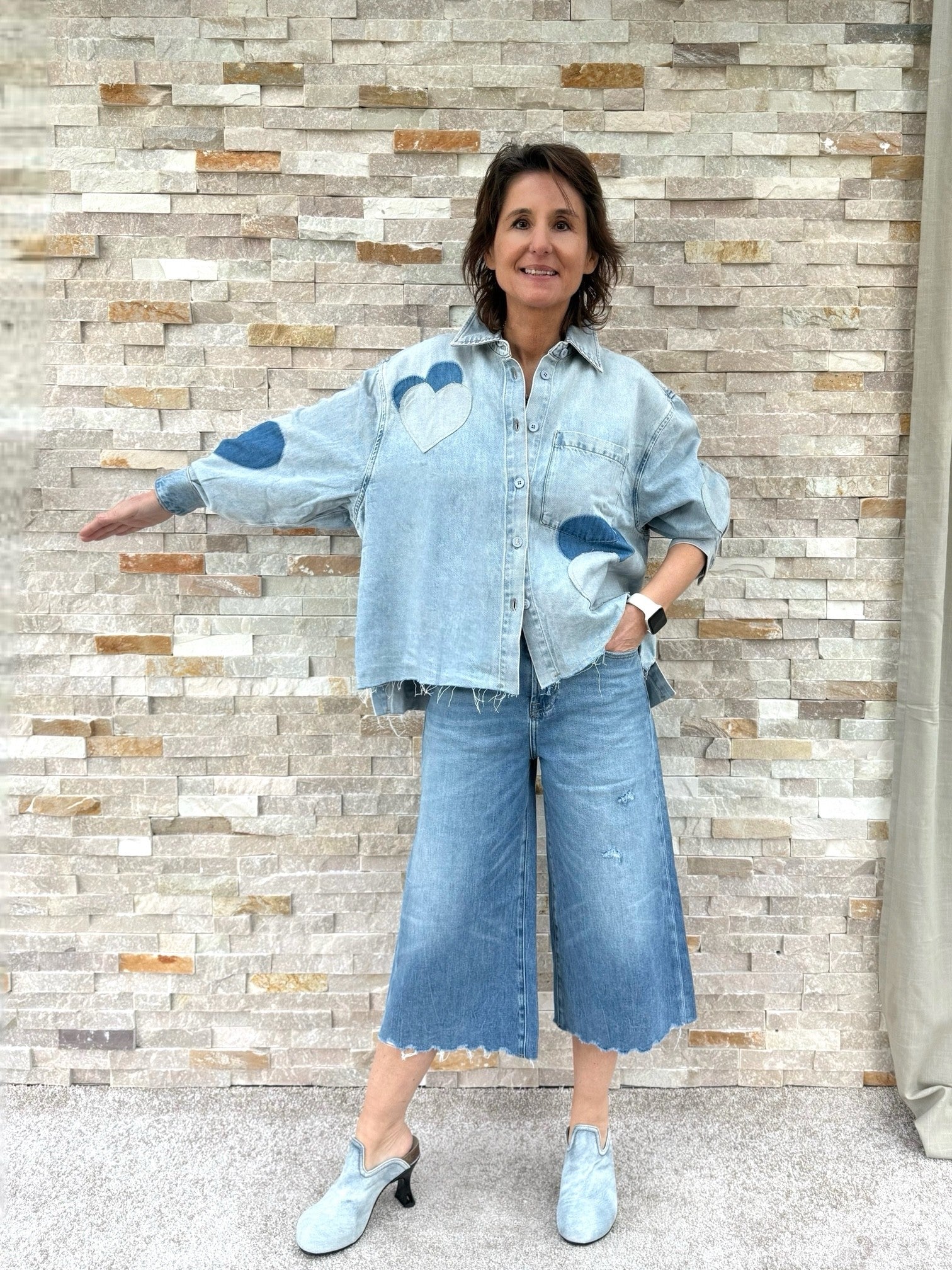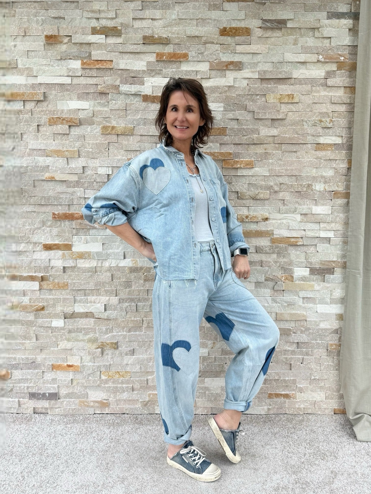 - Herz-Applikationen in kontrastierenden denim-Farben