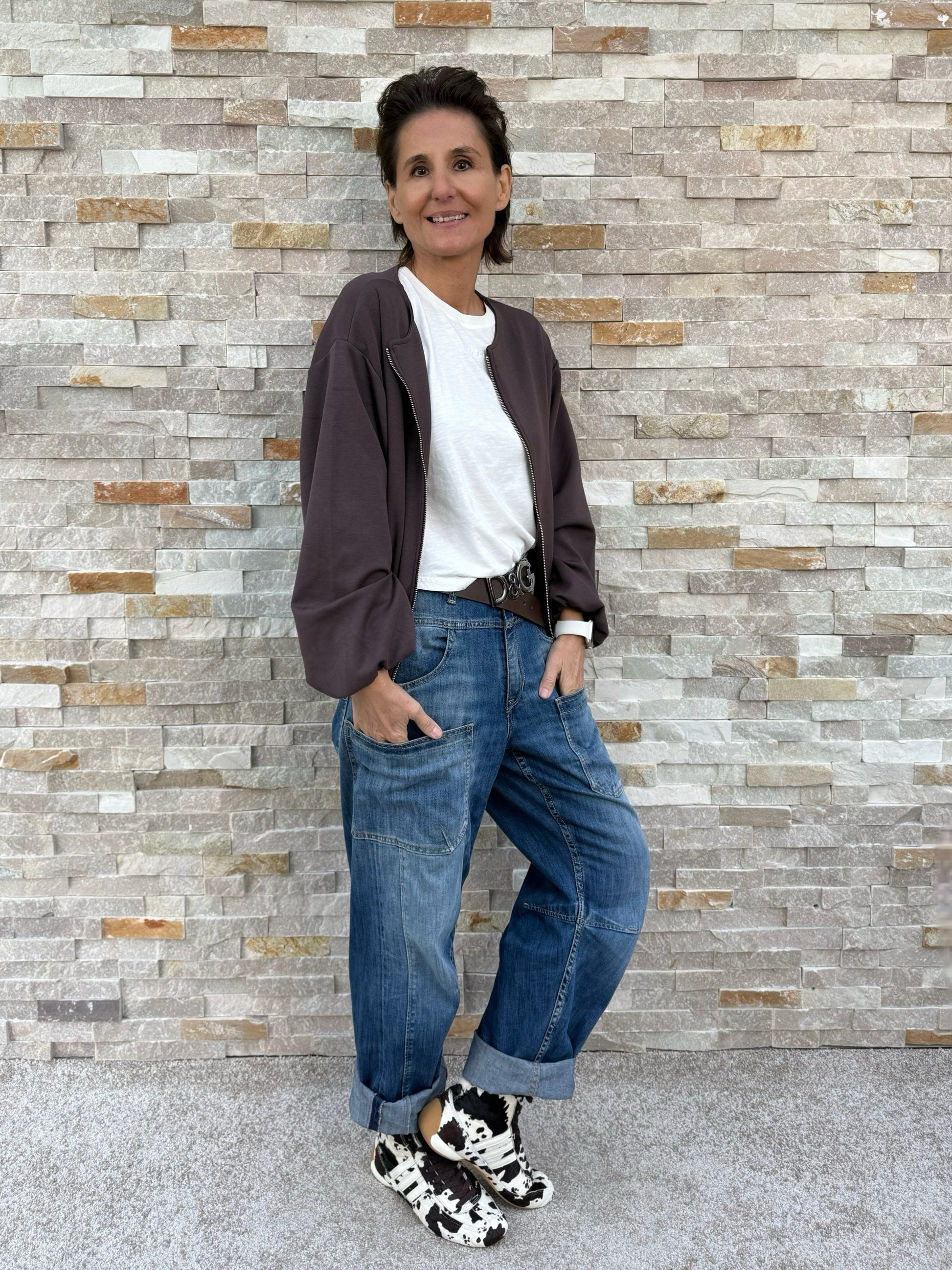 Silke is wearing size 29, but would like it larger.