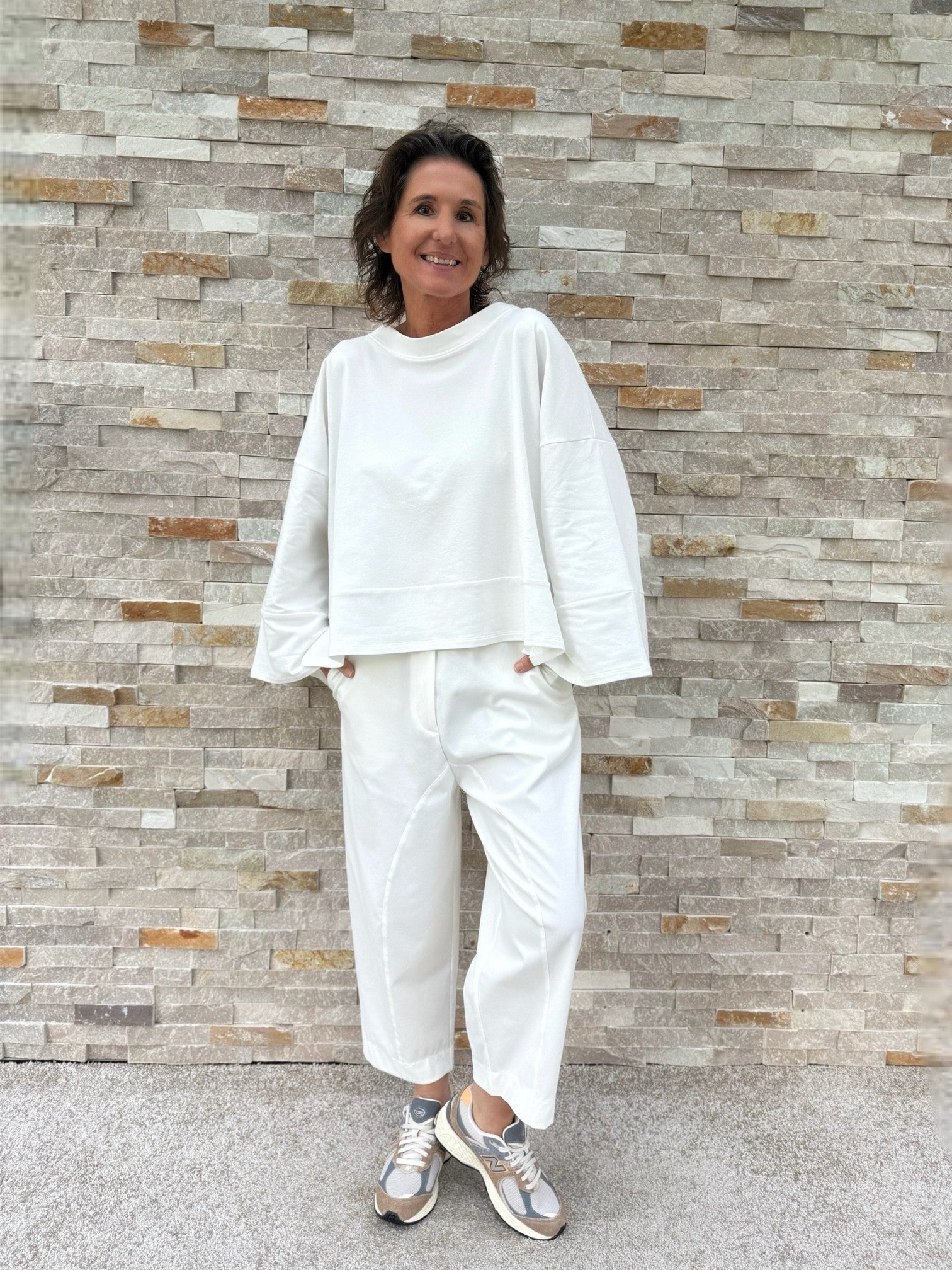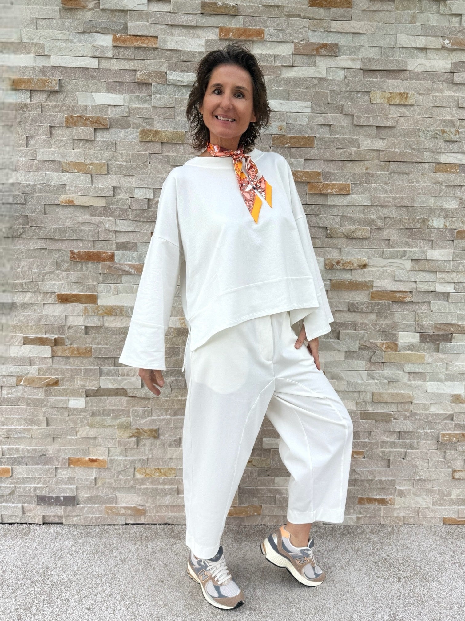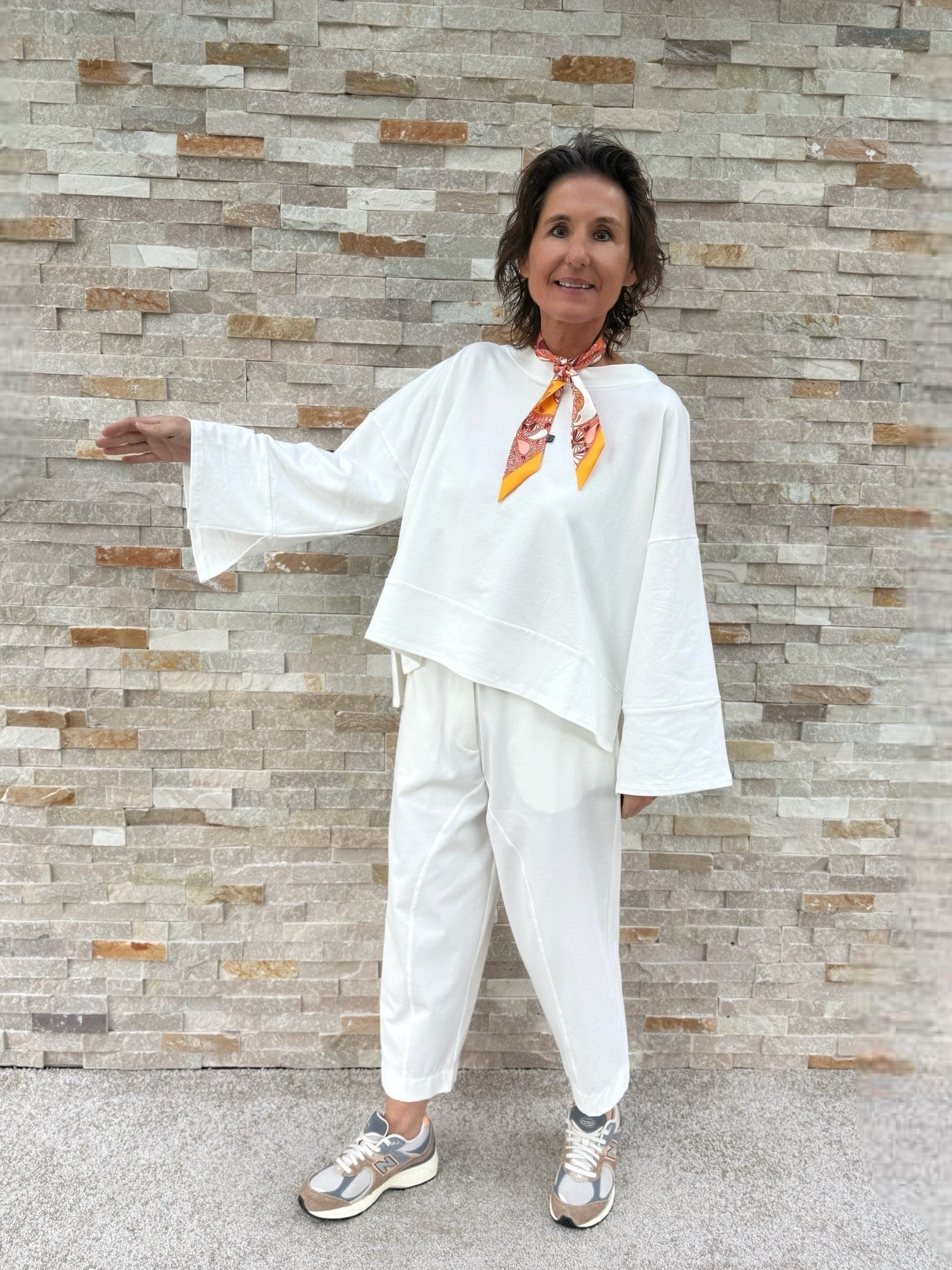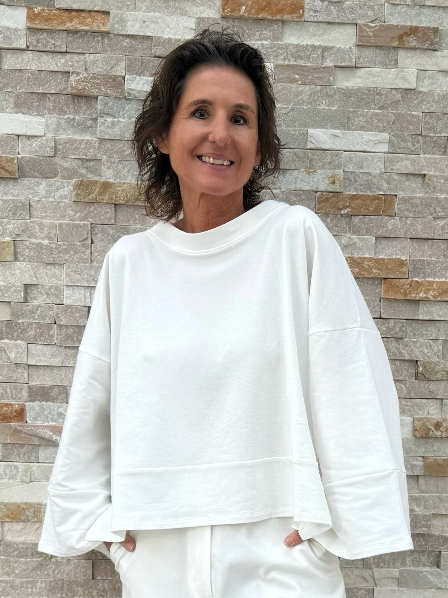 Passform: extra weit geschnitten, was aber genau so sein soll. Fällt größer aus. Ich habe auf den Fotos XS, Silke hat Größe M an.
