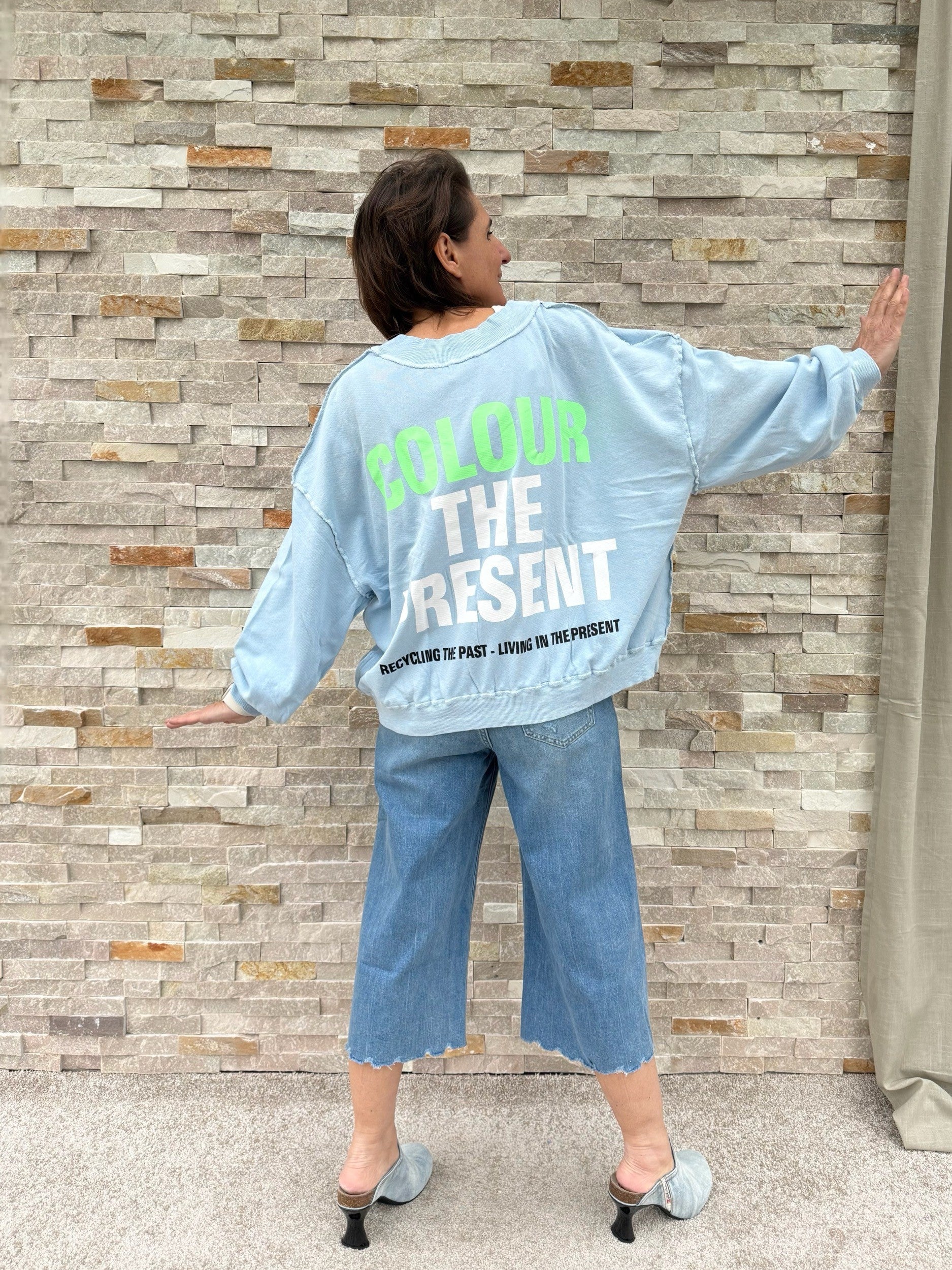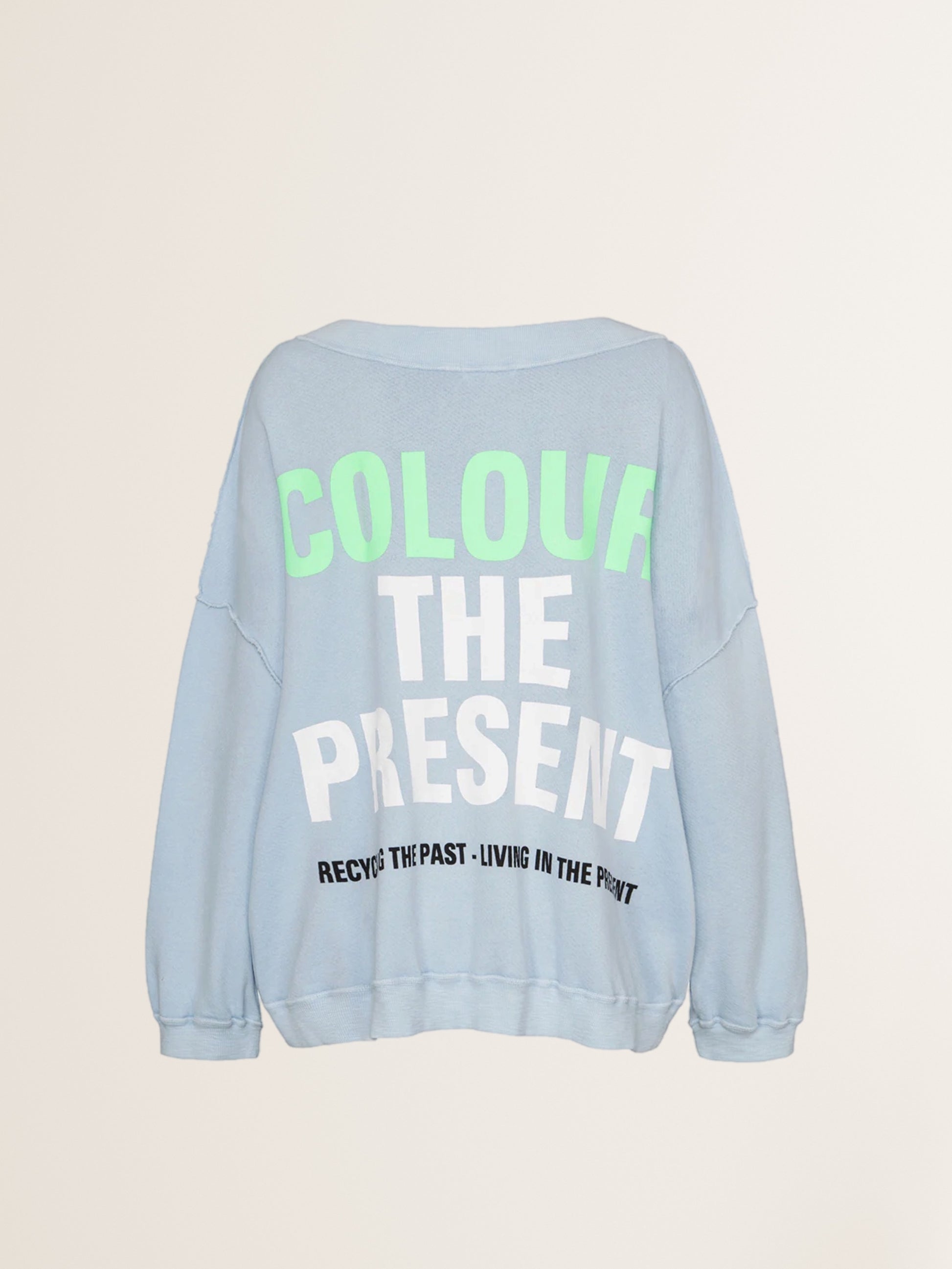 - Rückenaufdruck "COLOUR THE PRESENT"