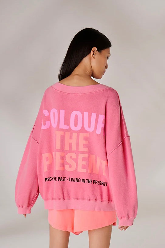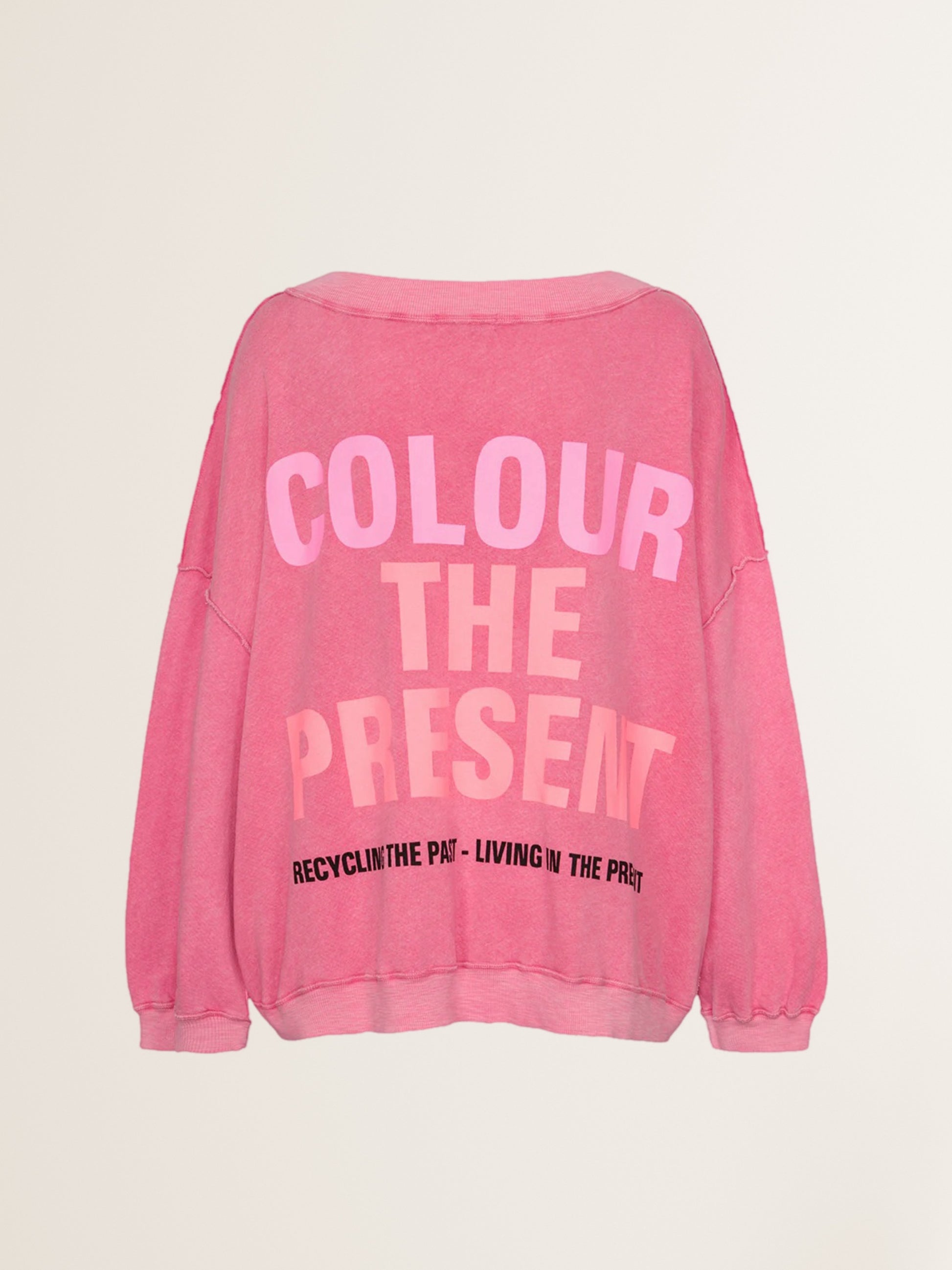- Rückenaufdruck "COLOUR THE PRESENT"