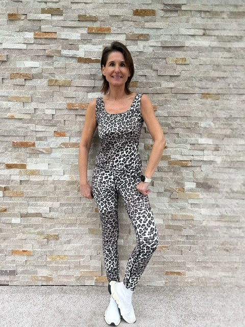 Sporty Top Leopard Grau-Schwarz
