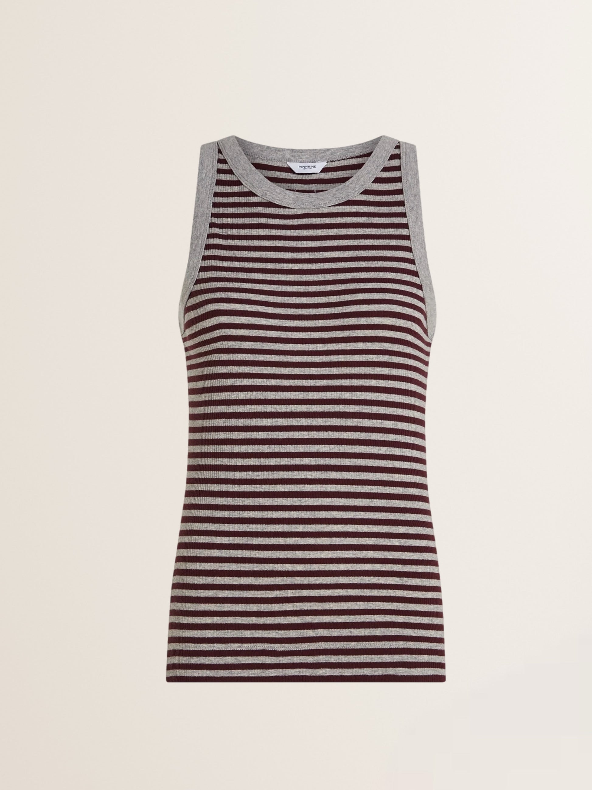 Slim ribbed top with a higher neckline, perfect under sweaters and sweatshirts with a large neckline.