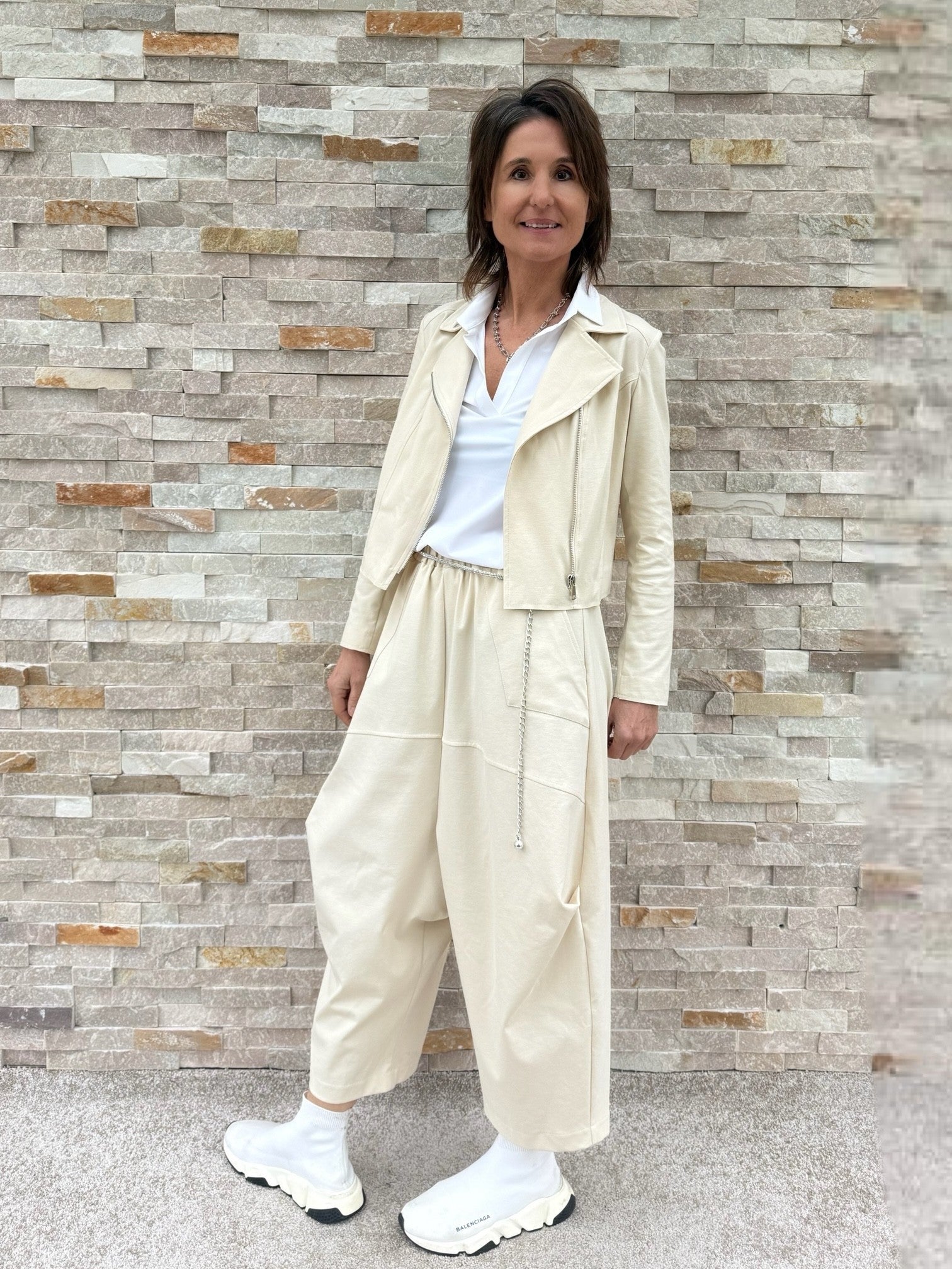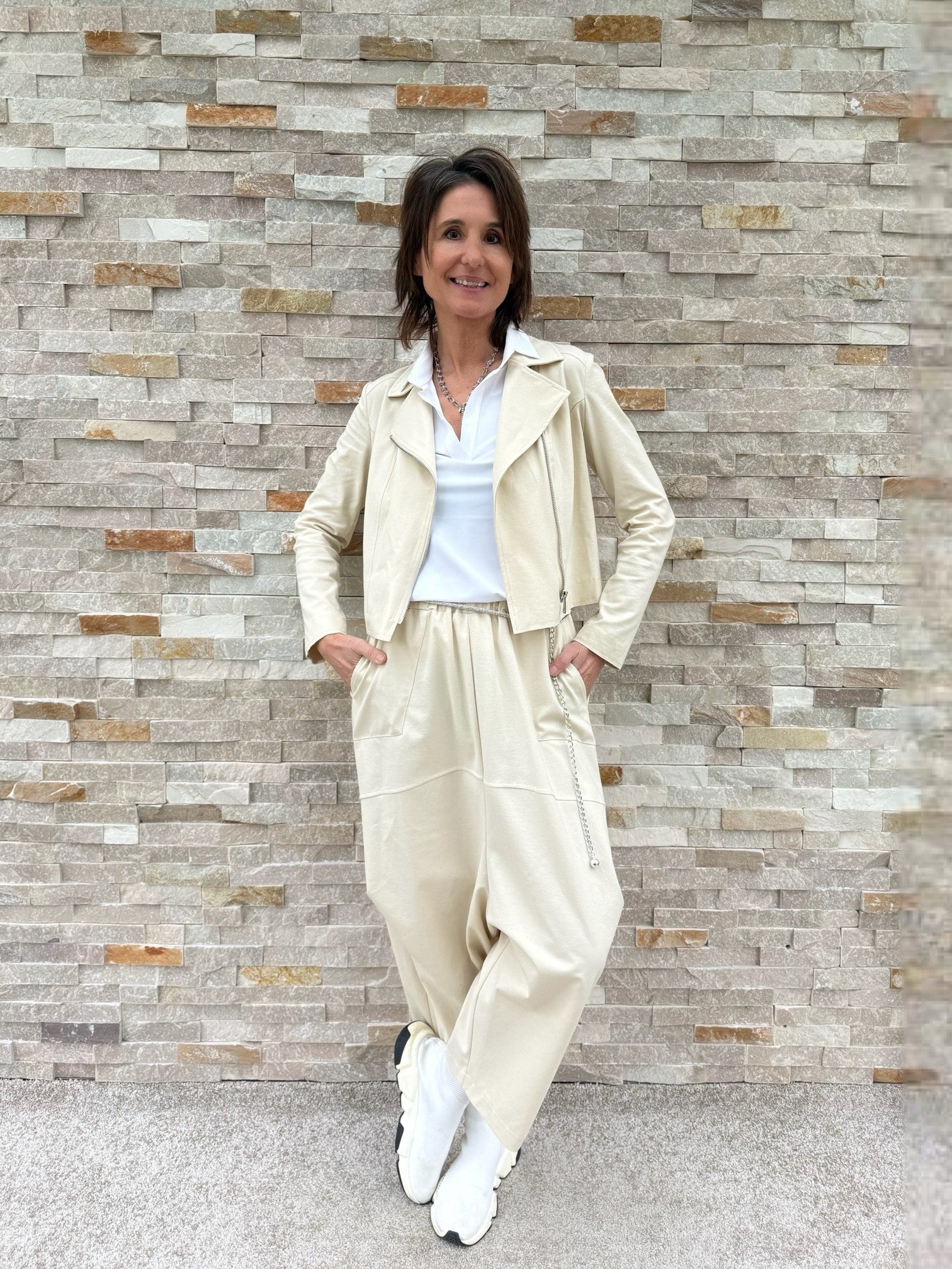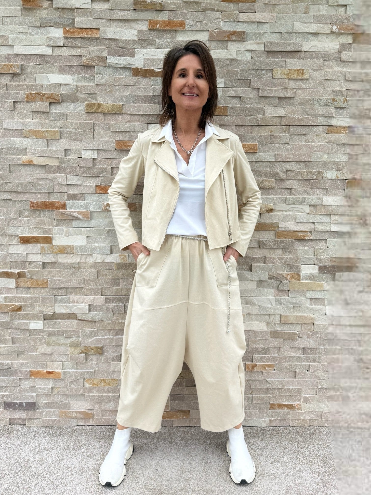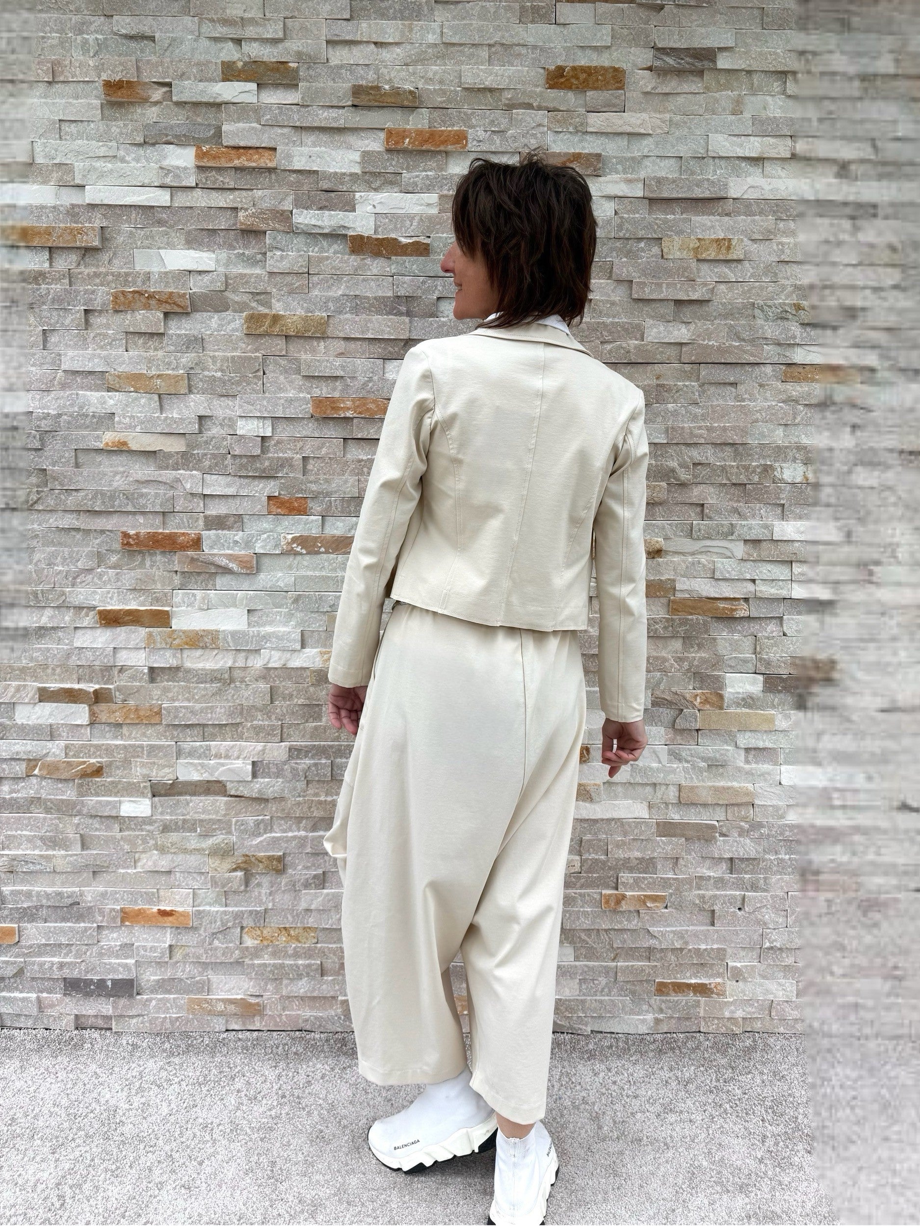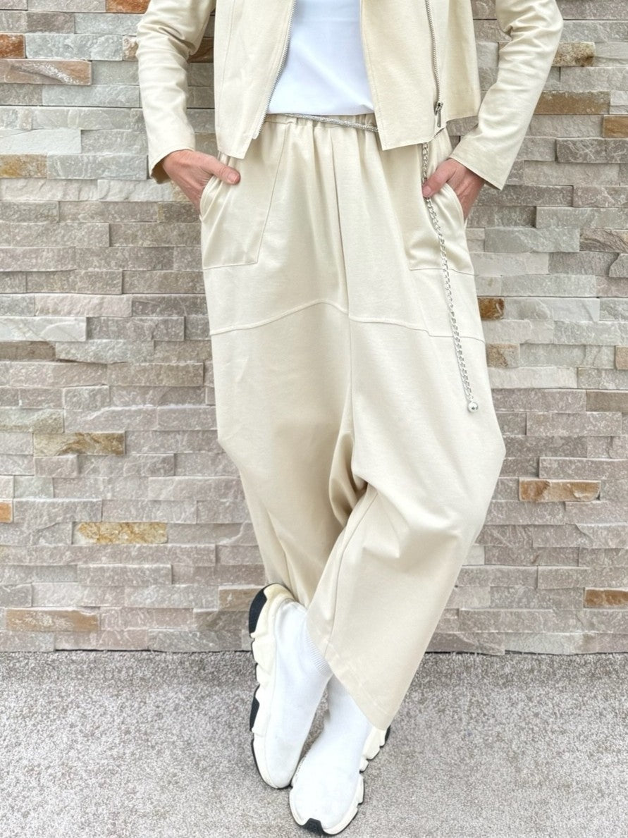Tiefschritt Hose O-Shape in verkürzter Form Beige