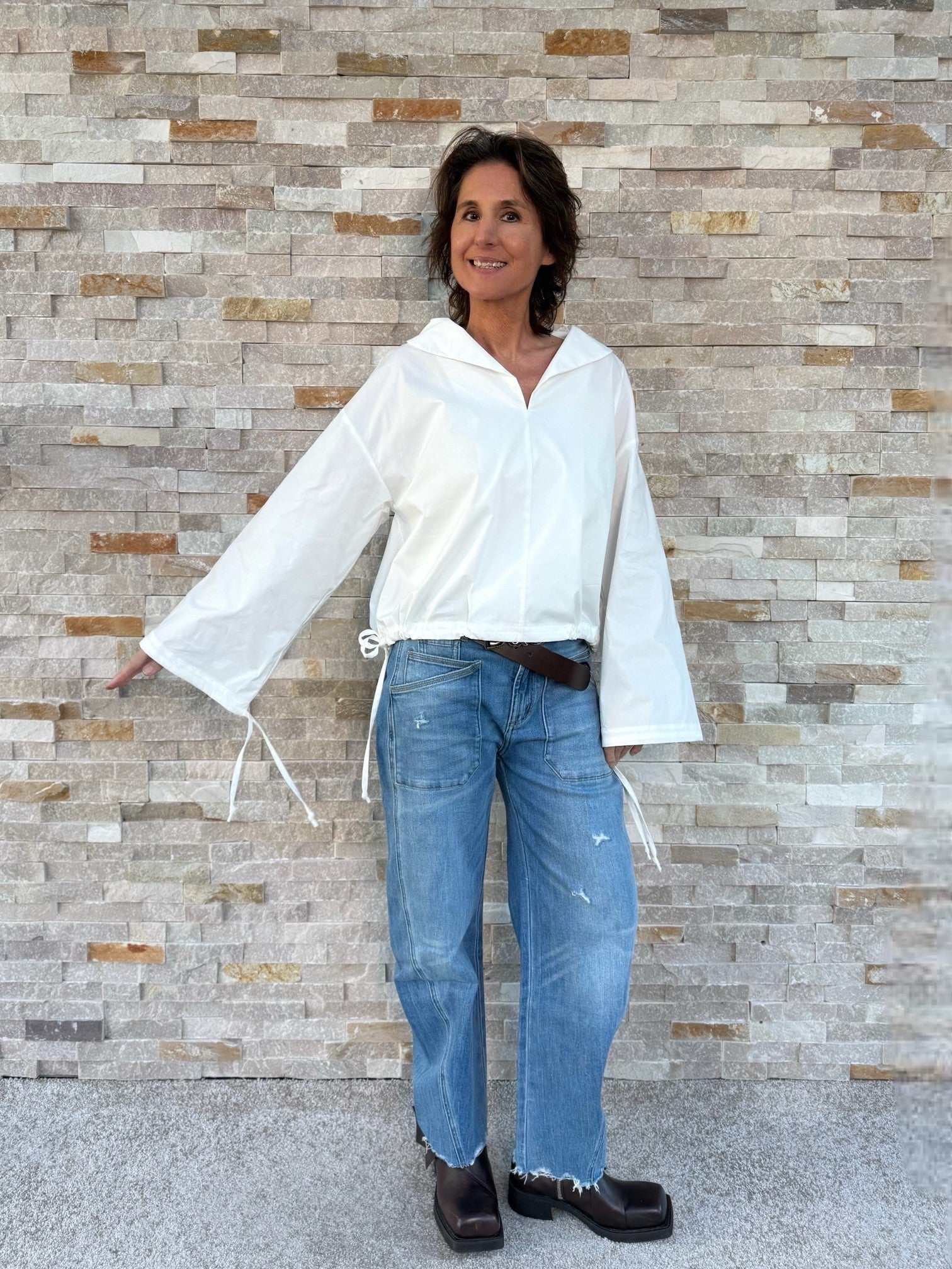 Tunika Bluse FIONA mit Stehkragen in Offwhite