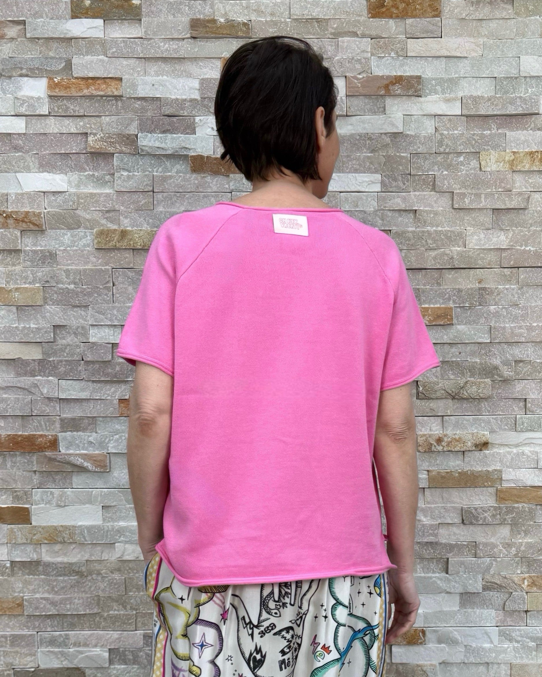 1/2 Arm Feinstrick Baumwolle Pullover in Pink