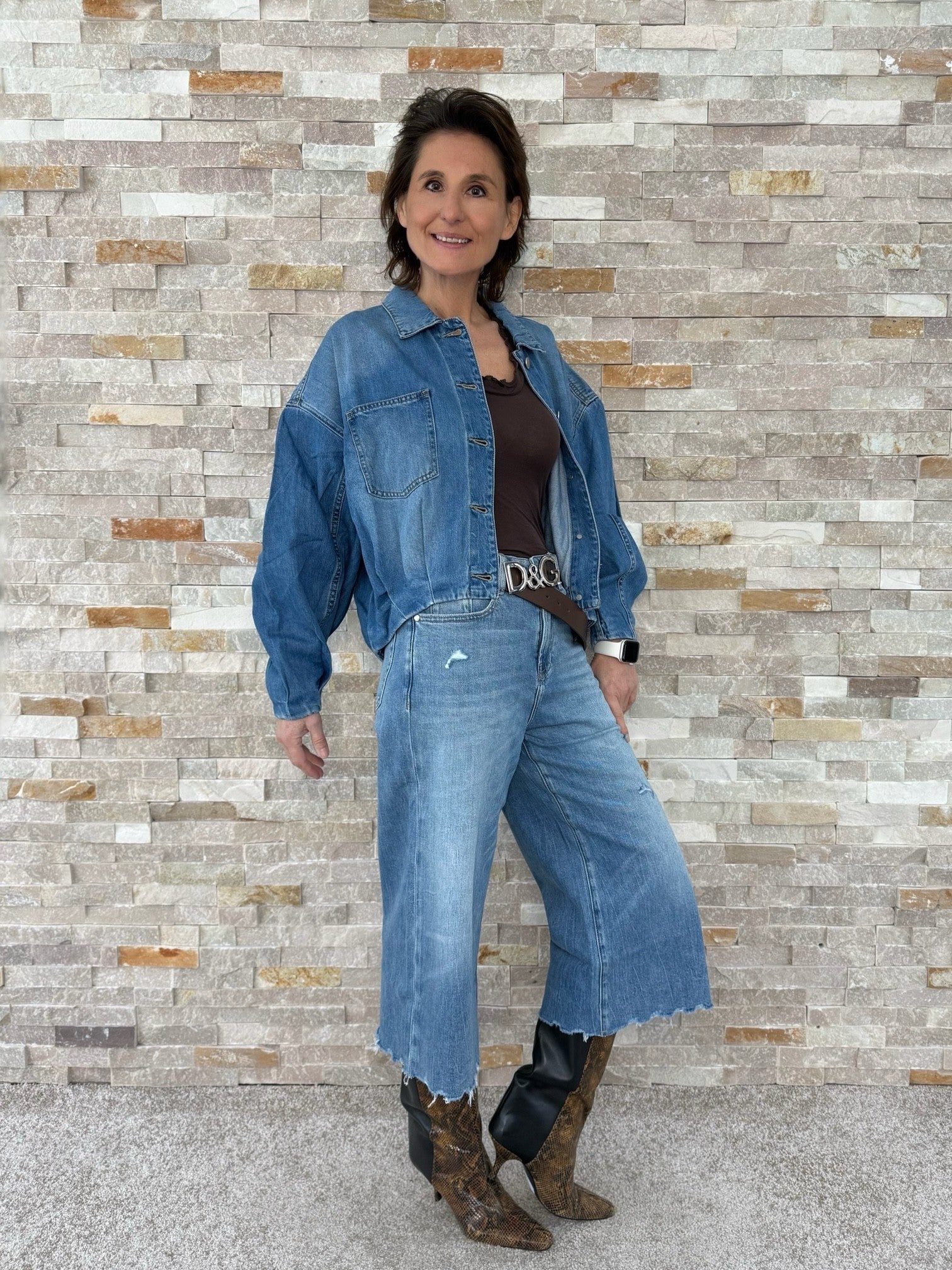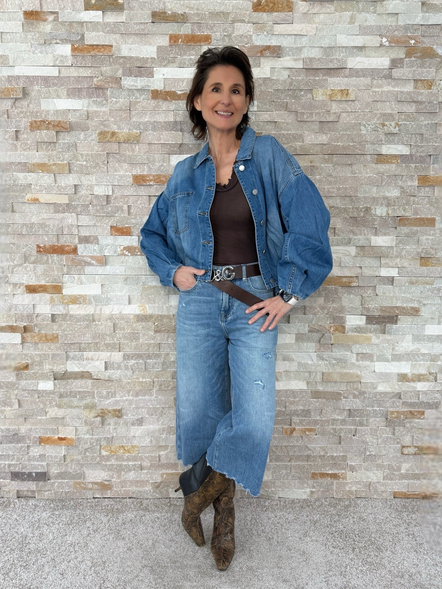 3/4 wide Leg Jeans ER LINA cropped length in mount blue