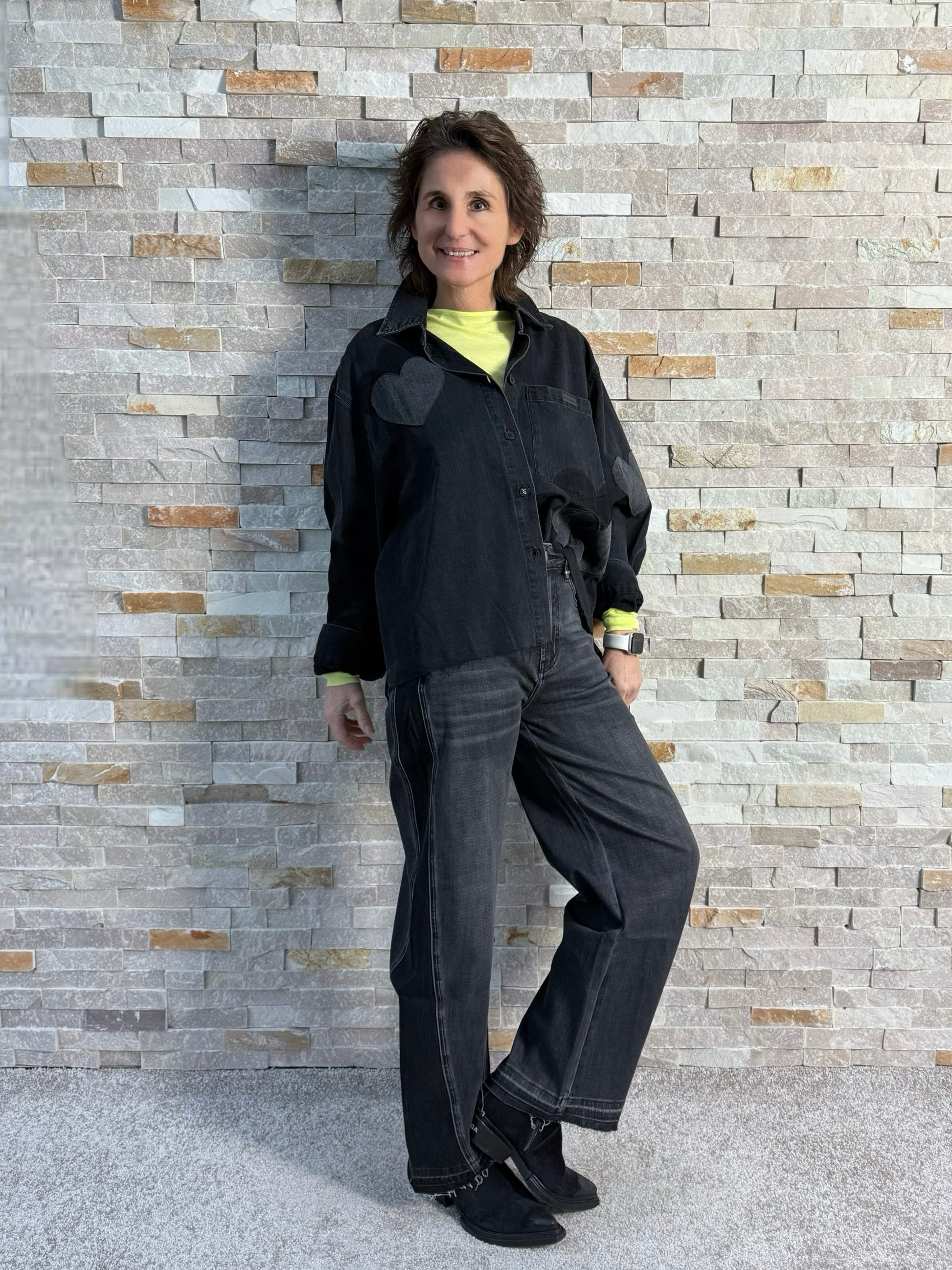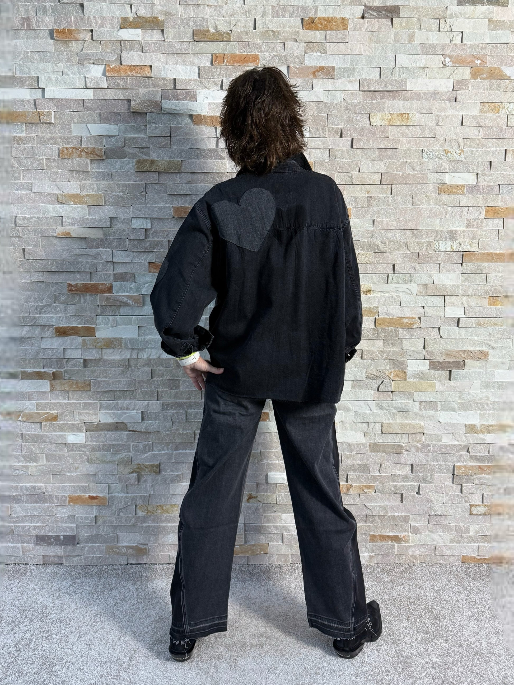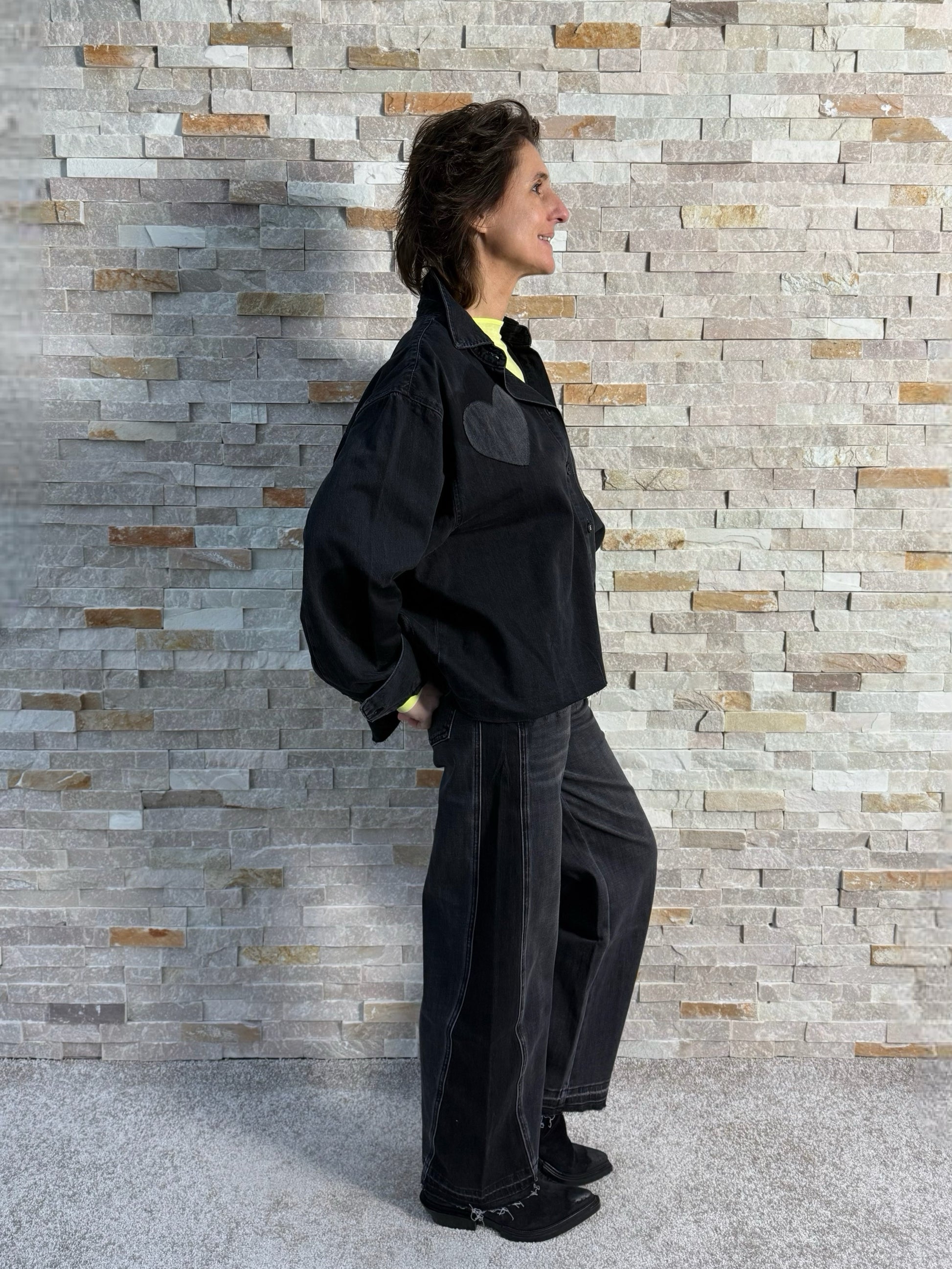 - Dunkelgraue Washung mit Seiteneinsatz in Schwarz