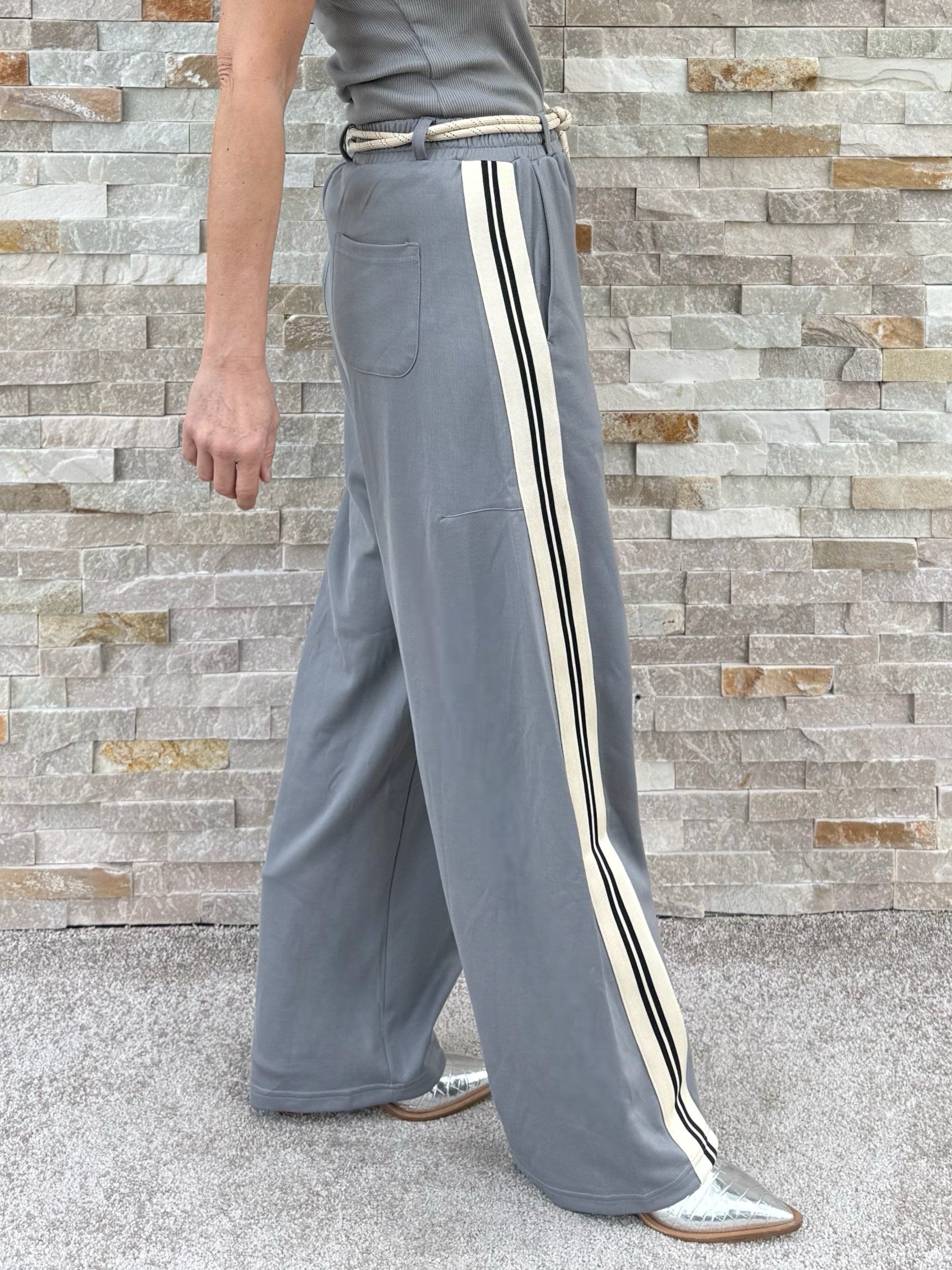 Barrel Track Pants mit Steitenstreifen in Grau