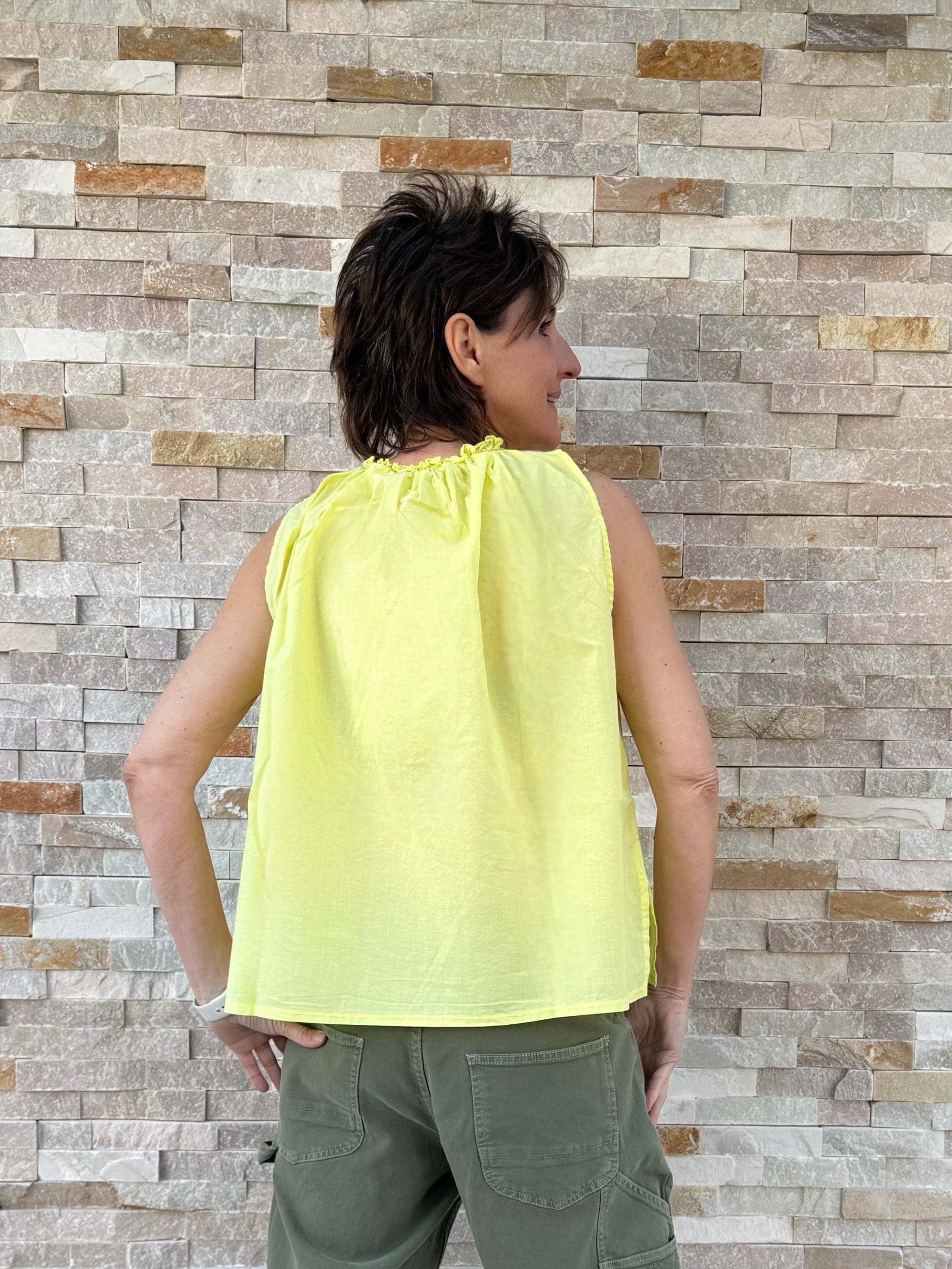 Baumwolle Bluse ohne Arm in Limette