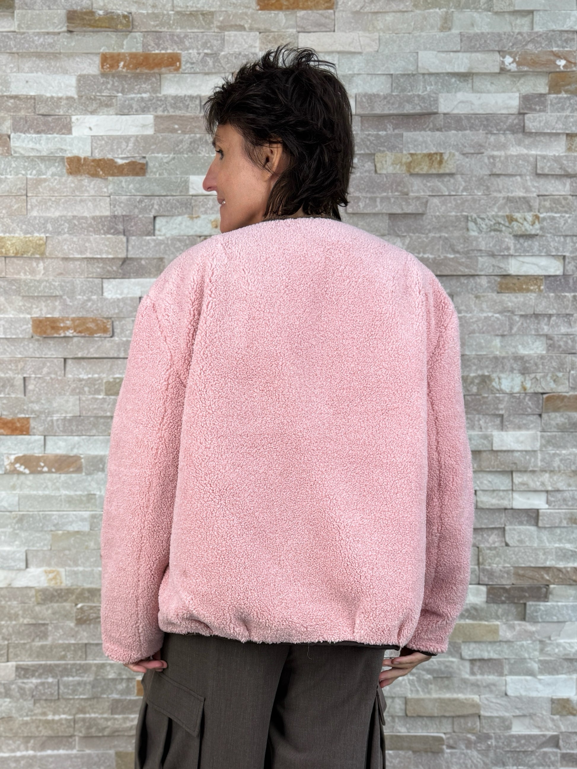Toller Wende-Blouson mit Teddyfell. Mit Rundhalsausschnitt und Reißverschluss mit Knopfleiste. Seitlichen Eingriffstaschen auf beiden Seiten.