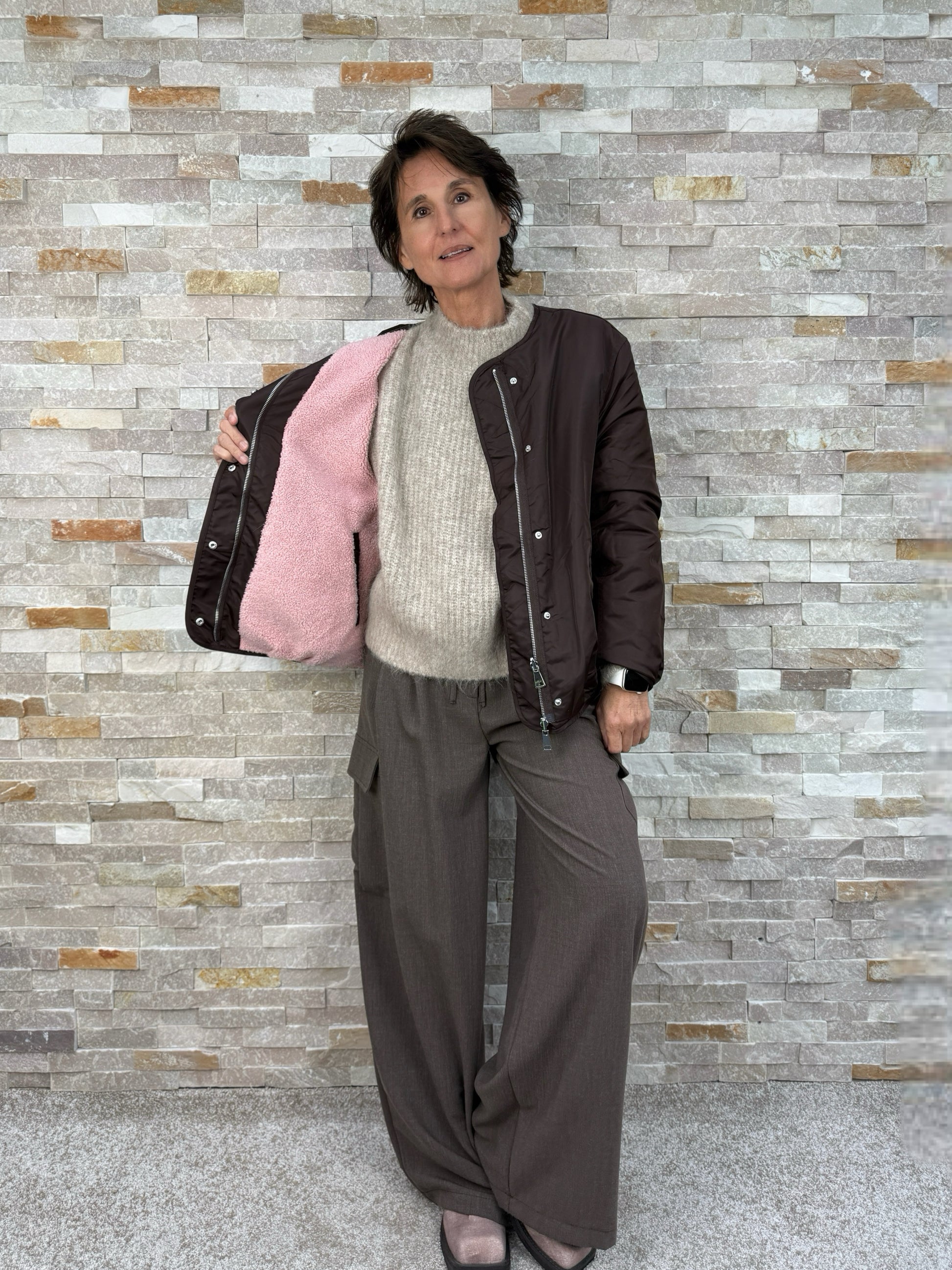 Bomberjacke zum Wenden mit Teddyfell in Chocolate
