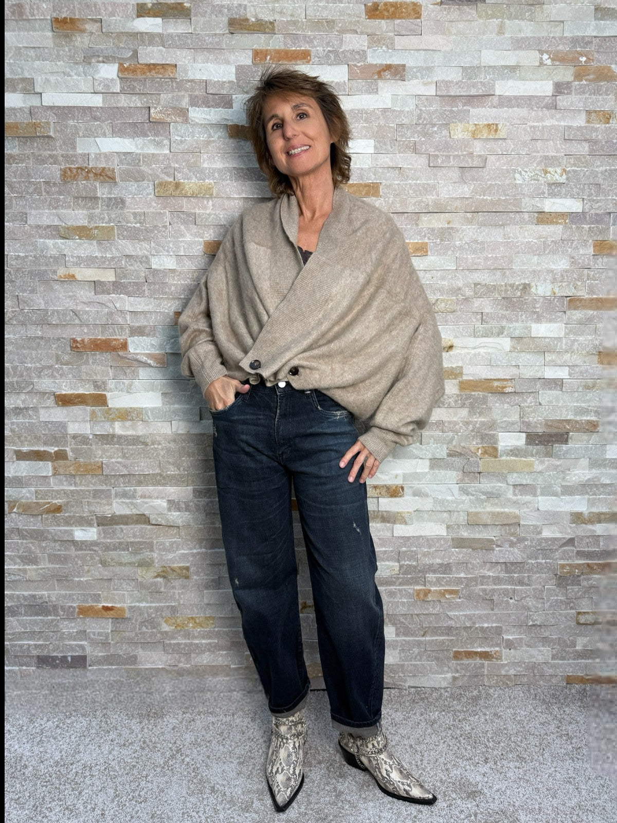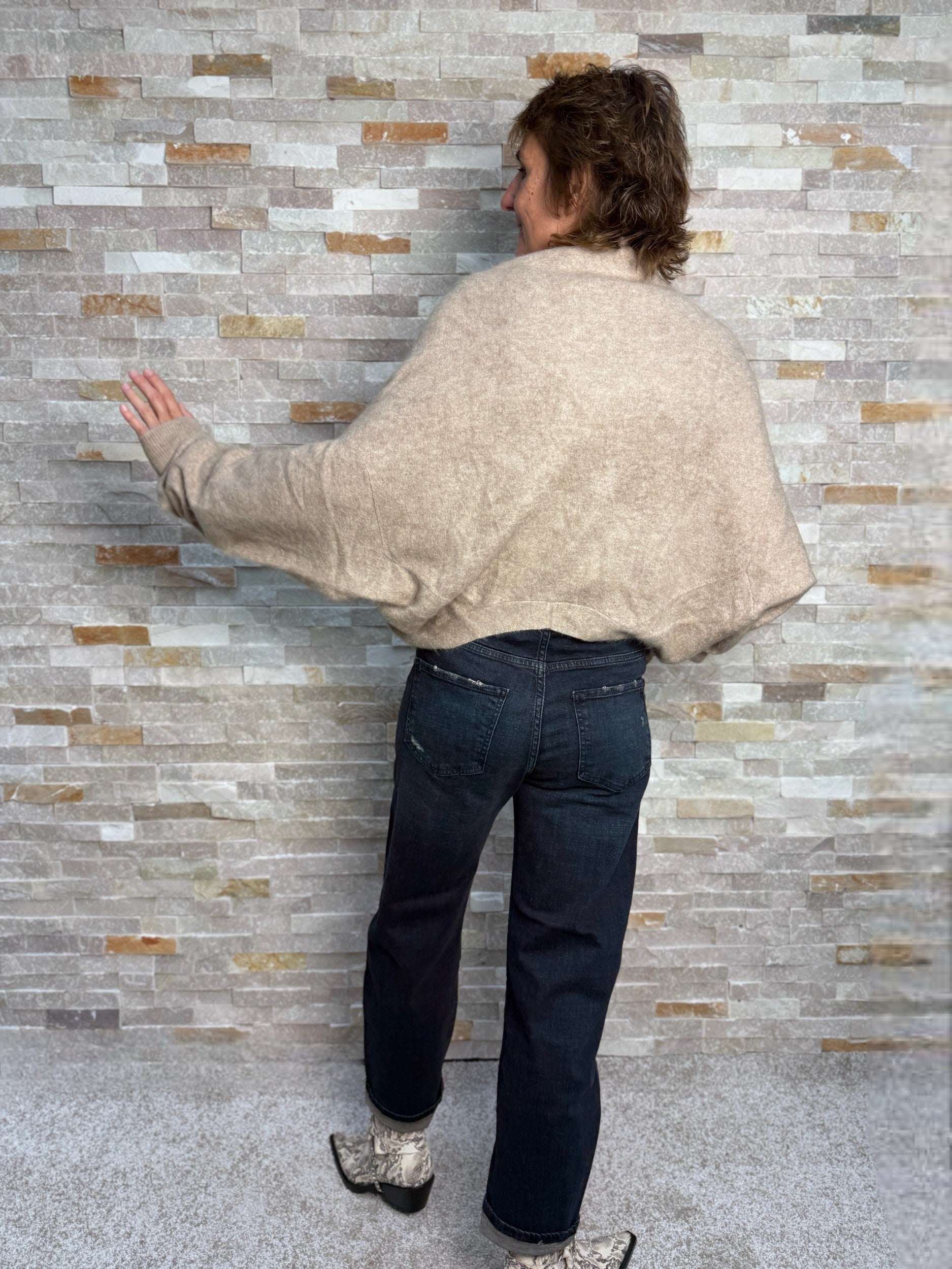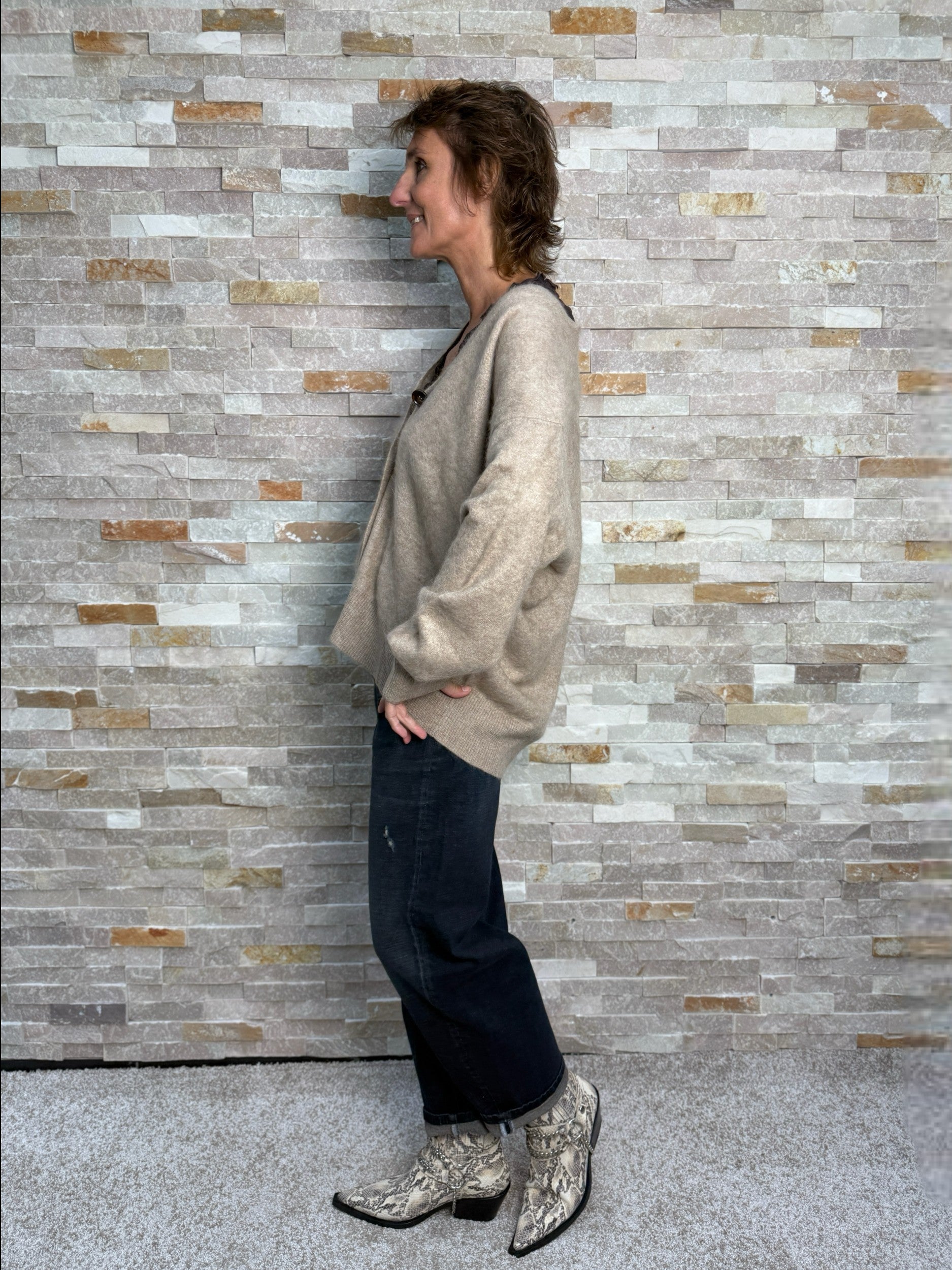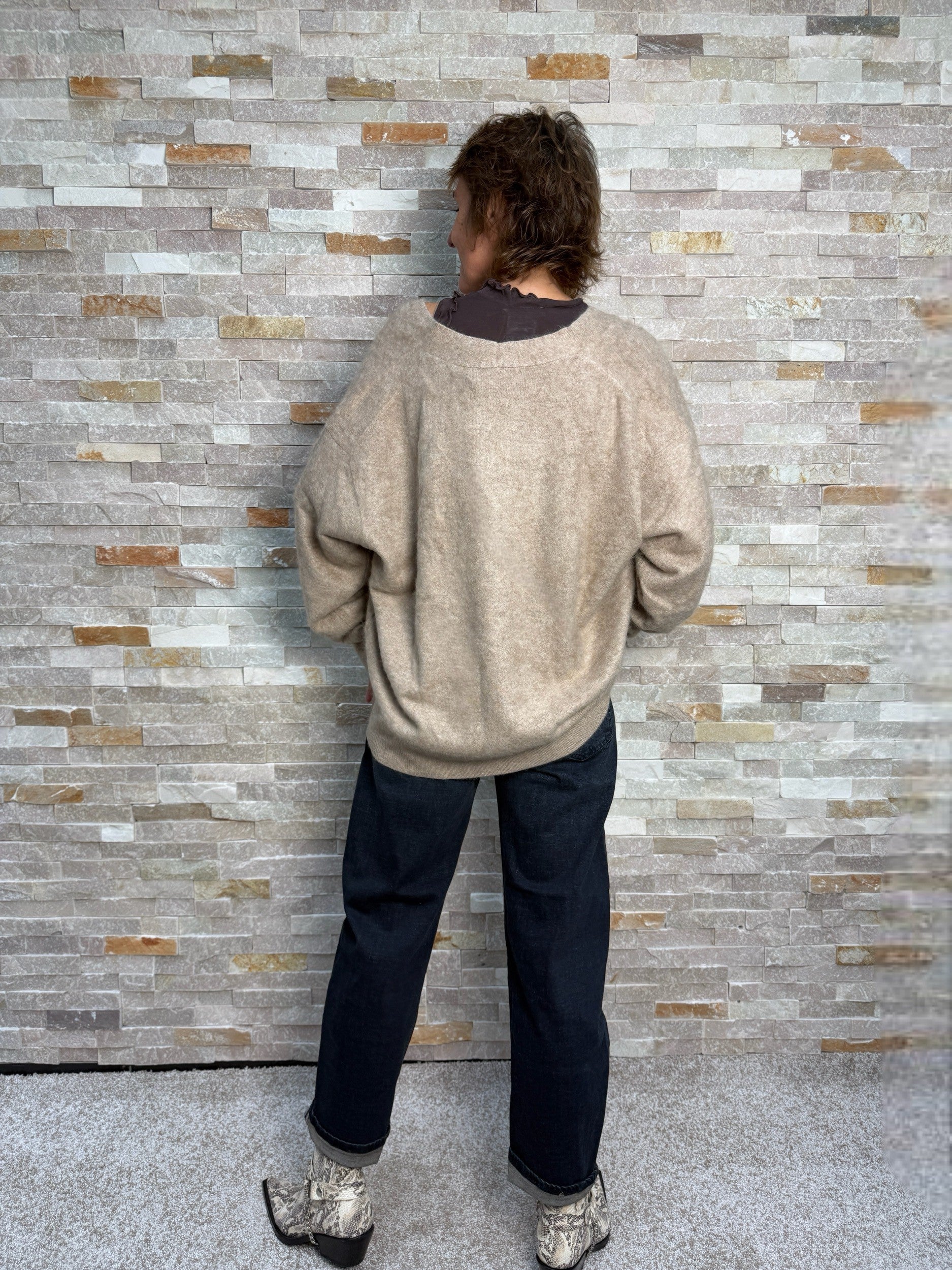 Brushed Cashmere oversized Cardigan Hellbraun