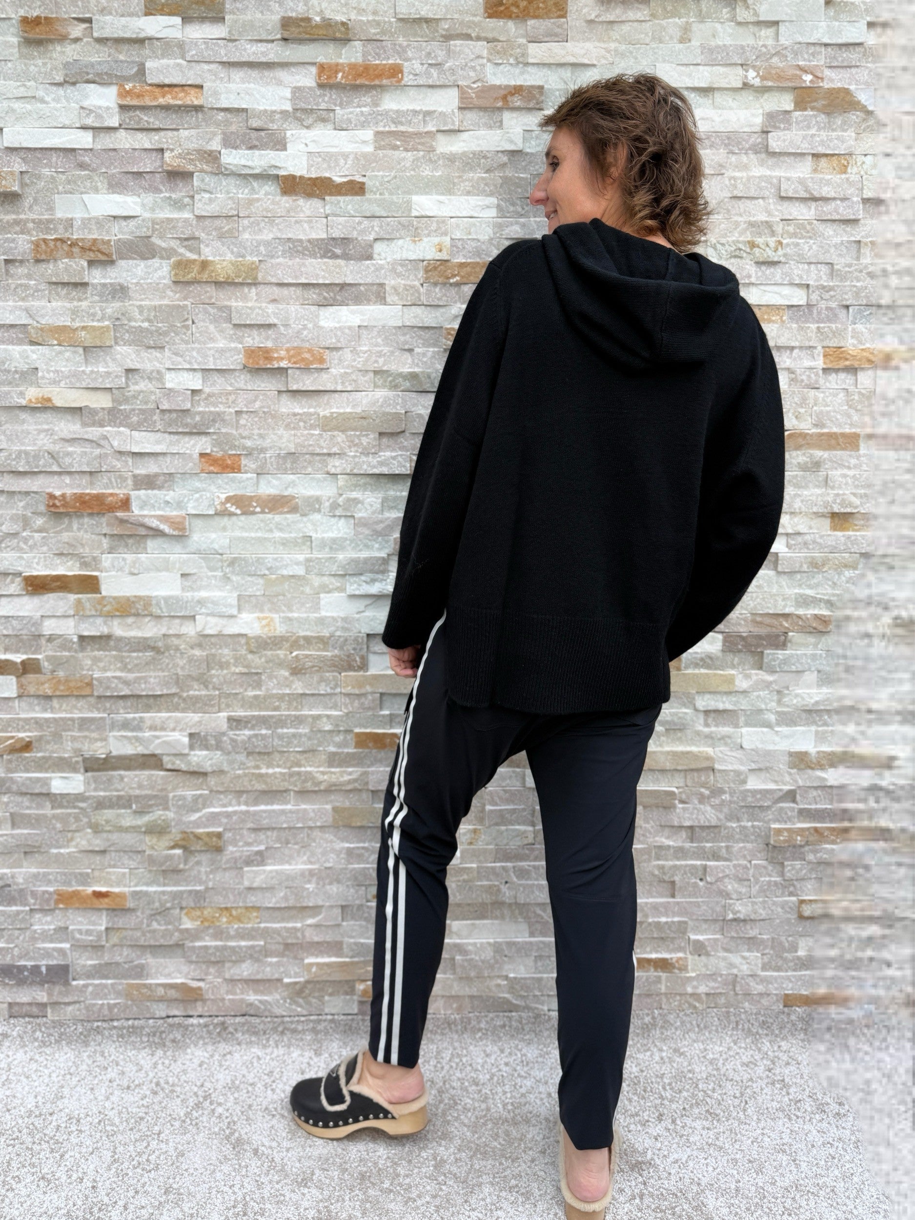 Cashmere Strick Hoodie in Schwarz
