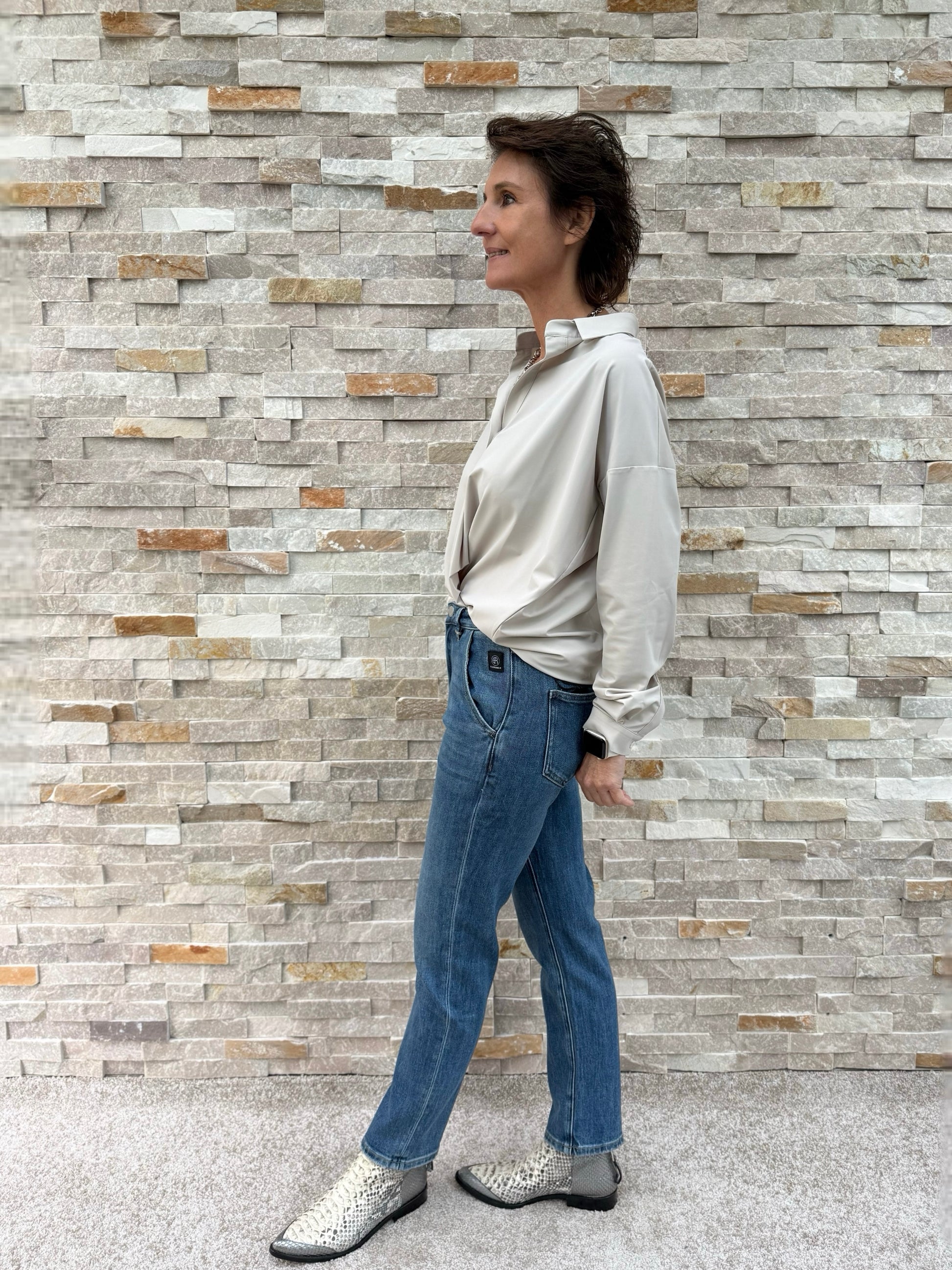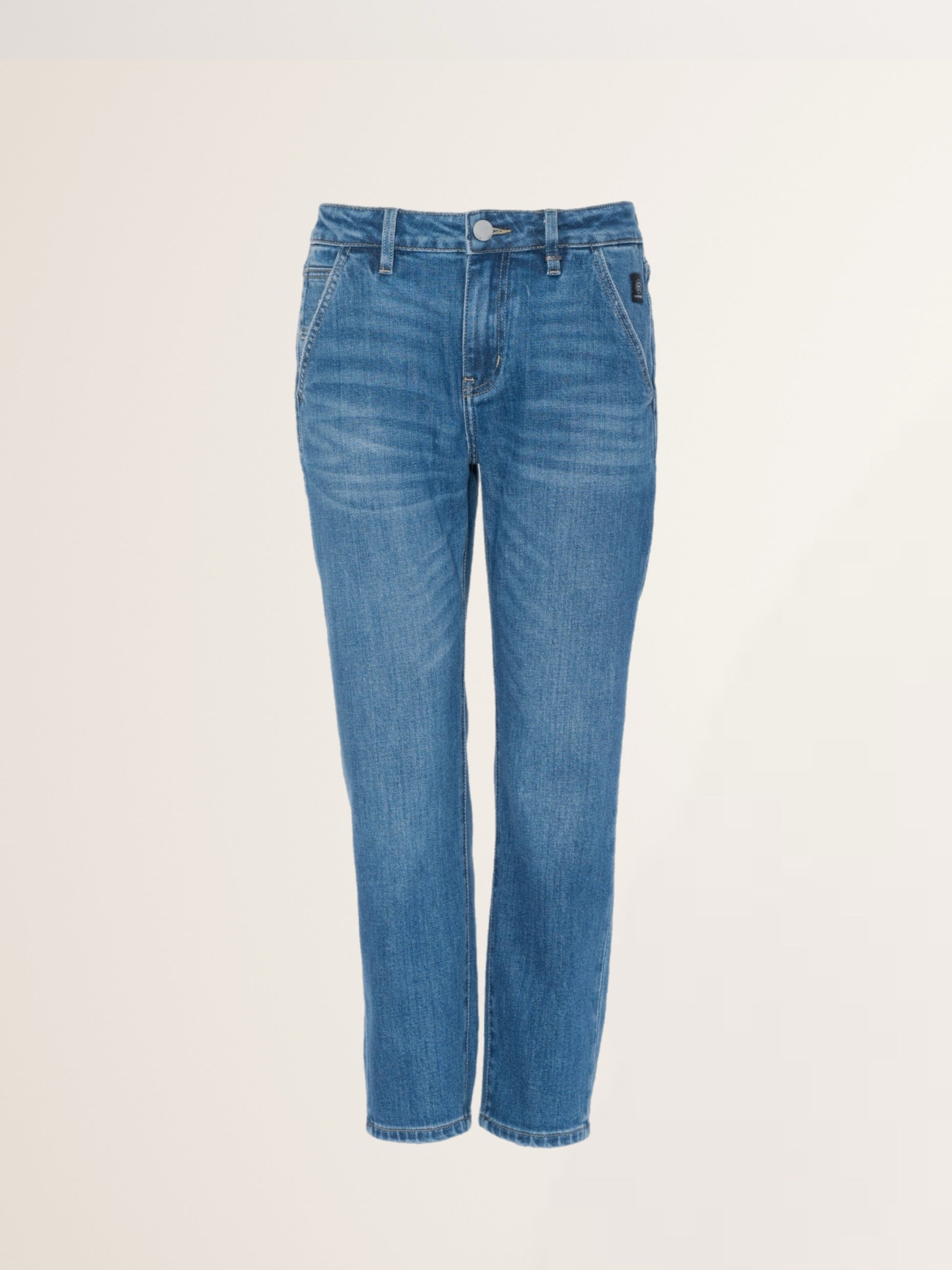 Gerade geschnittene Chino Jeans JACKY. Schräge Seitentaschen, mittlere Leibhöhe, mit Reißverschluss, Knöchellang.