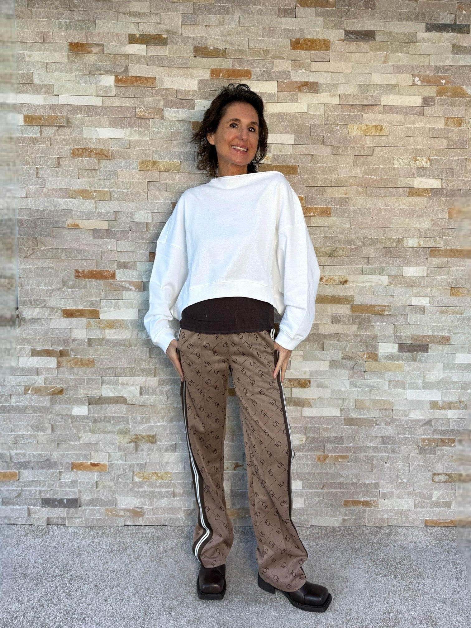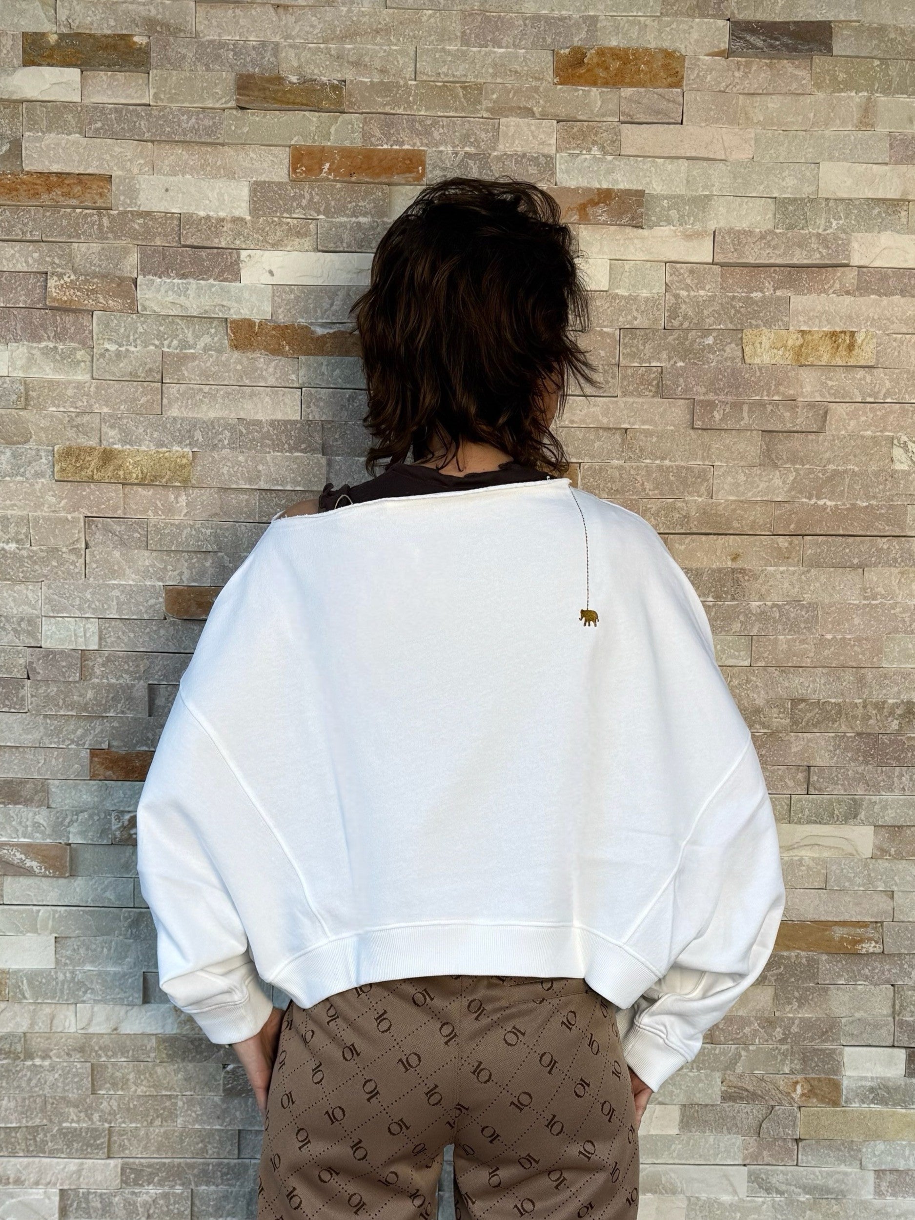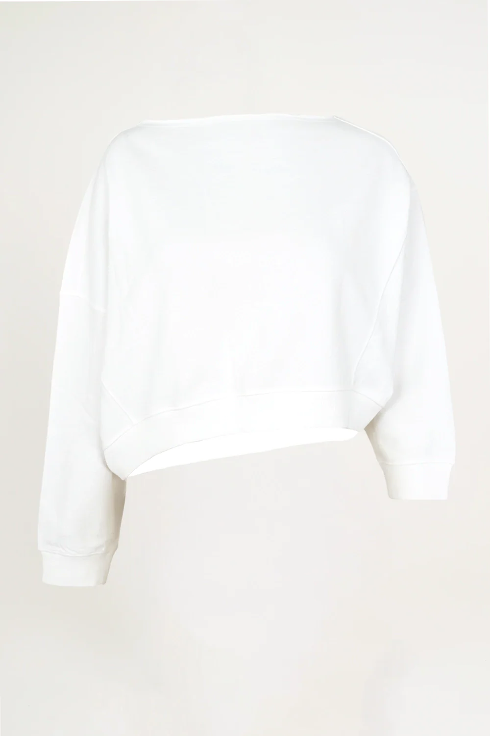 Cropped Sweatshirt MARTI mit asymmetrischem Ausschnitt in Weiss