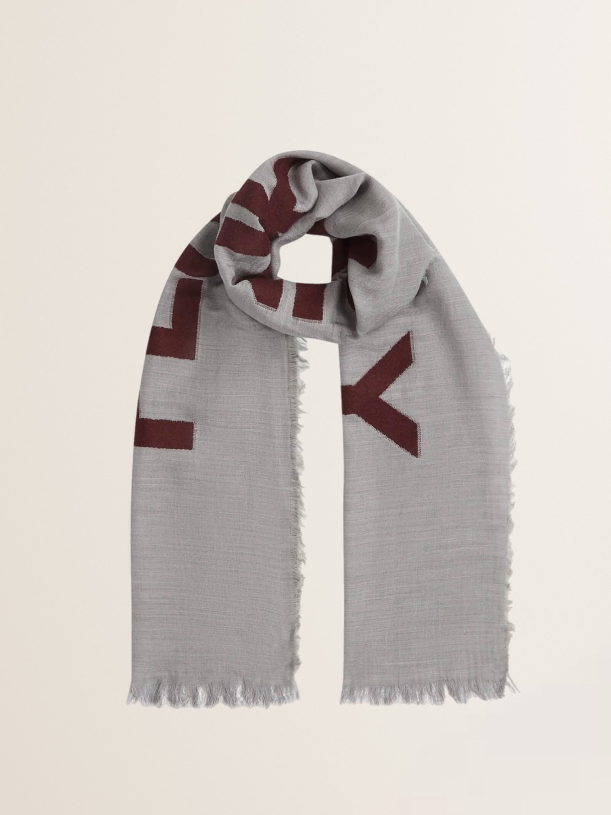 Leichter Webschal mit Logo in Grau-Aubergine