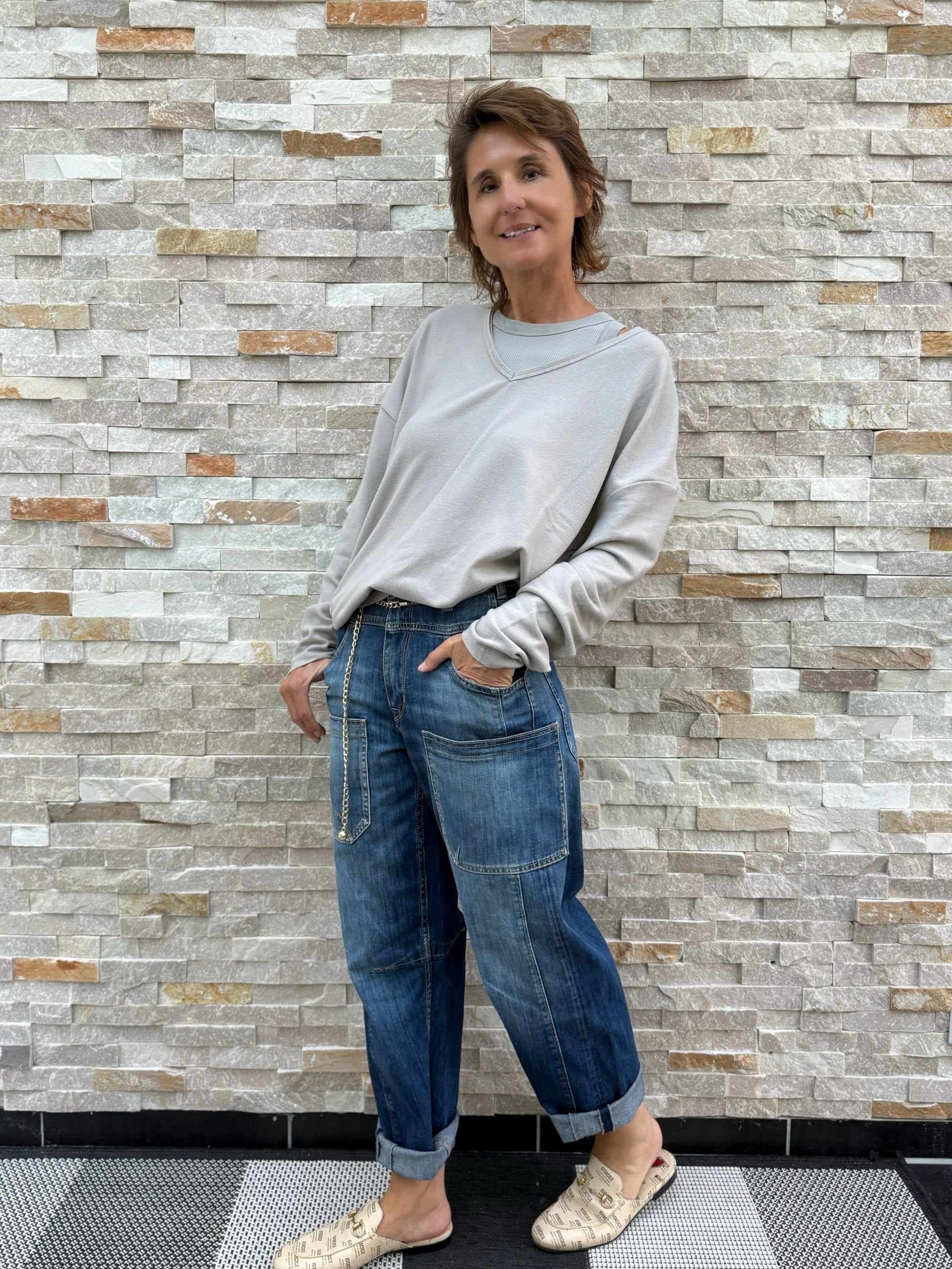 Sweatshirt JUPITER NOT mit Stickerei in Grey Mom