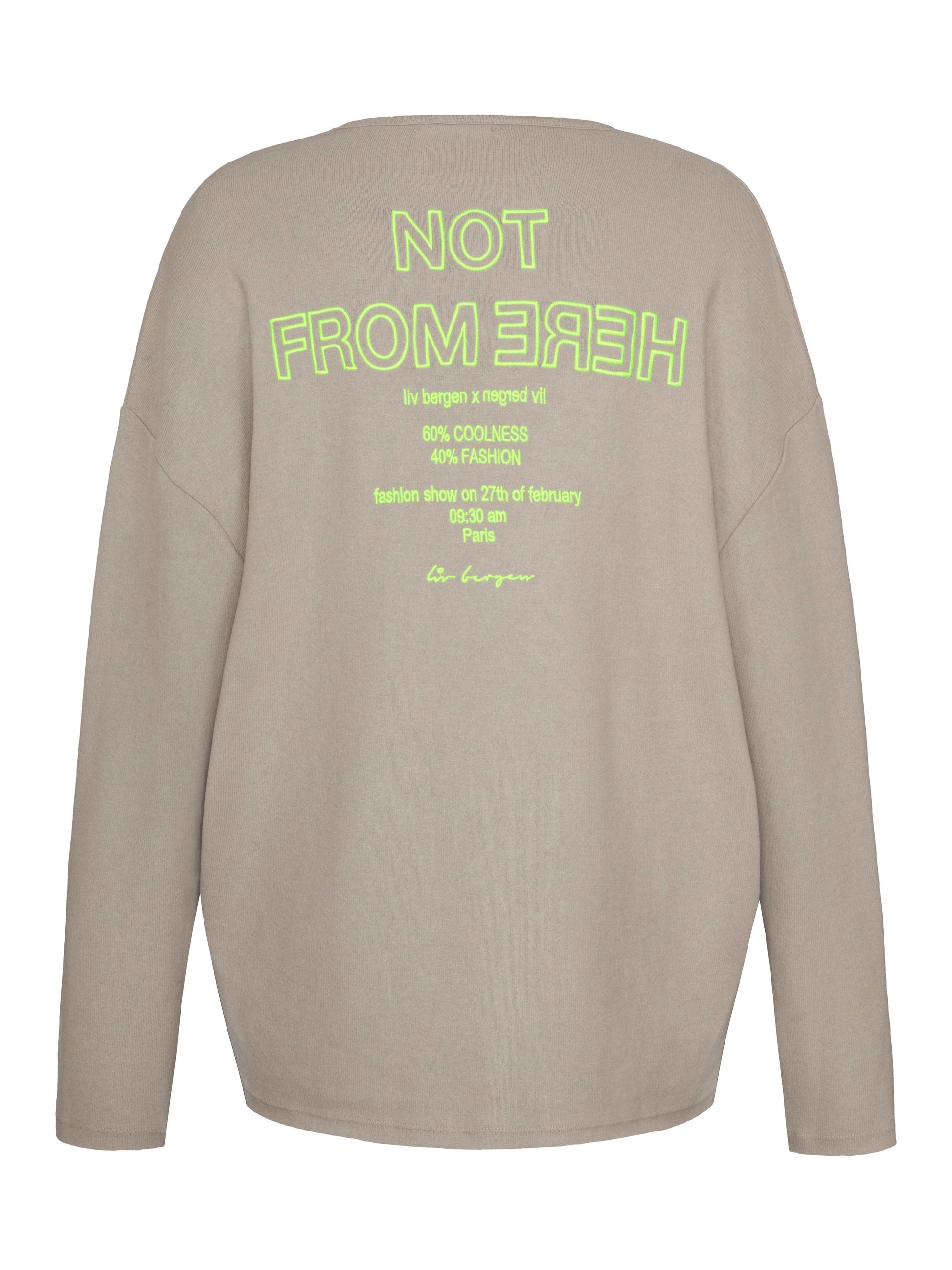 Dünneres Sweatshirt mit weichem Griff, V-Ausschnitt, Neongelbe Stickerei am Rückenteil "NOT FROM HERE"