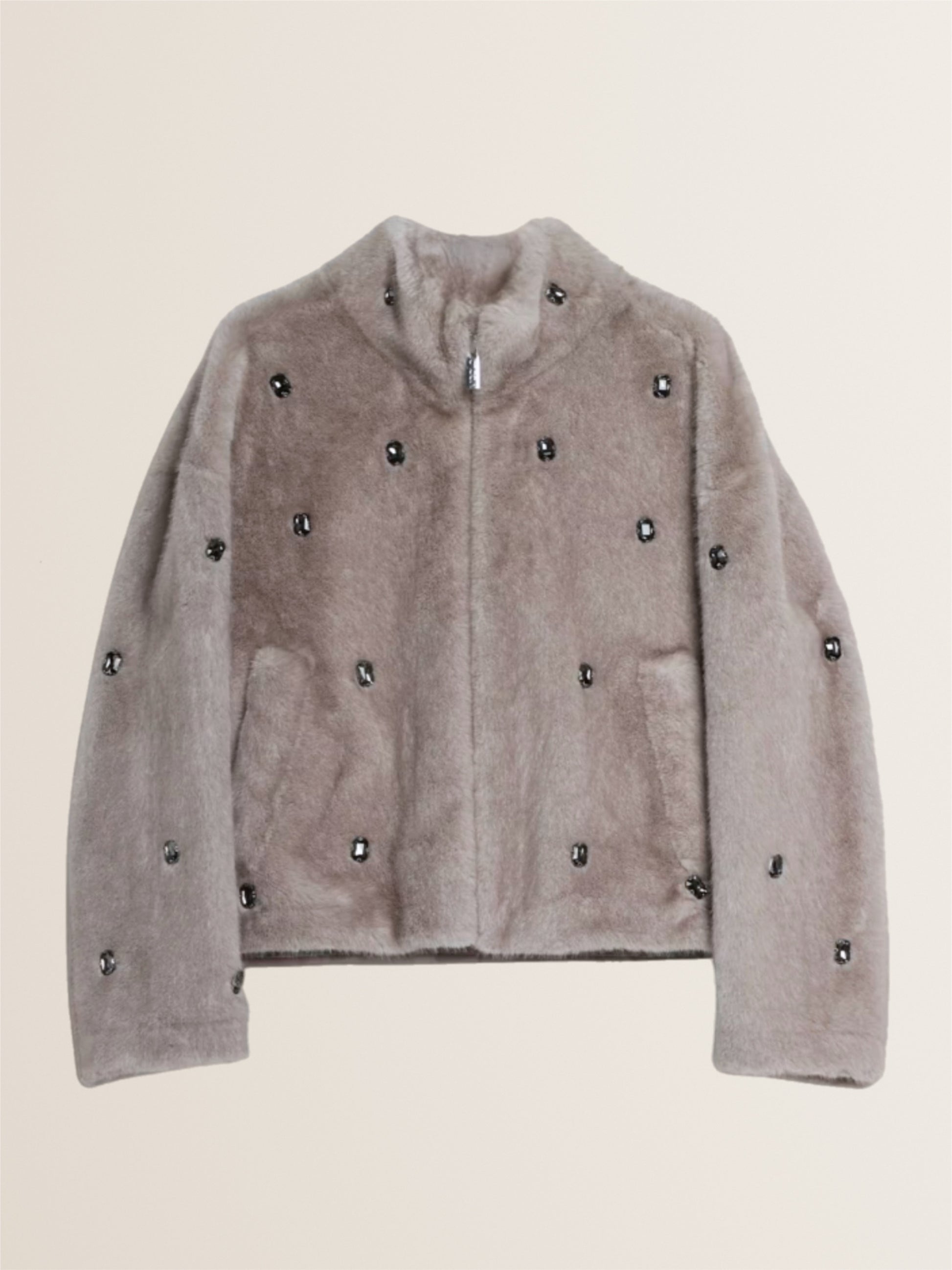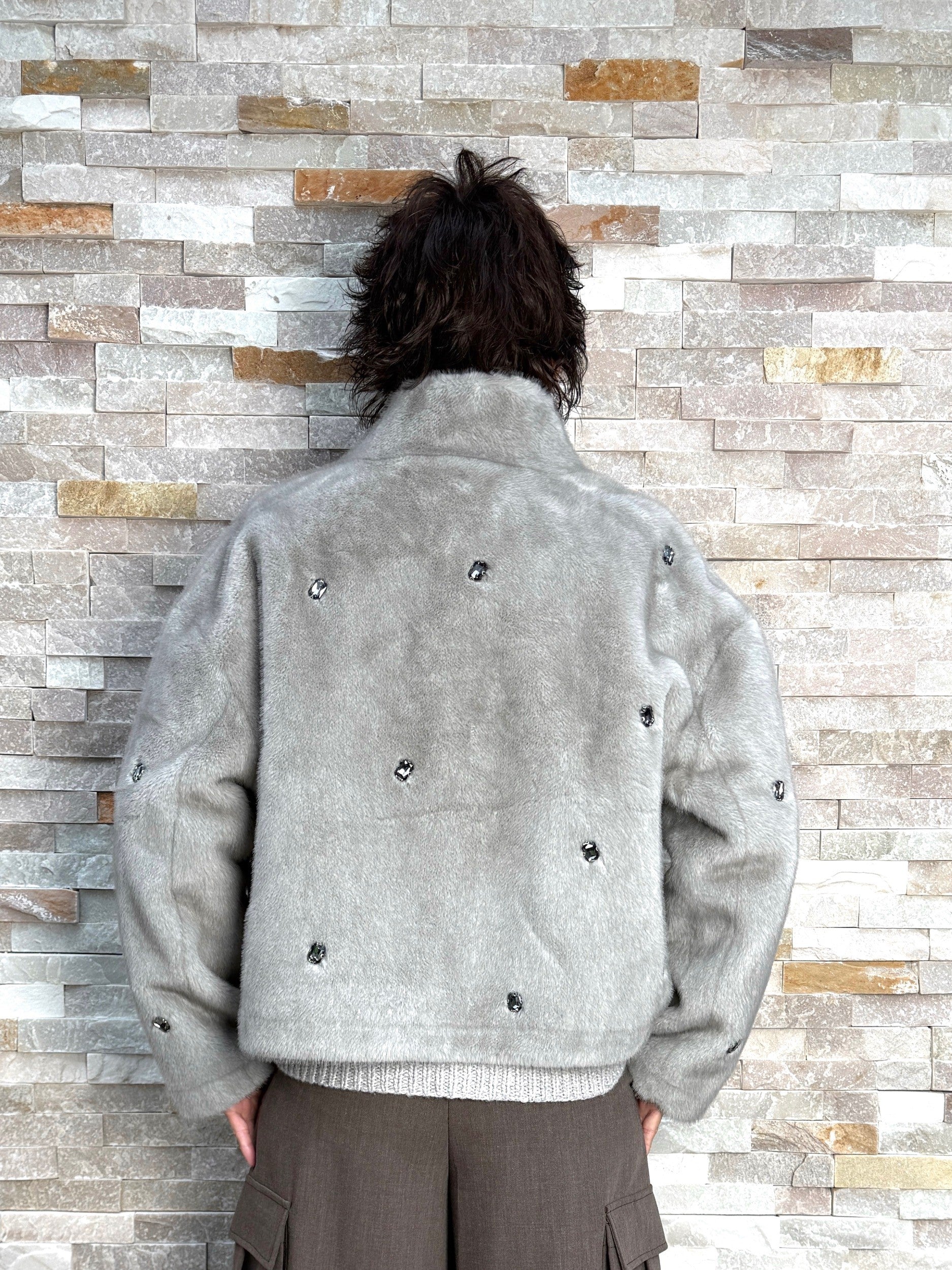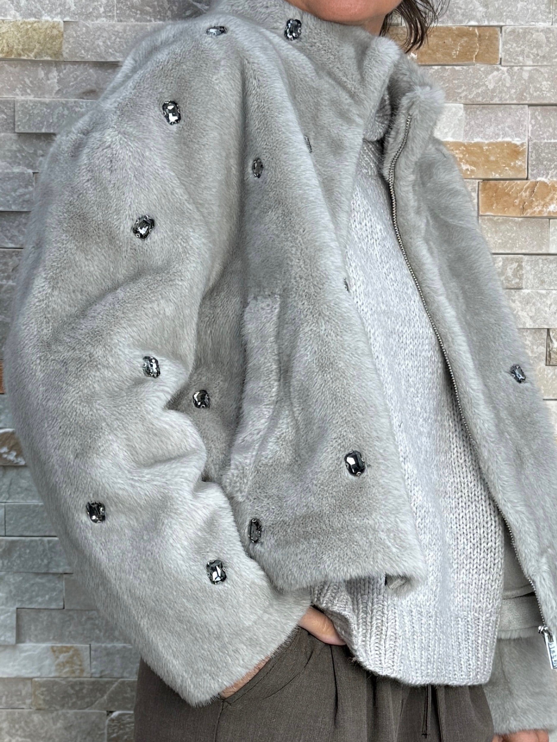 Fake Fur Jacke mit Schmucksteinen in PERLA