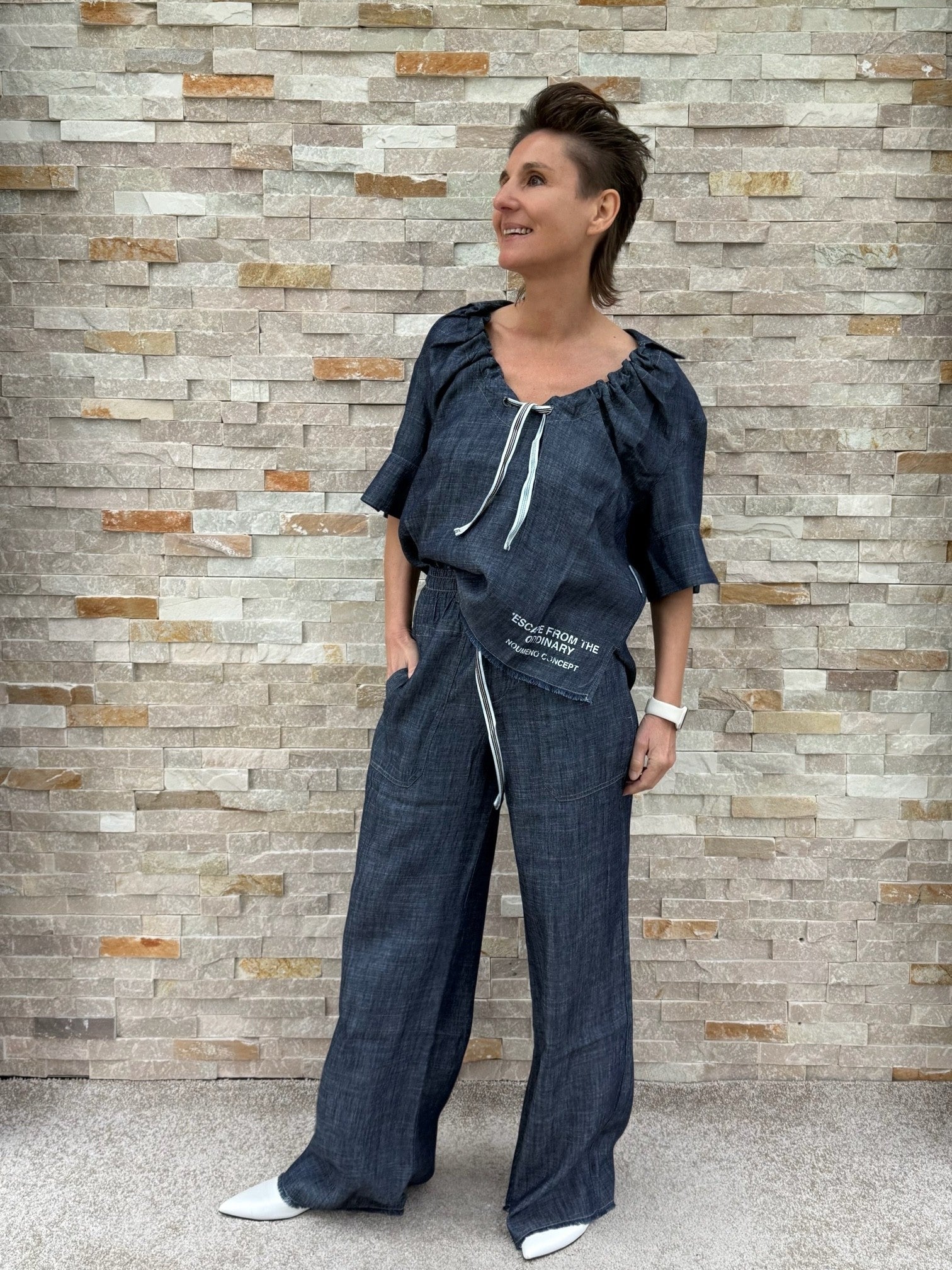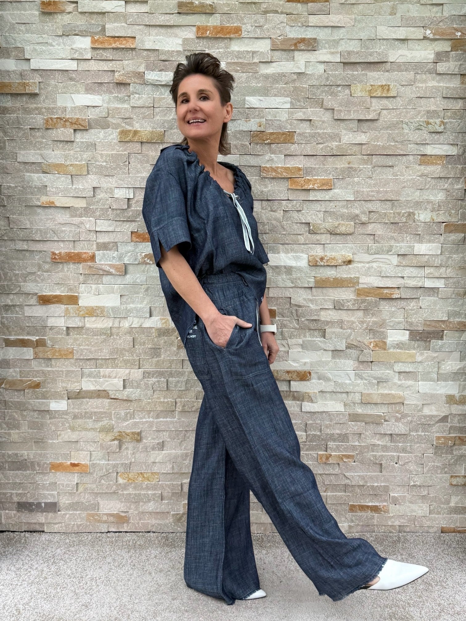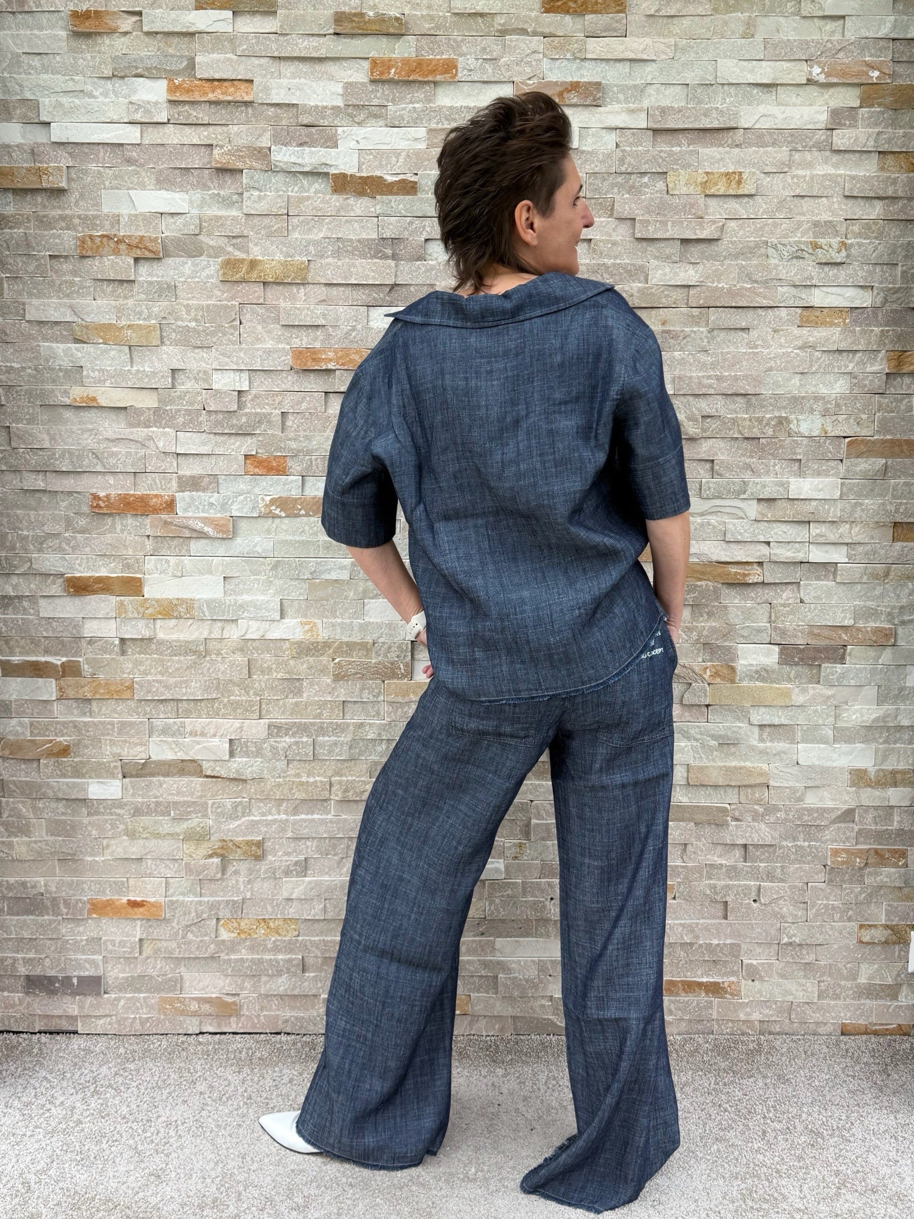 Wide Leg Hose in Denim Optik Navy