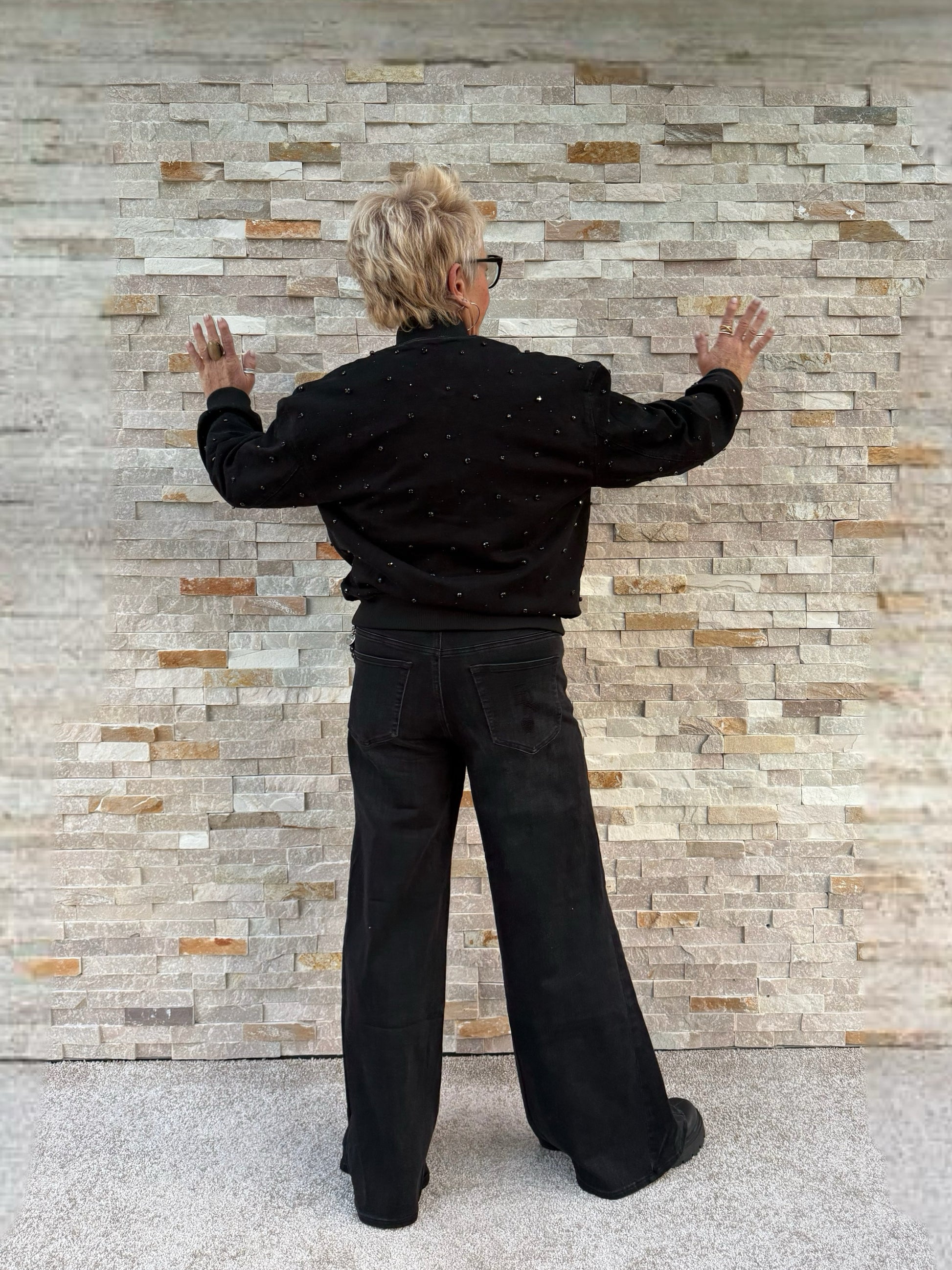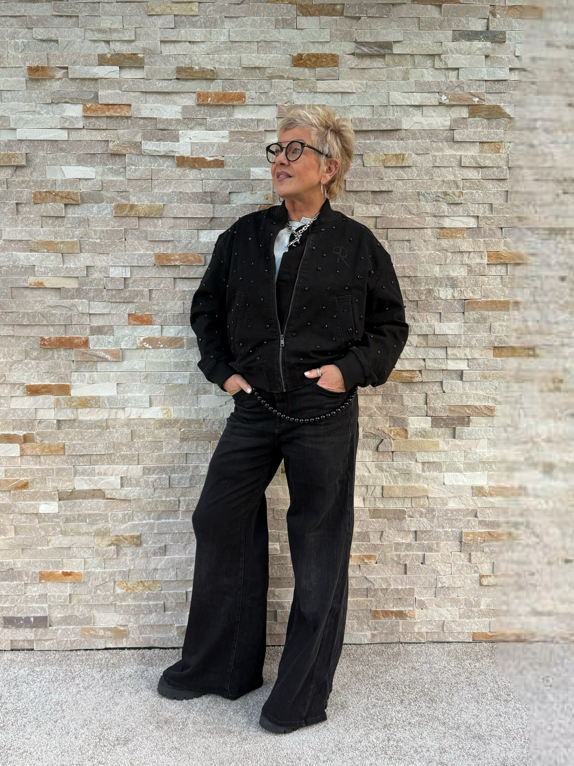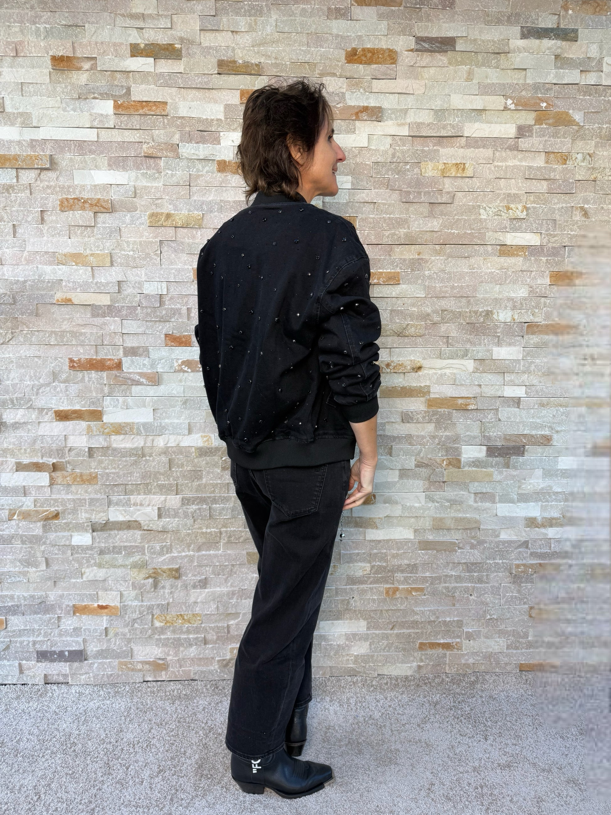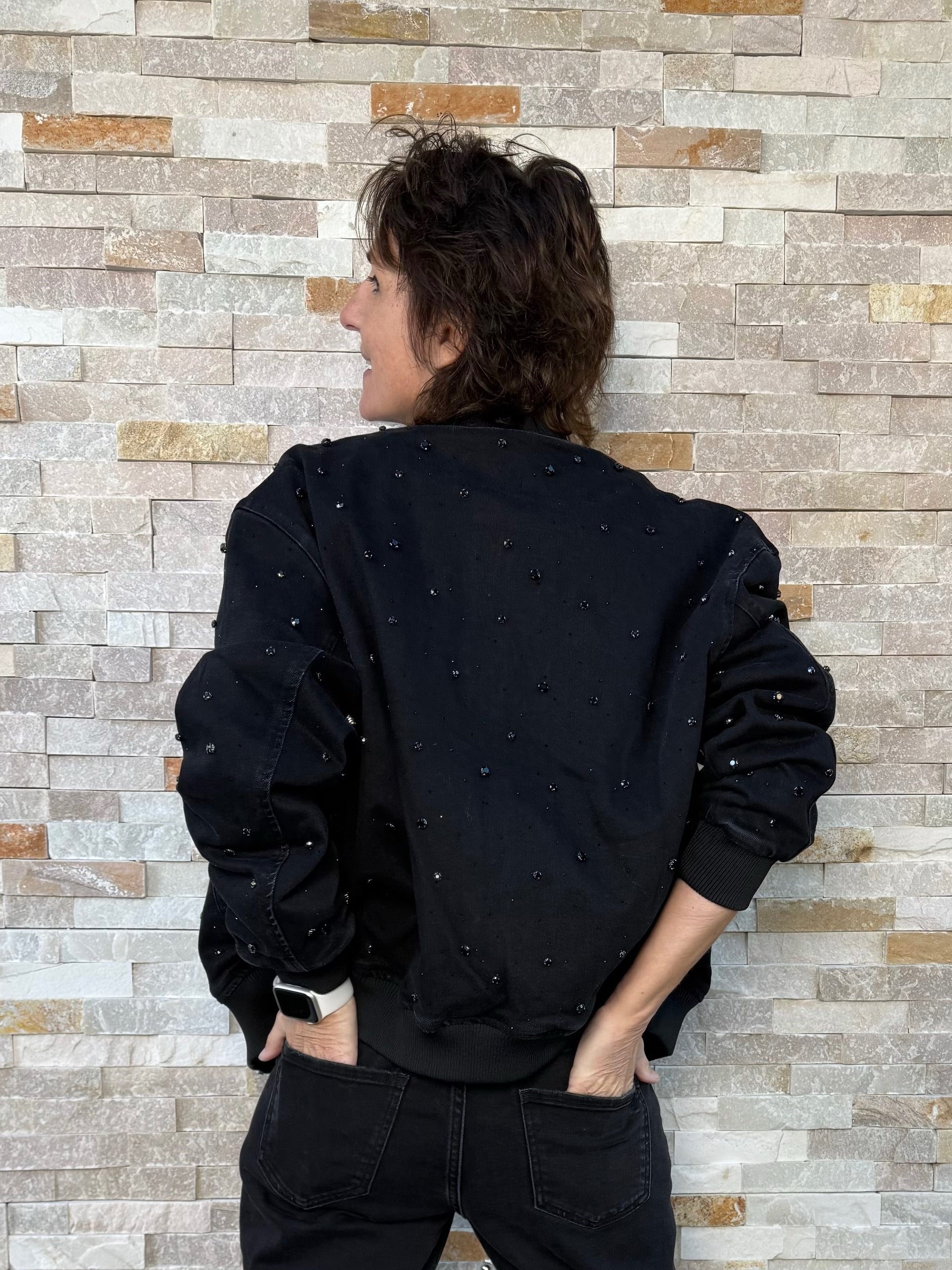 Jeans Blouson ISLA mit Strass-Steinen Allover in Schwarz