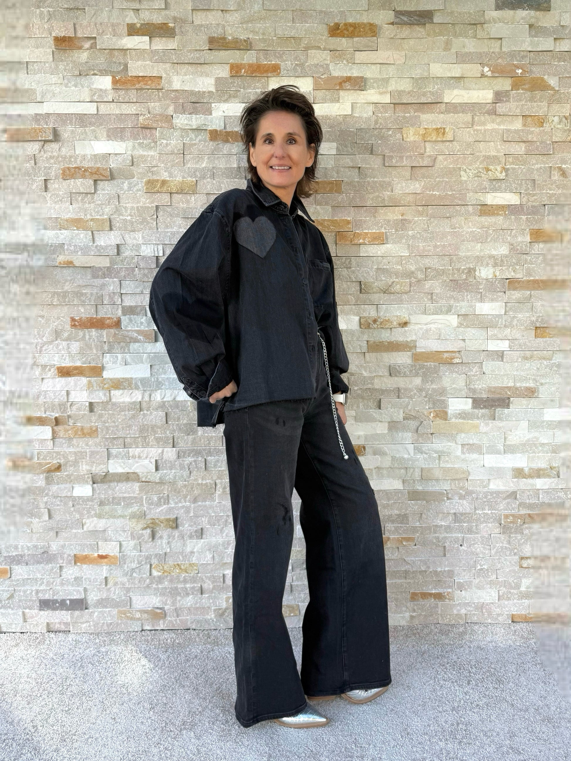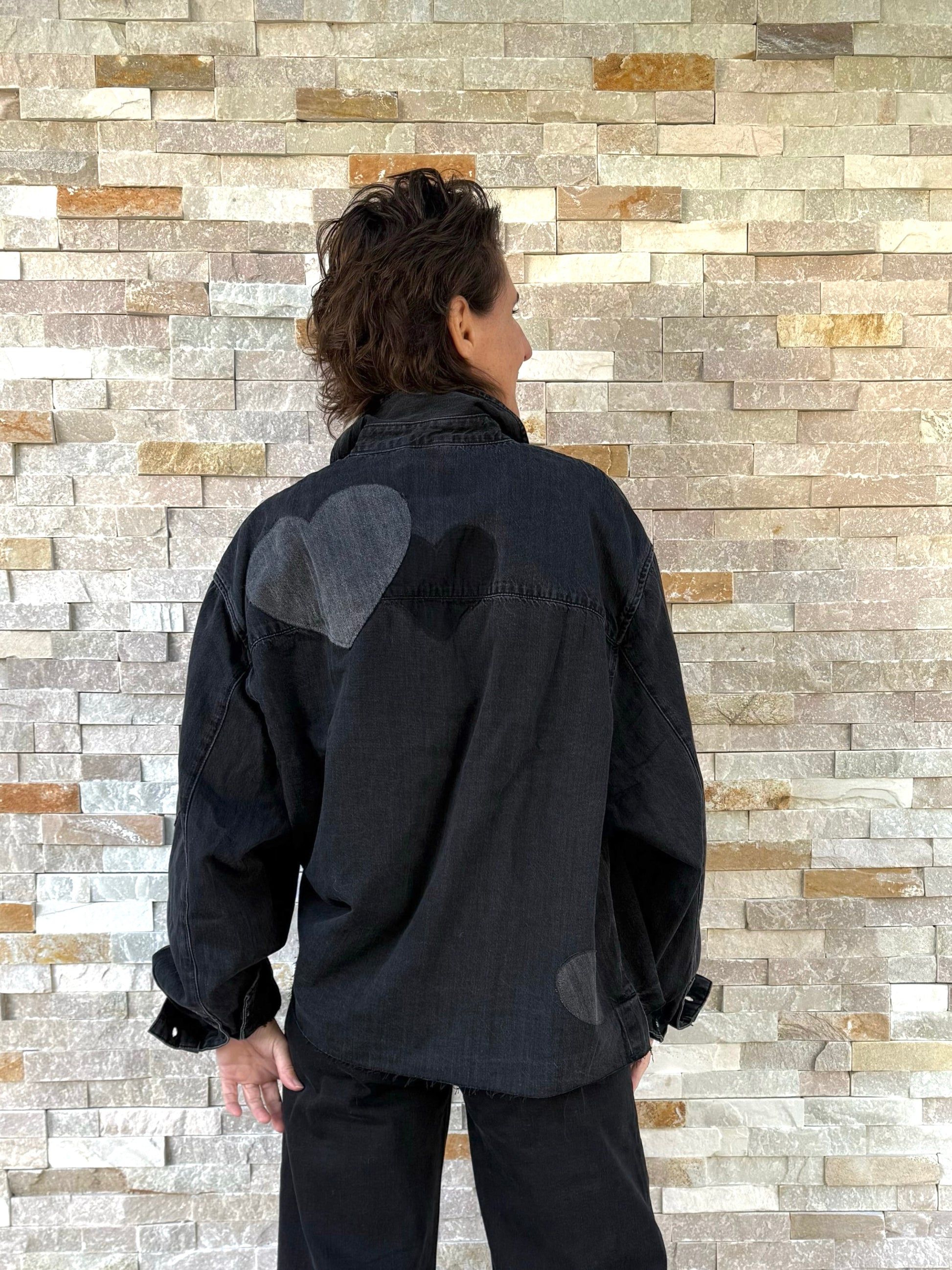 Jeanshemd BEBA mit Herzen in Black Denim