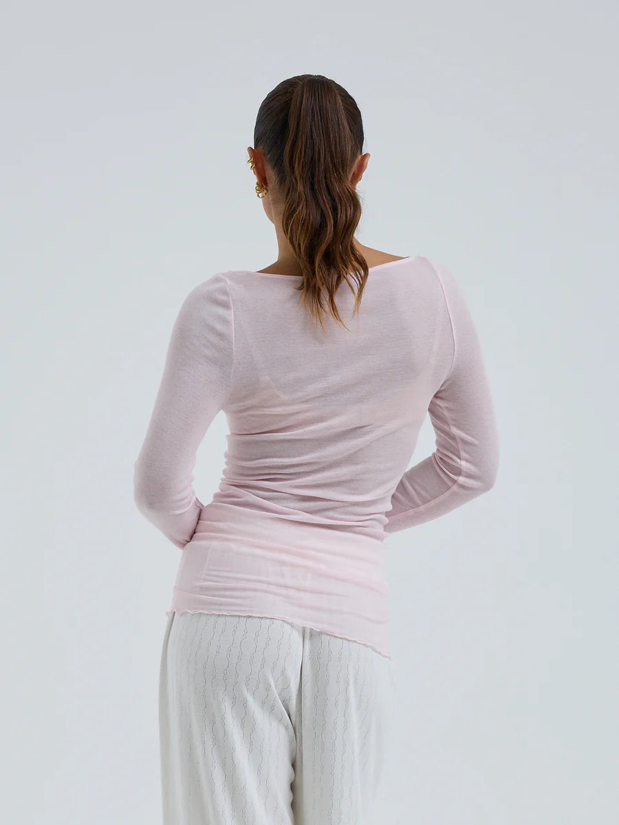 Langarm Shirt mit U-Boot Ausschnitt in Pale Rose