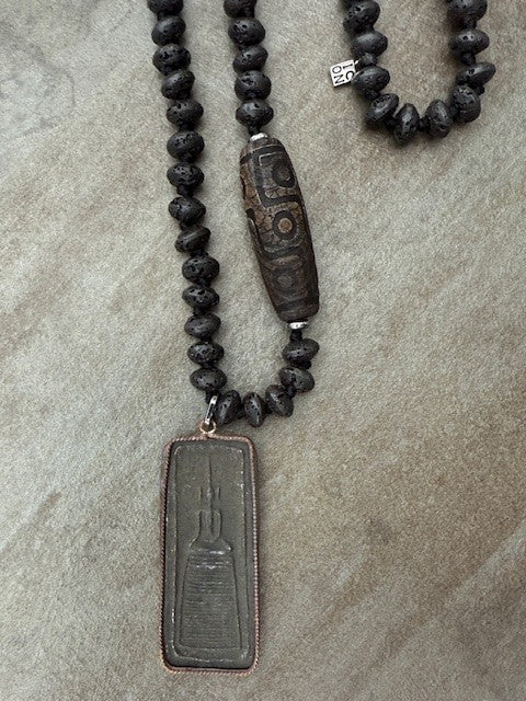 Lange Kette NEPAL mit Buddha-Amulett Lava
