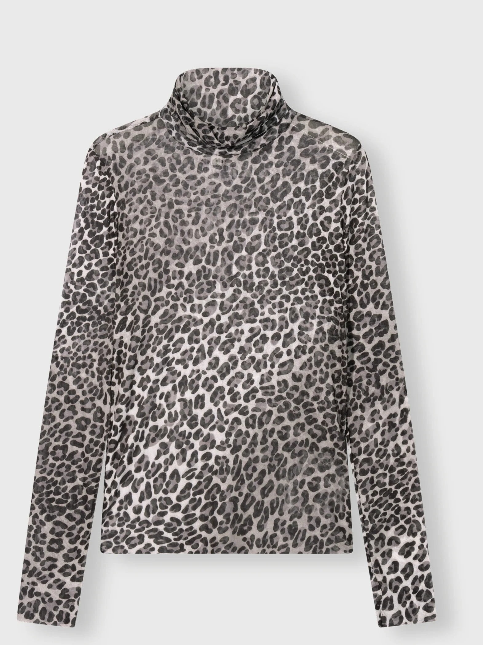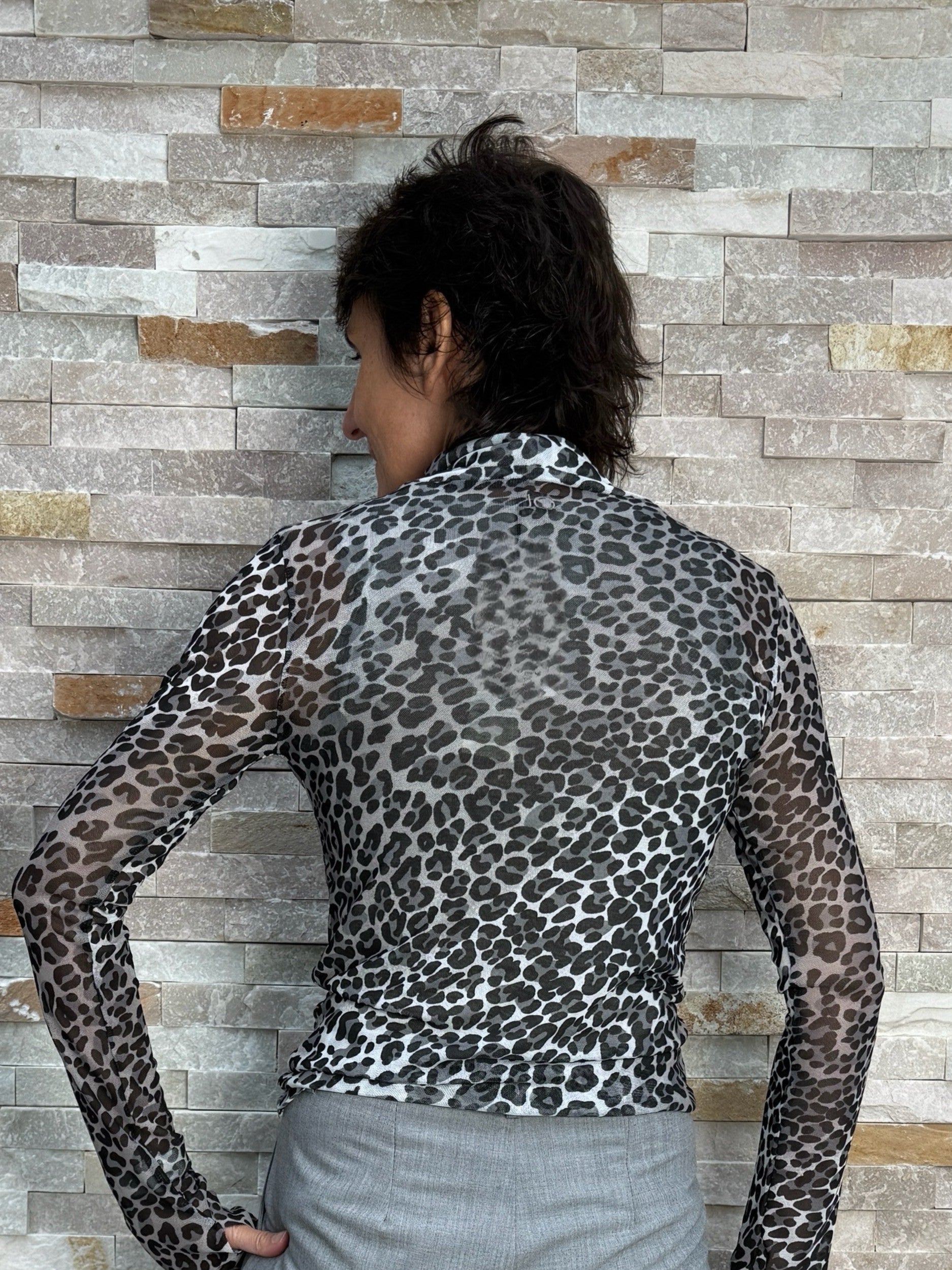 Mesh T-Shirt mit Rollkragen in Leoprint Grau