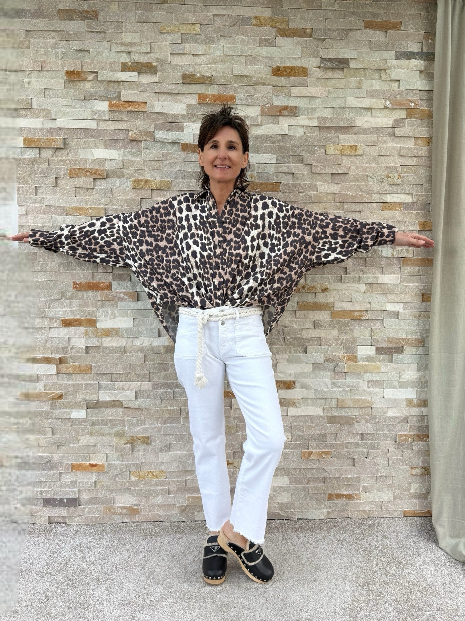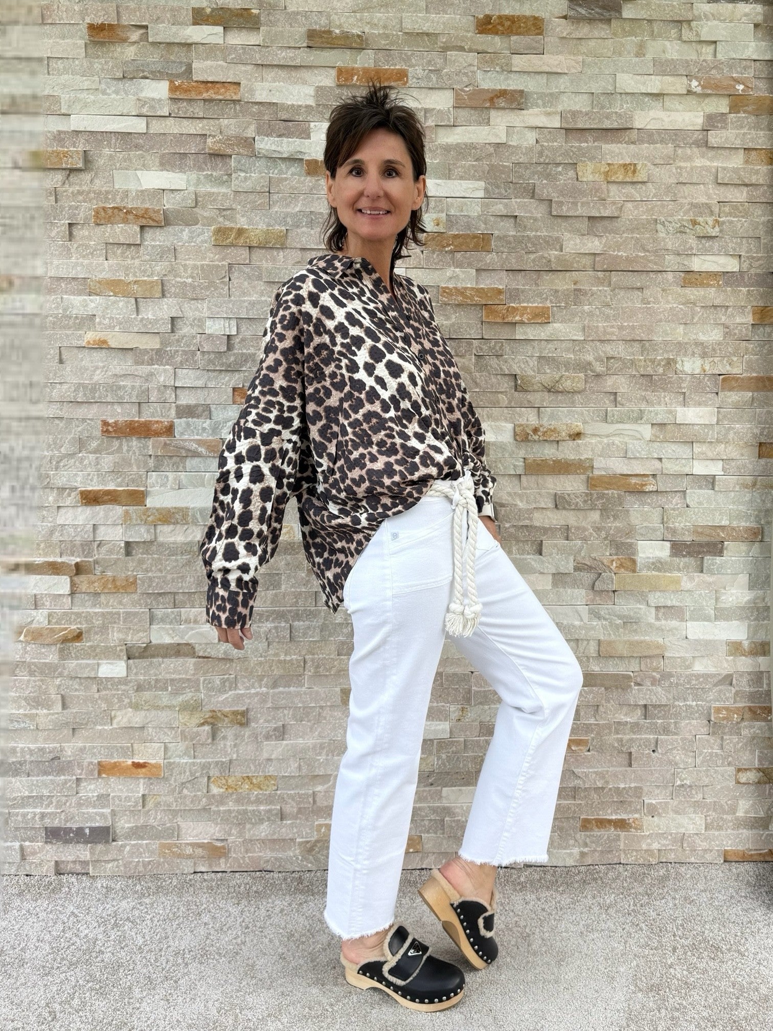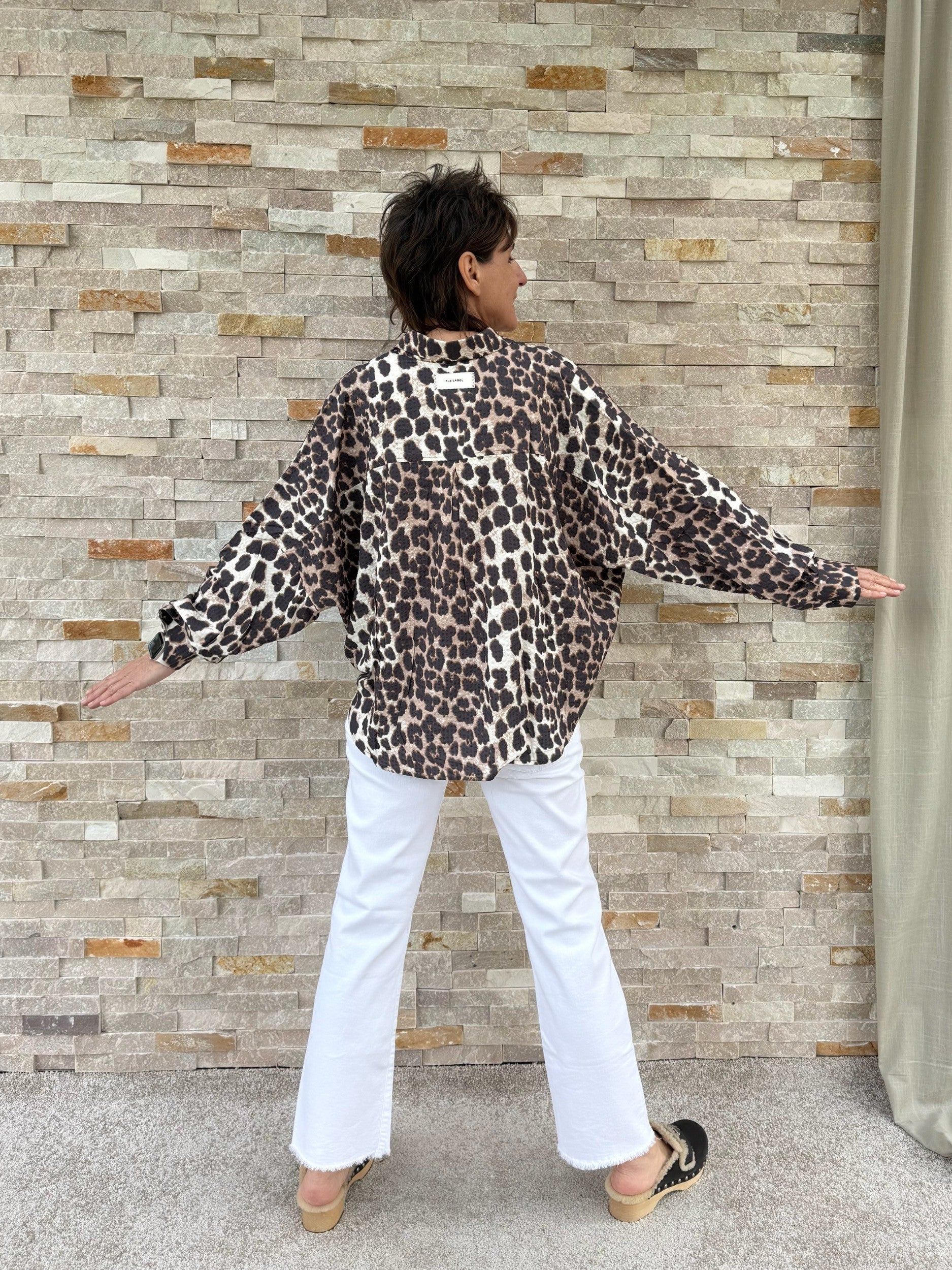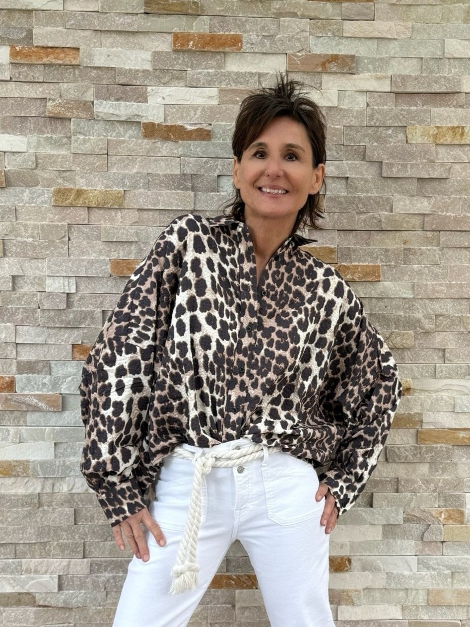Oversized Bluse mit Animal Print Beige-Braun