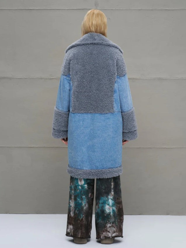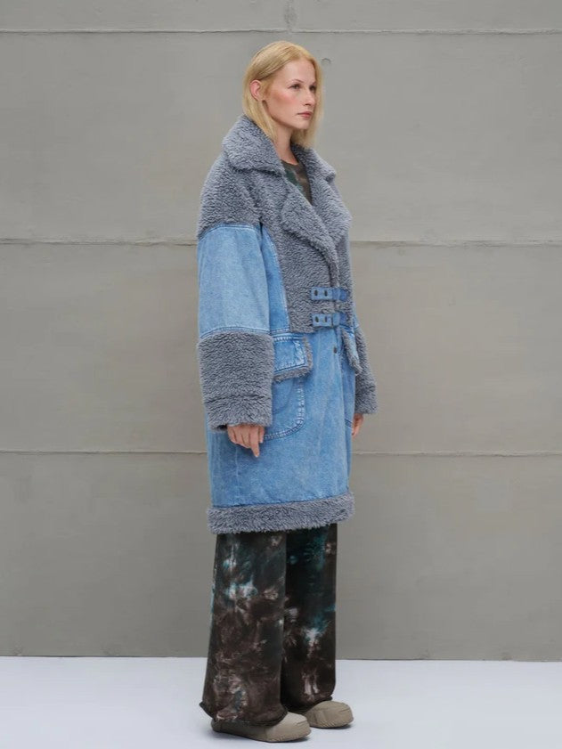 Oversized Jeans Mantel mit Kunstpelz Blue-Grau