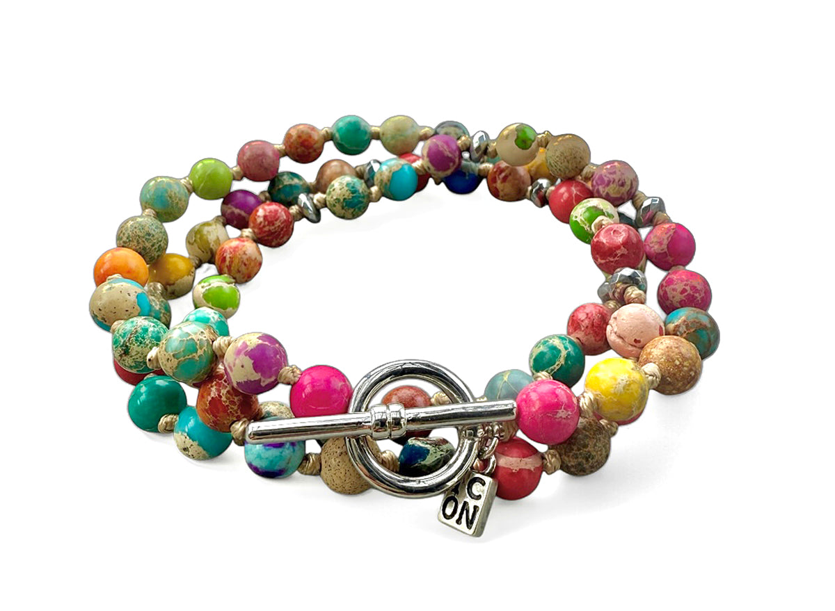 Diese Perlenkette kann man als Kette oder Armband tragen.