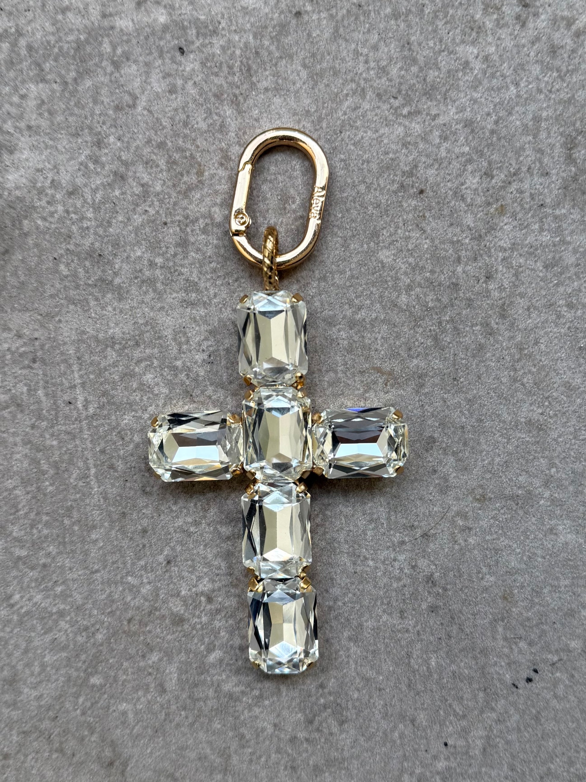 Großer Kreuz-Anhänger mit transparenten Kristallsteinen, passend für alle Ketten. Die Kette ist separat erhältlich.