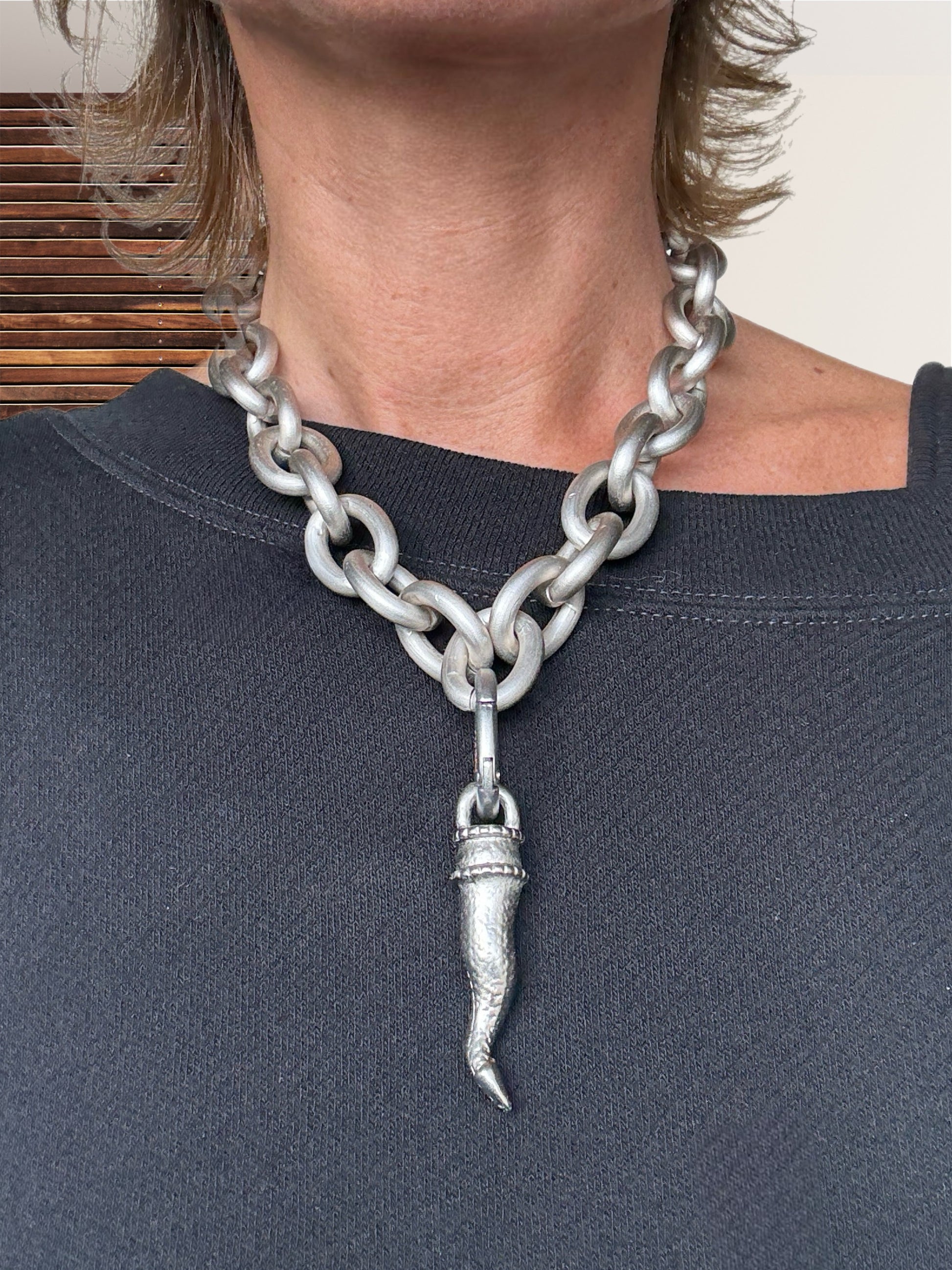 Großer Anhänger in Form eines Horns. Passt an jede Kette. Die Kette ist separat erhältlich.