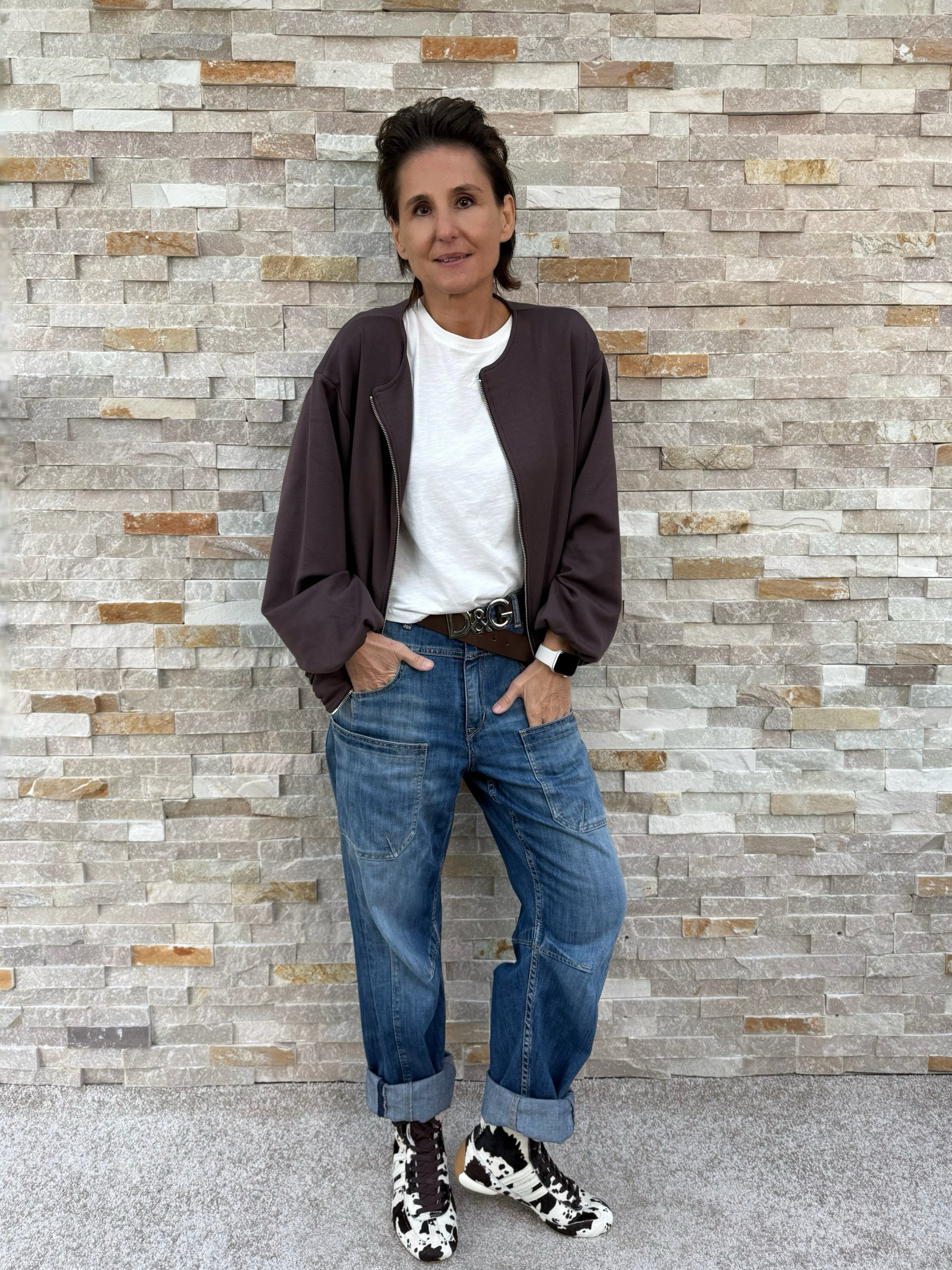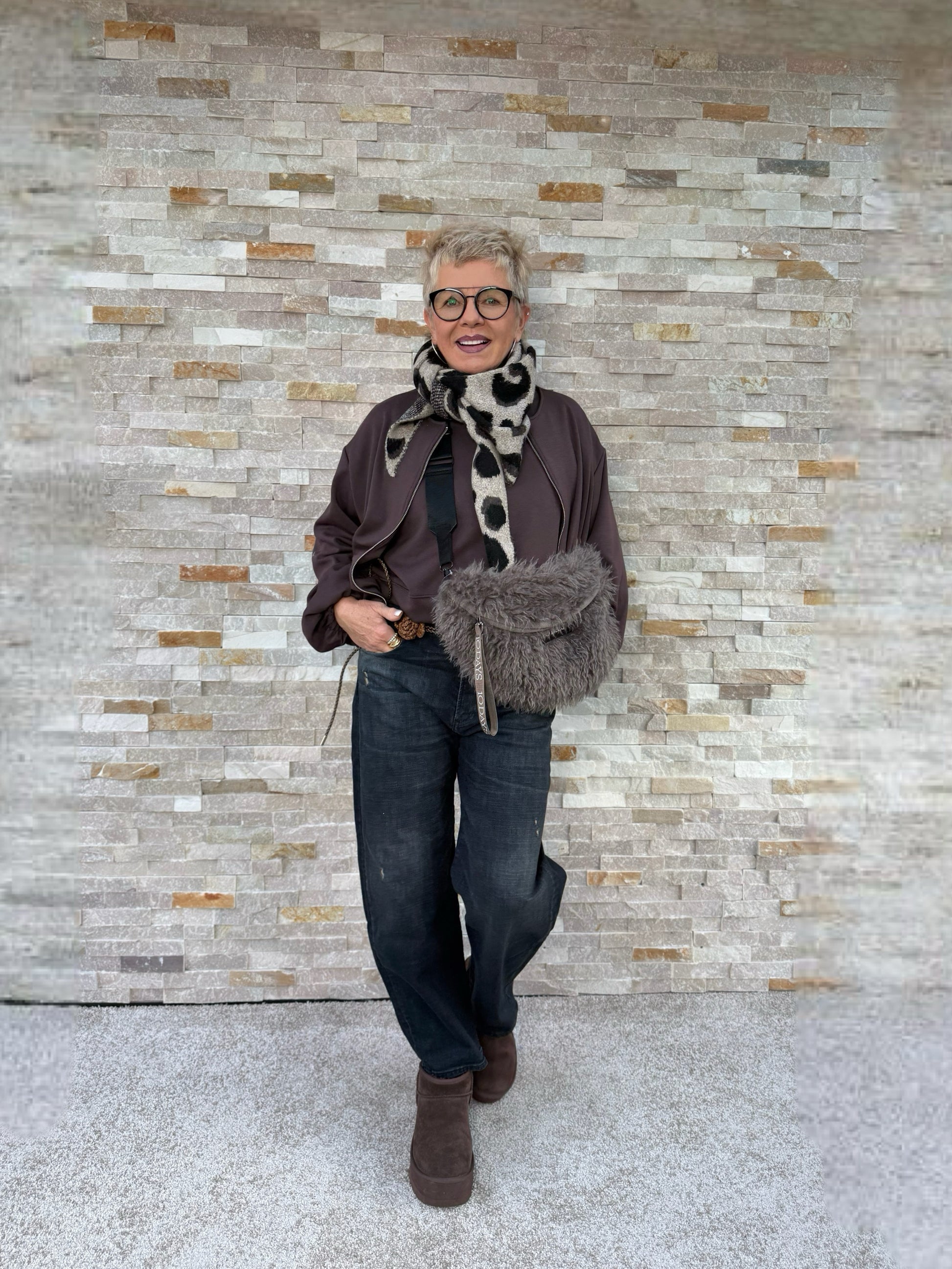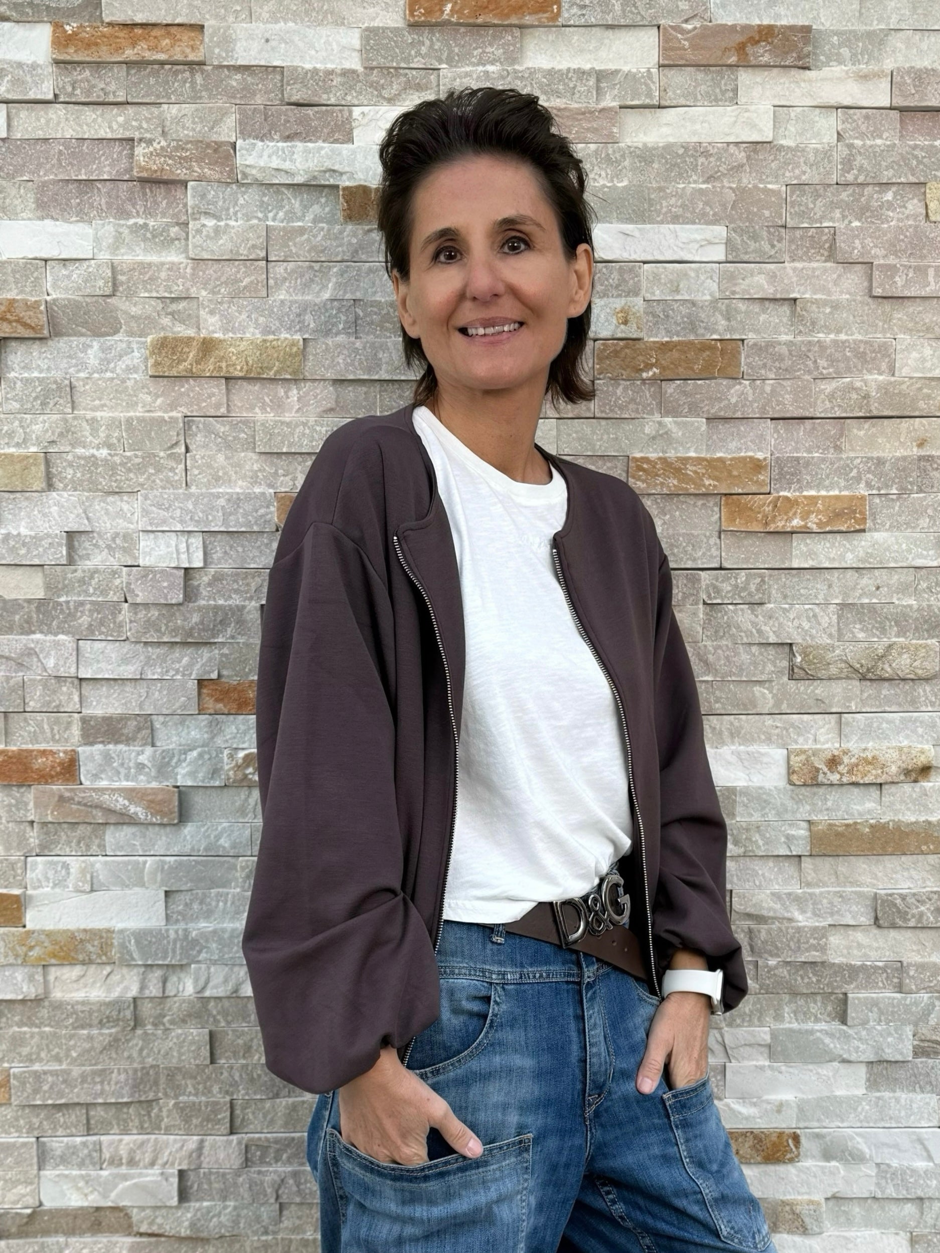 Kurze Scuba Jacke ungefüttert in einer Blouson Form. Mit Rundhalsausschnitt, Reißverschluss und seitlichen Eingriffstaschen. Ein neue Alternative zum Blazer.