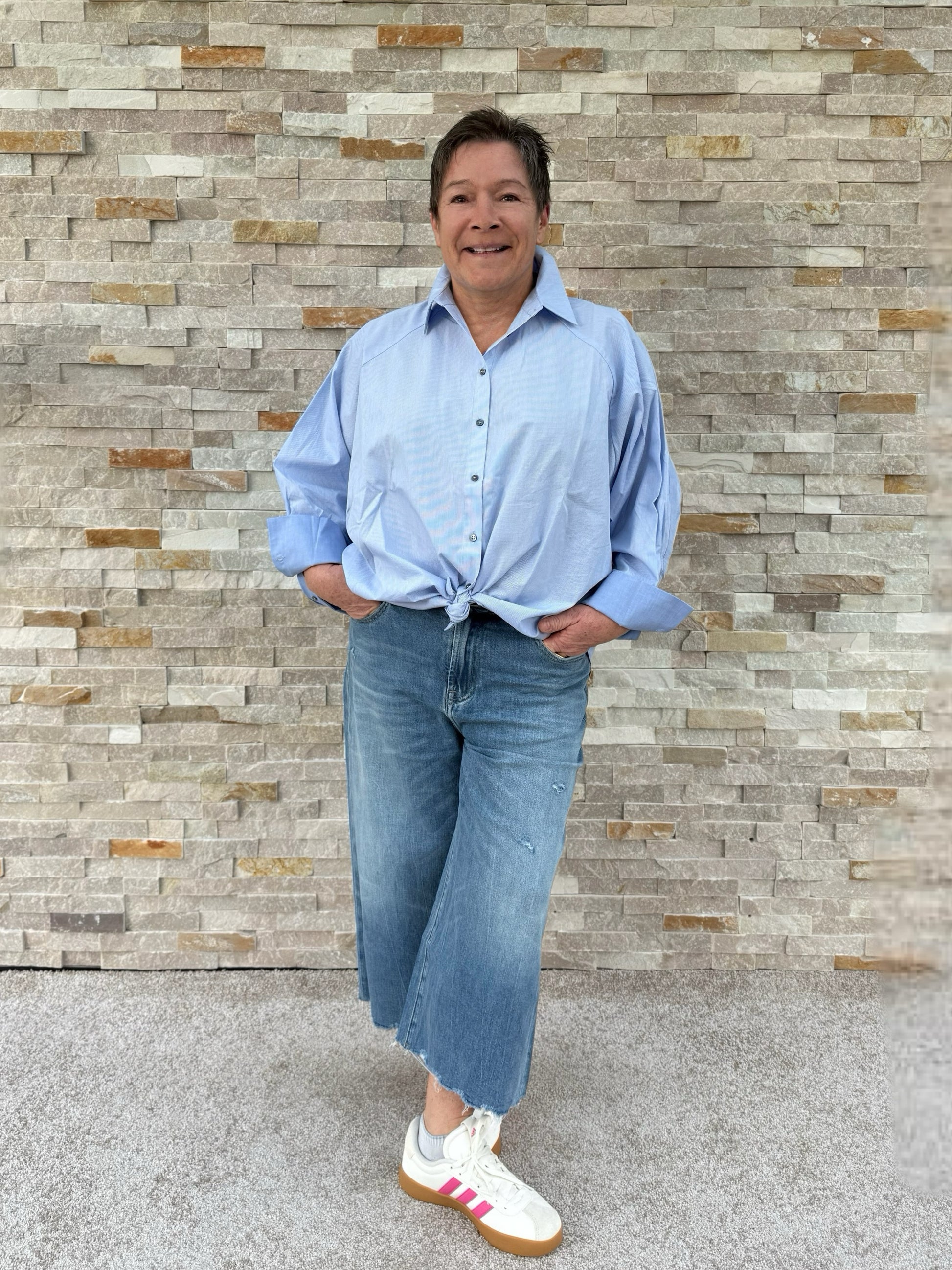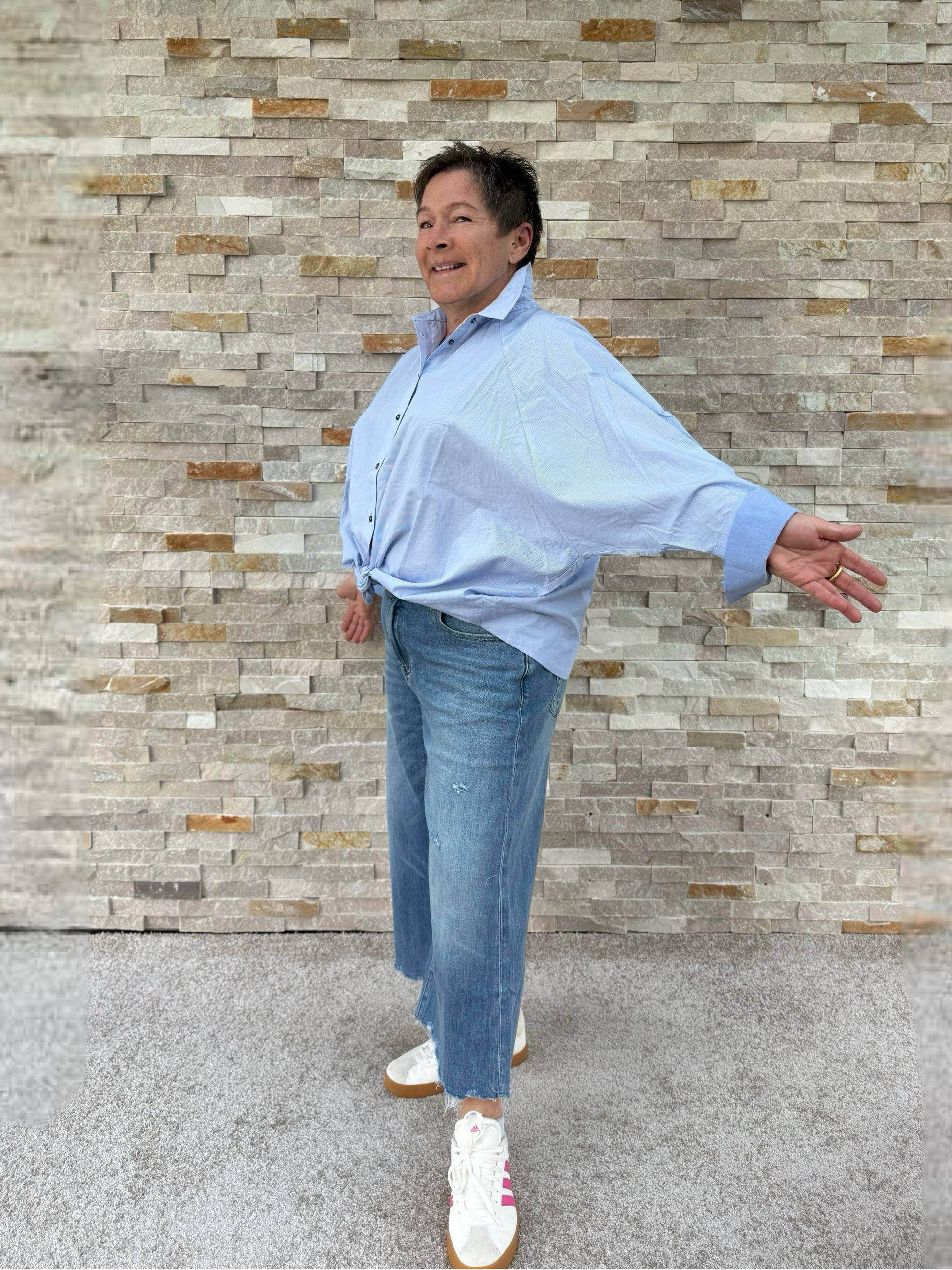 Passform: Fällt sehr groß aus. Ich bin 1.66m, Gr.34 und habe auf den Fotos Gr. XS an. Cathrin ist 1.64m, Größe 42/44 und trägt auf den Fotos Größe L.