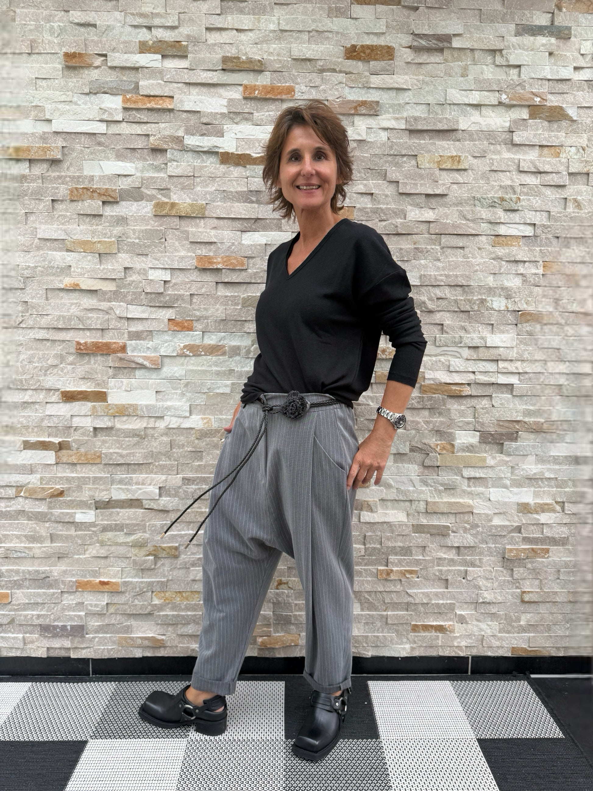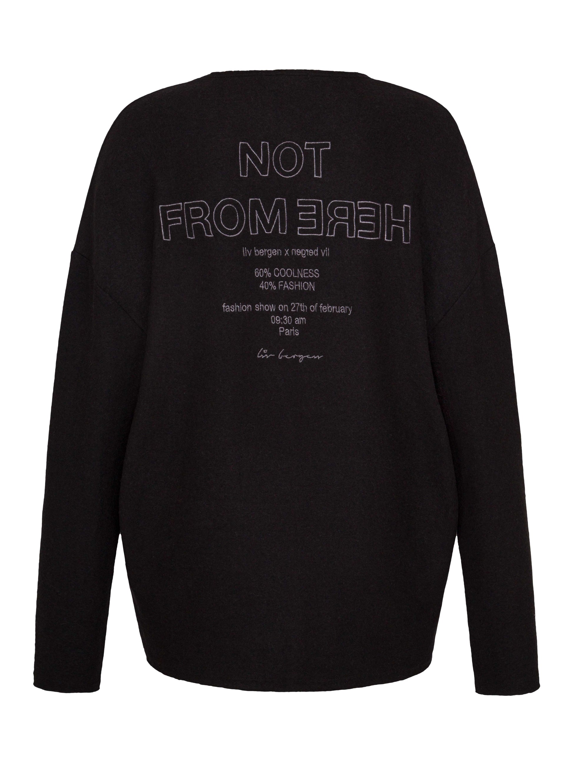 Dünneres Sweatshirt mit weichem Griff, V-Ausschnitt, Silberne Stickerei am Rückenteil "NOT FROM HERE"