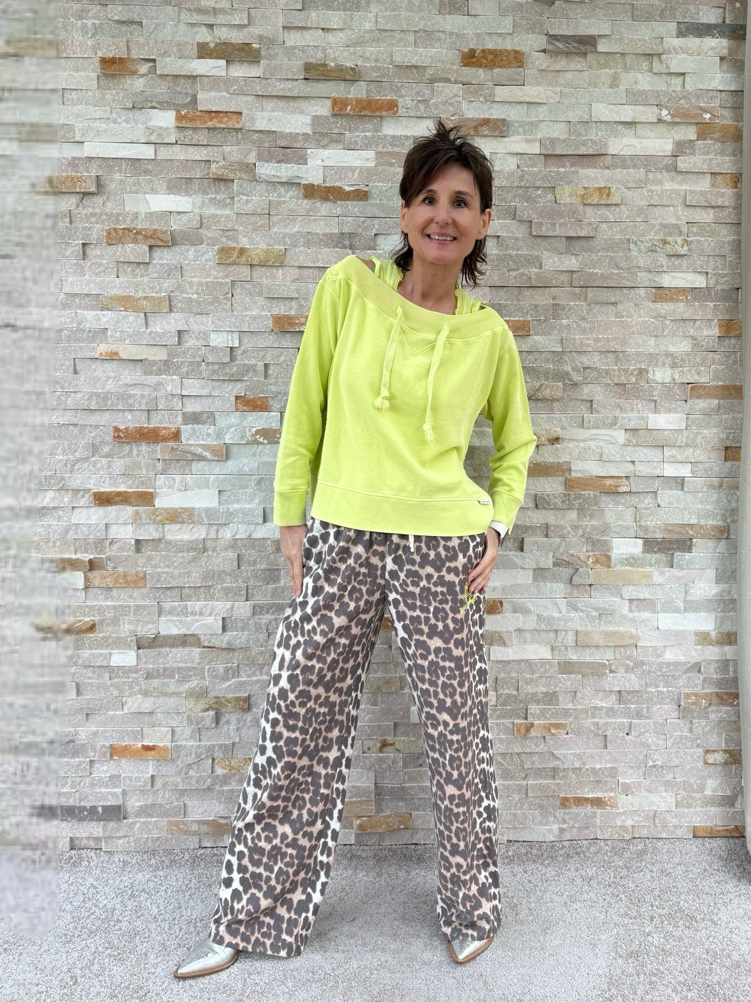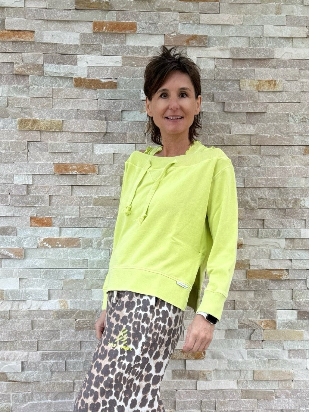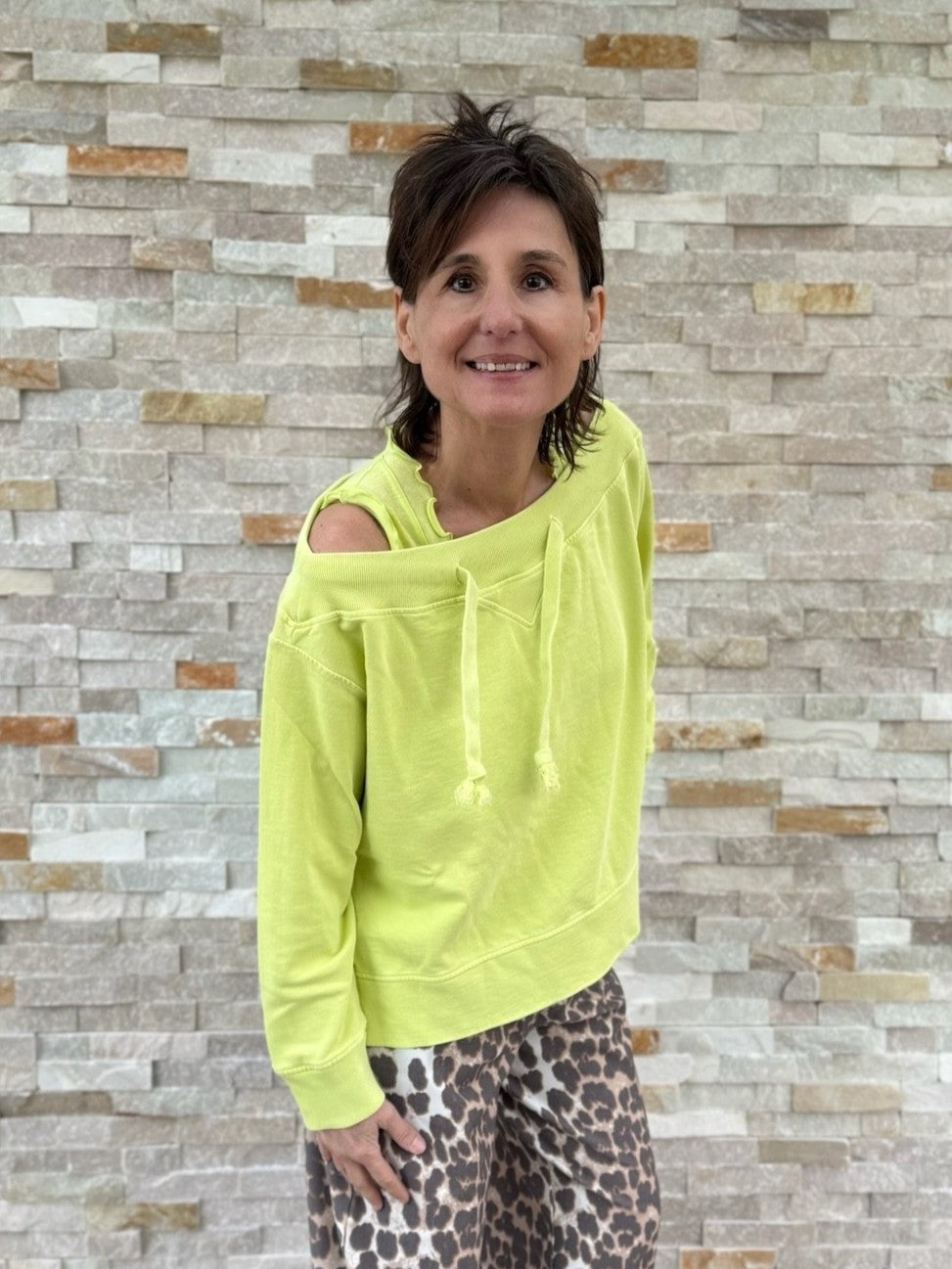 Sweatshirt mit U-Boot Ausschnitt in Limette