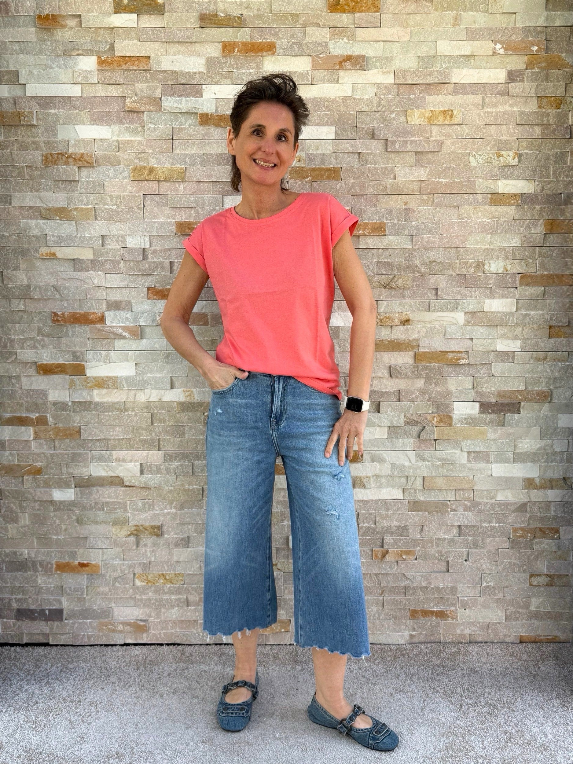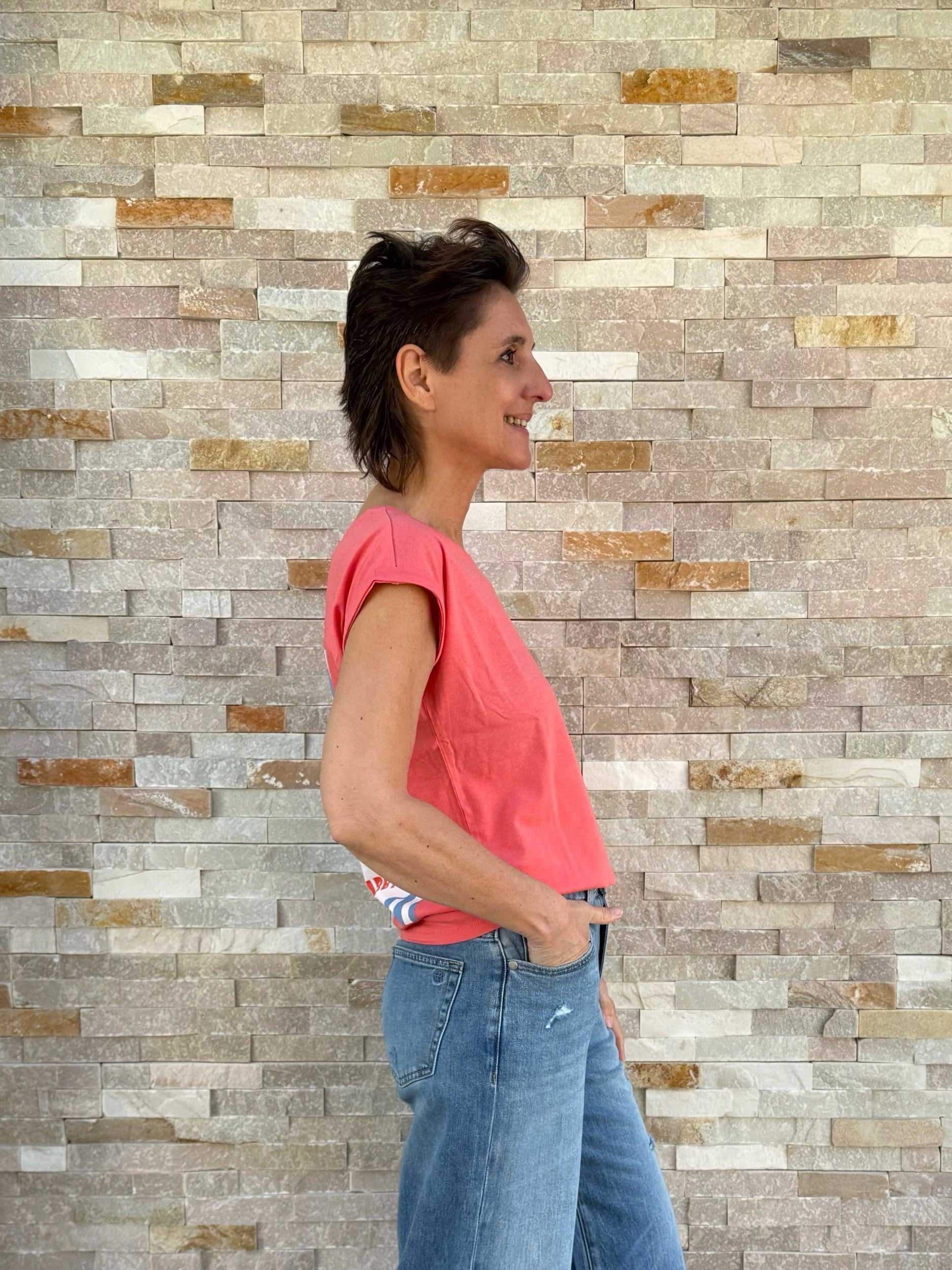 T-Shirt ohne Ärmel Rückendruck GRABBY in Coralle