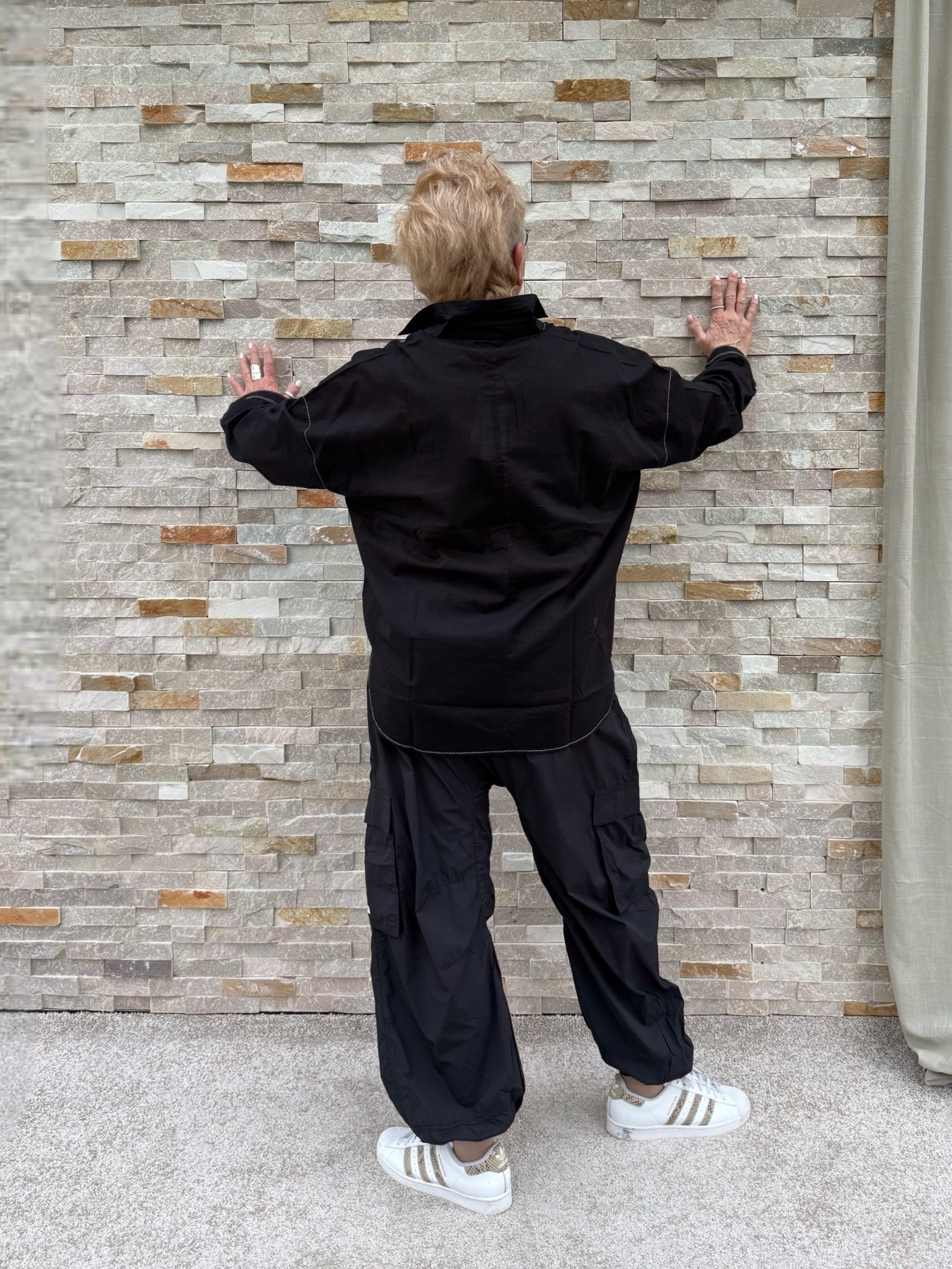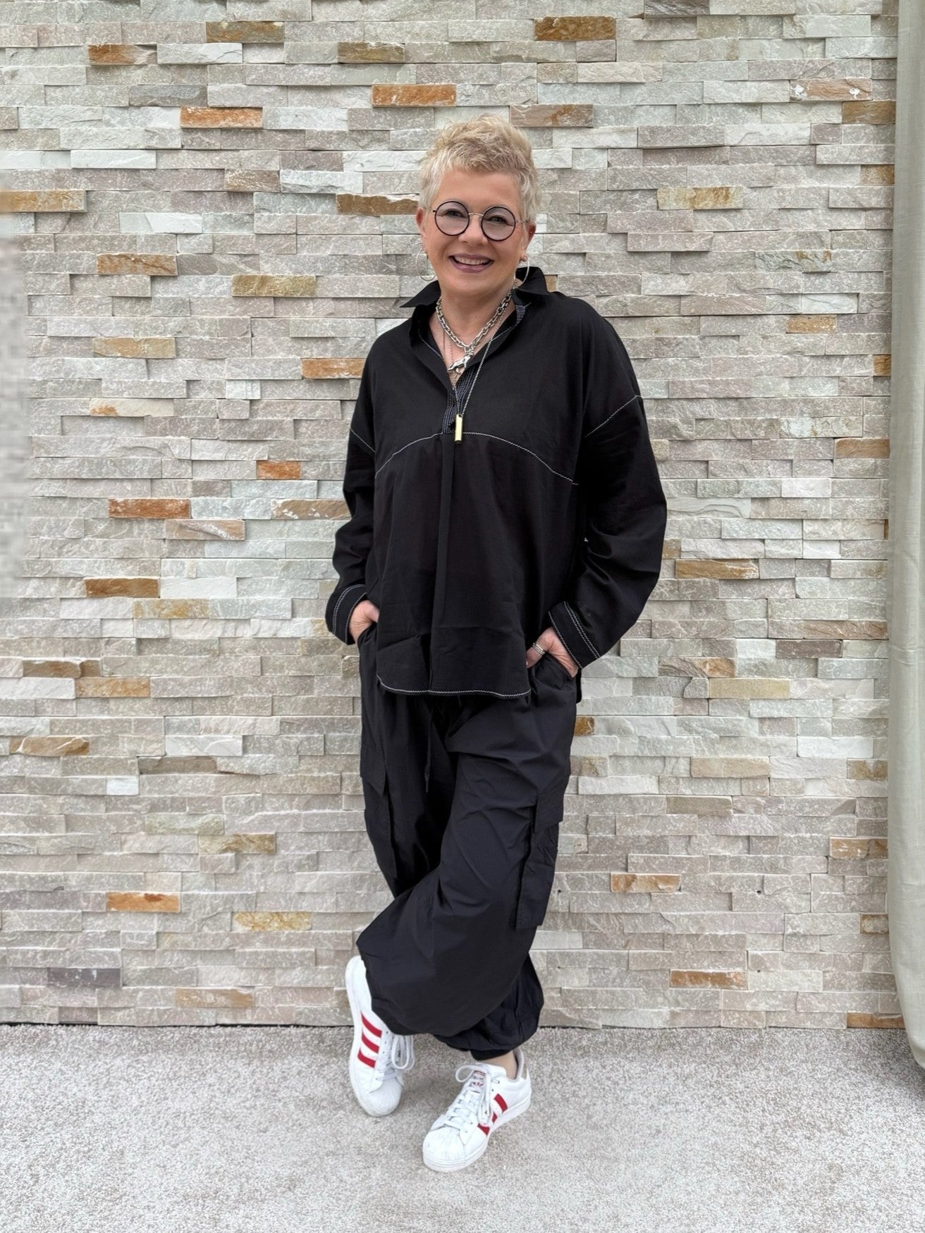 Tunika Bluse Voile in Schwarz mit Kontraststich