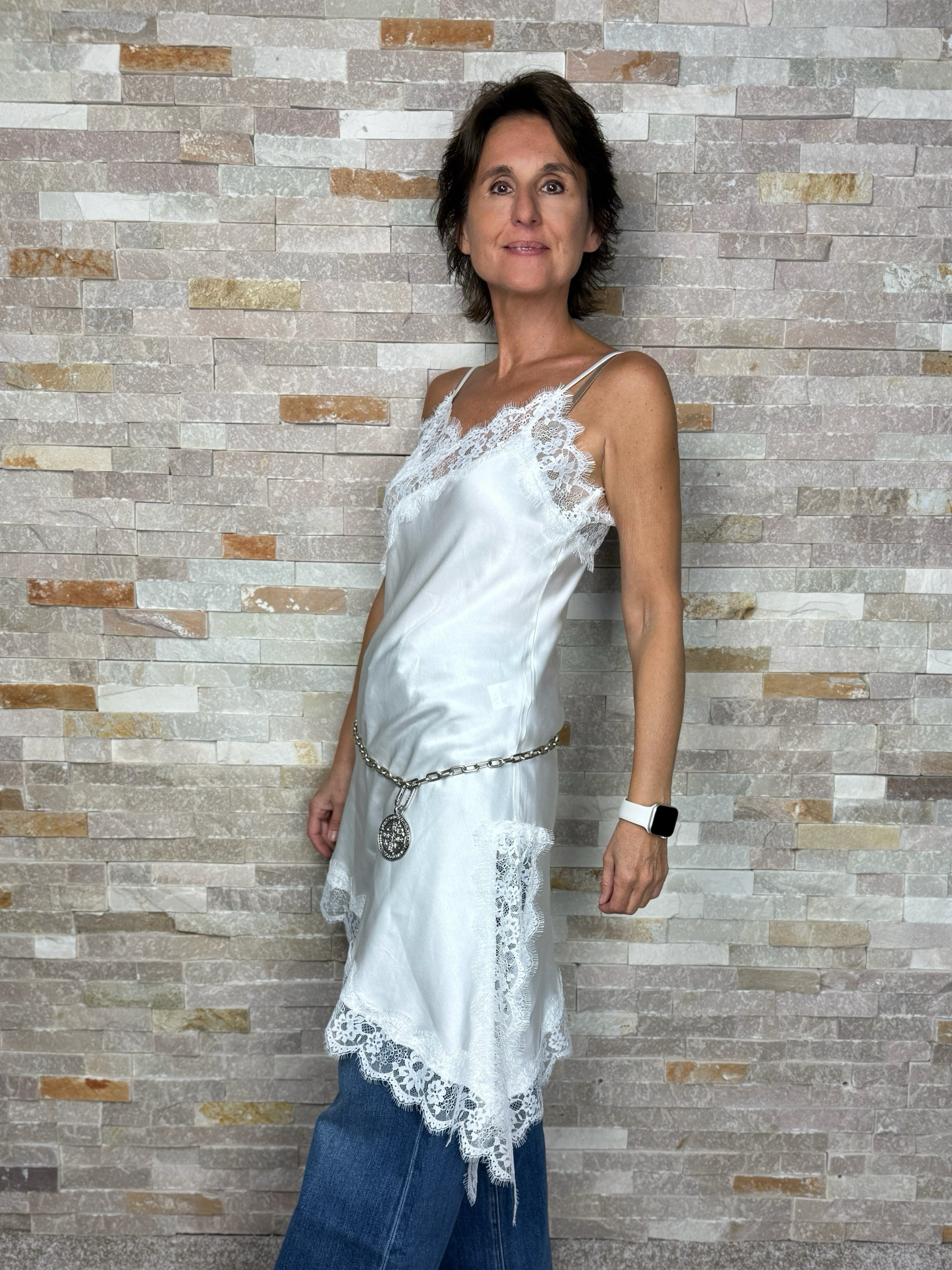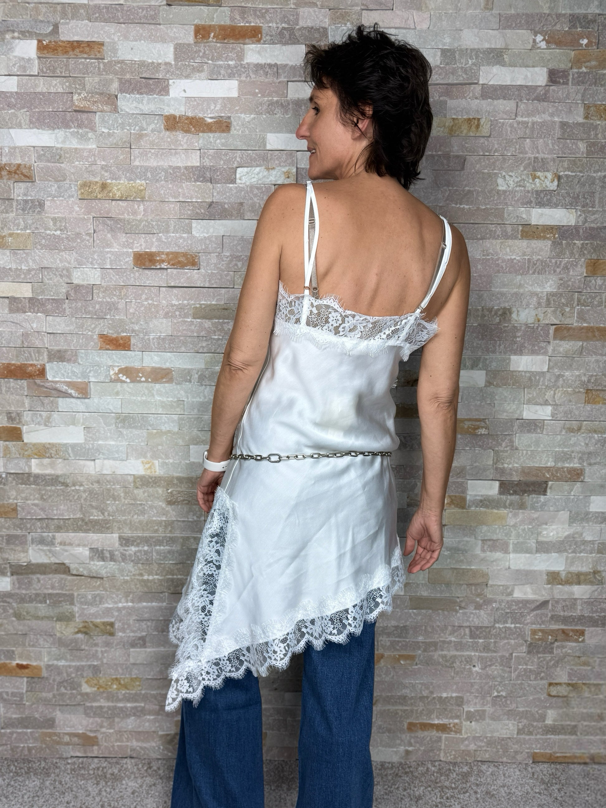Viskose Spitzentop mit asymertischem Saum Offwhite