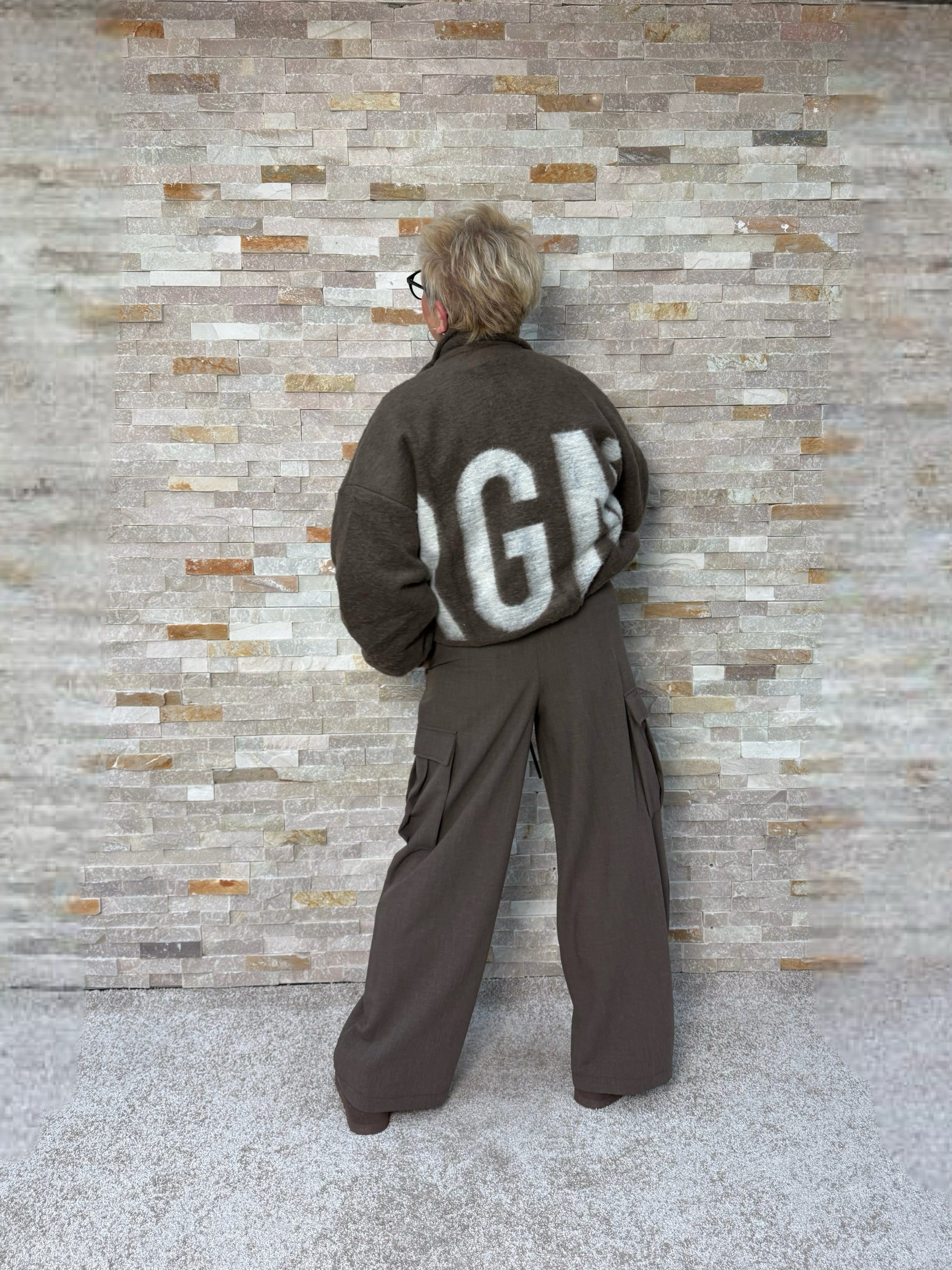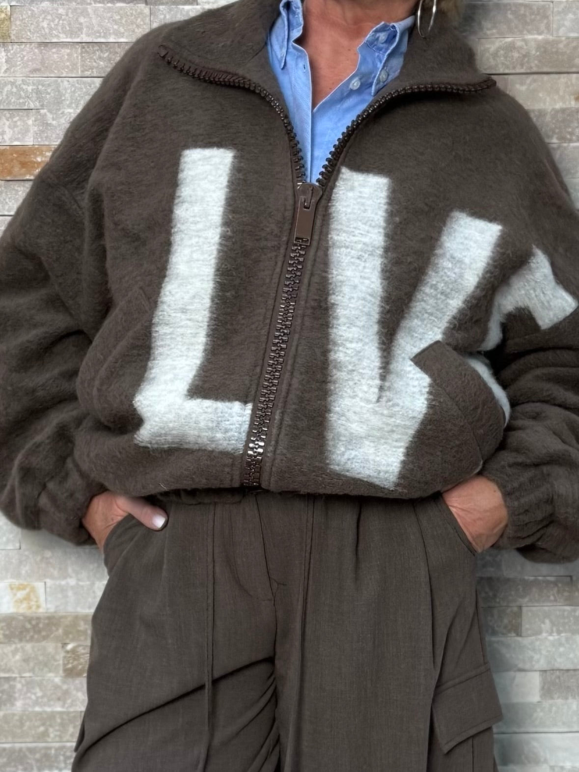 Wolle-Blouson ROME mit Logo Print in Braun-Creme